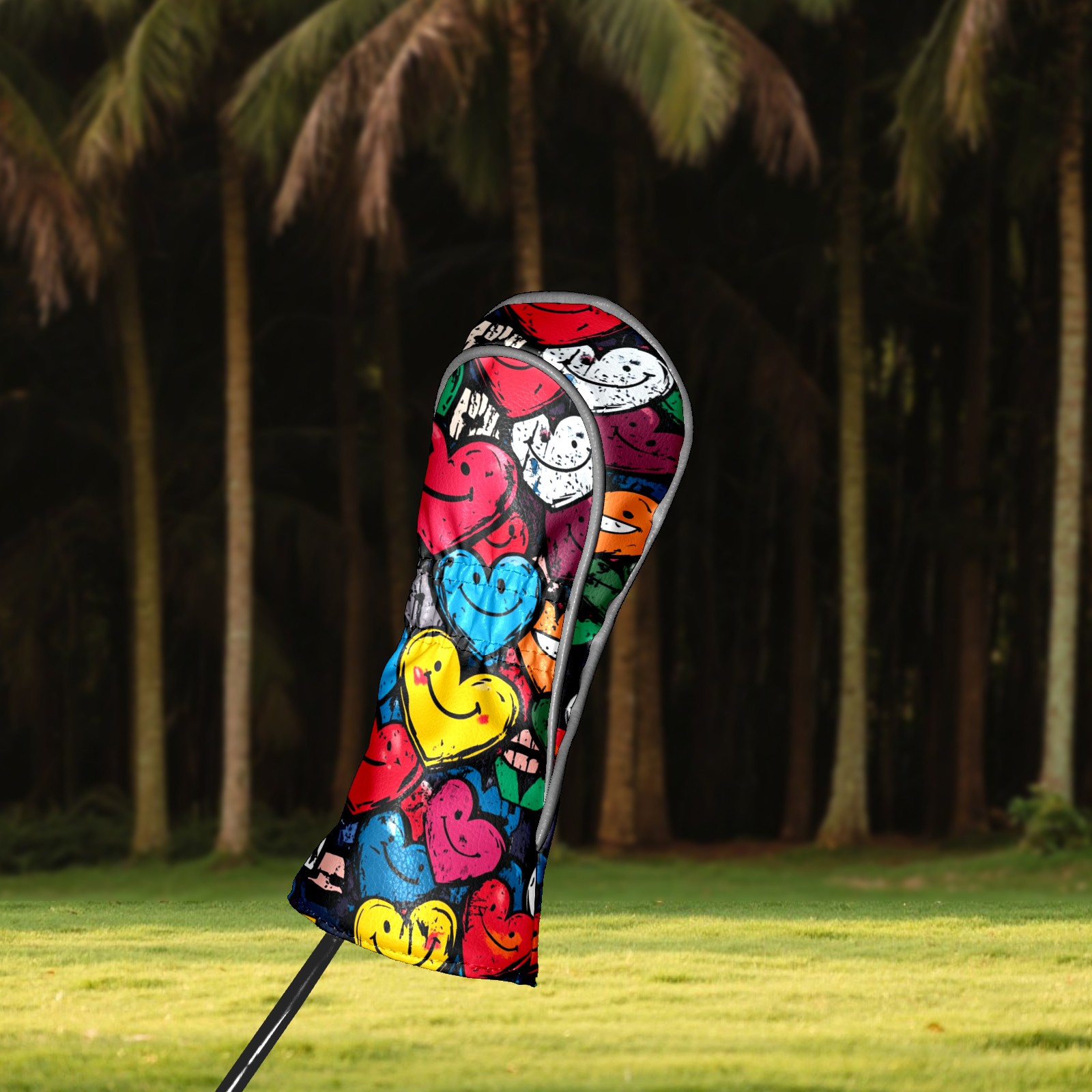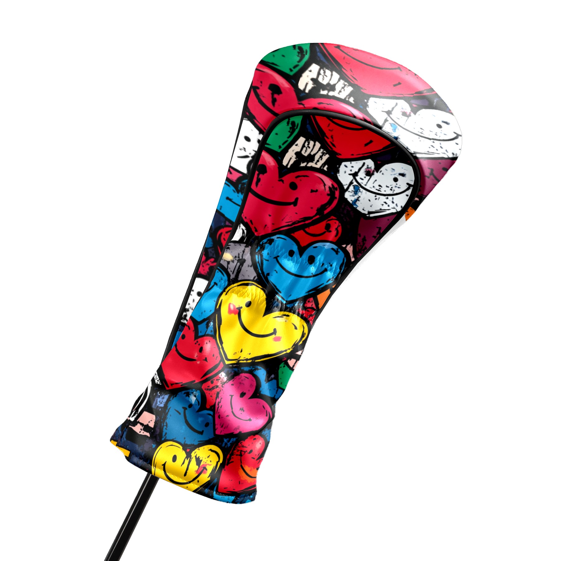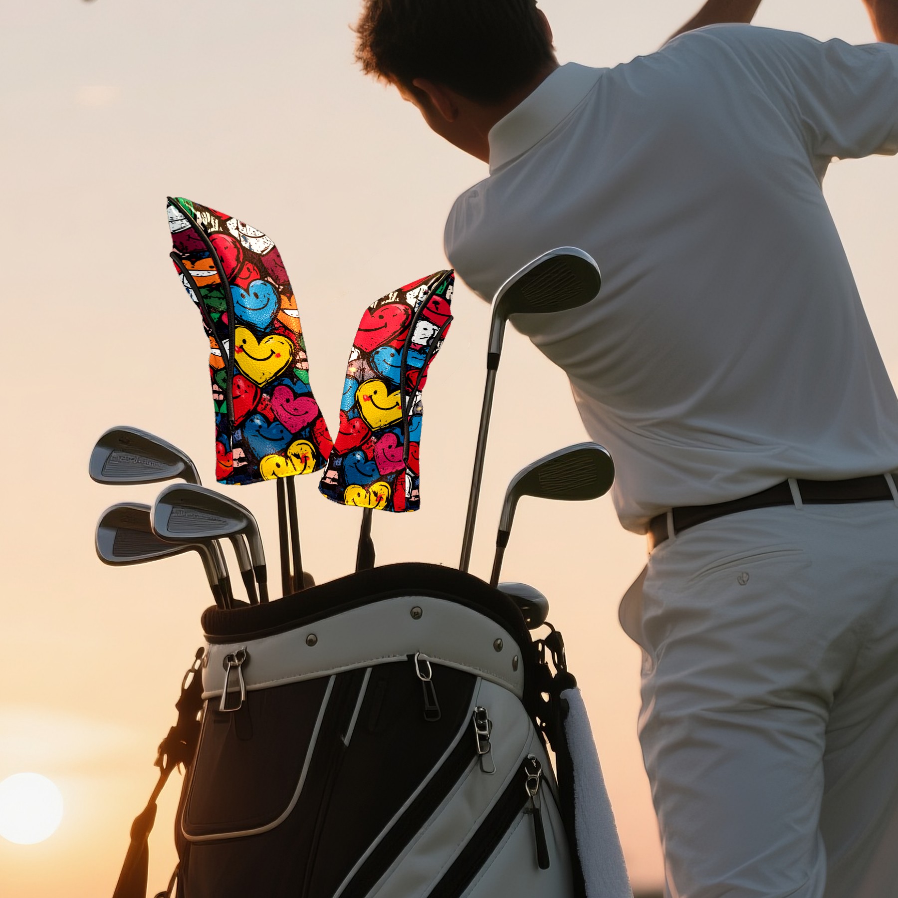 Golf Club Covers PU Leather Waterproof,Golf Club Head Covers for Fairway Woods and Hybrids Graffiti Heart Unisex Suitable for Most Brands
