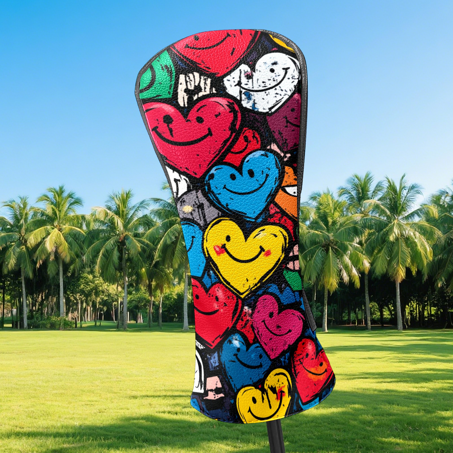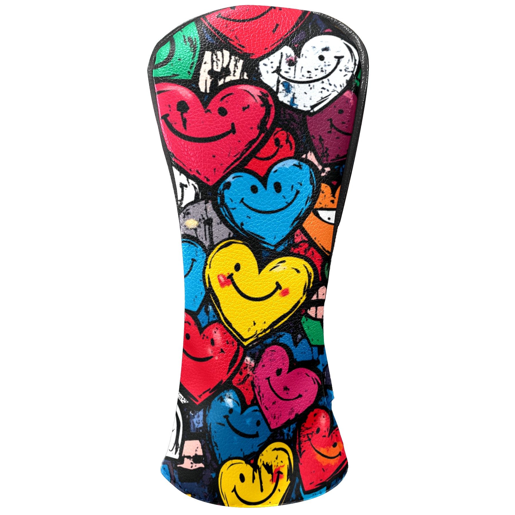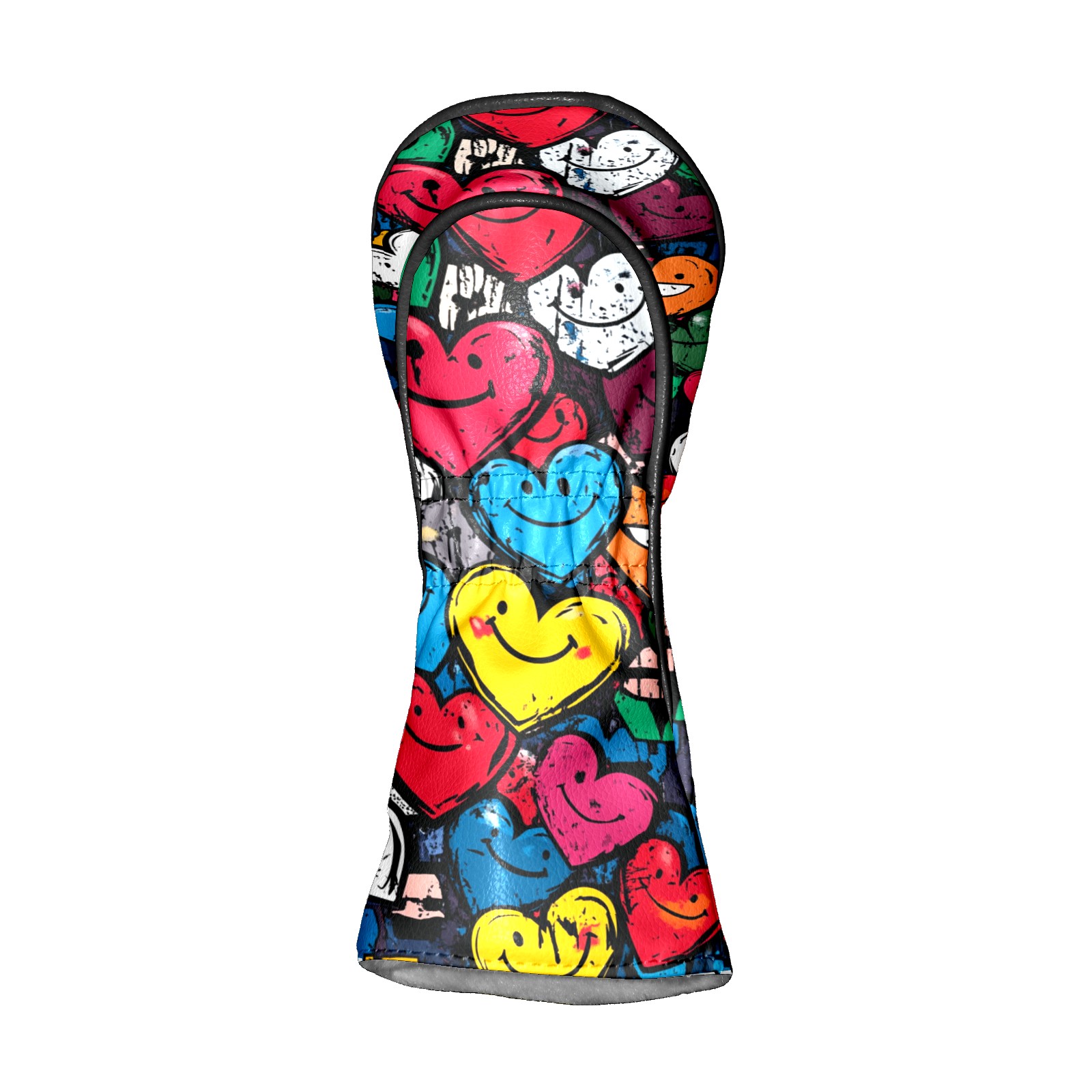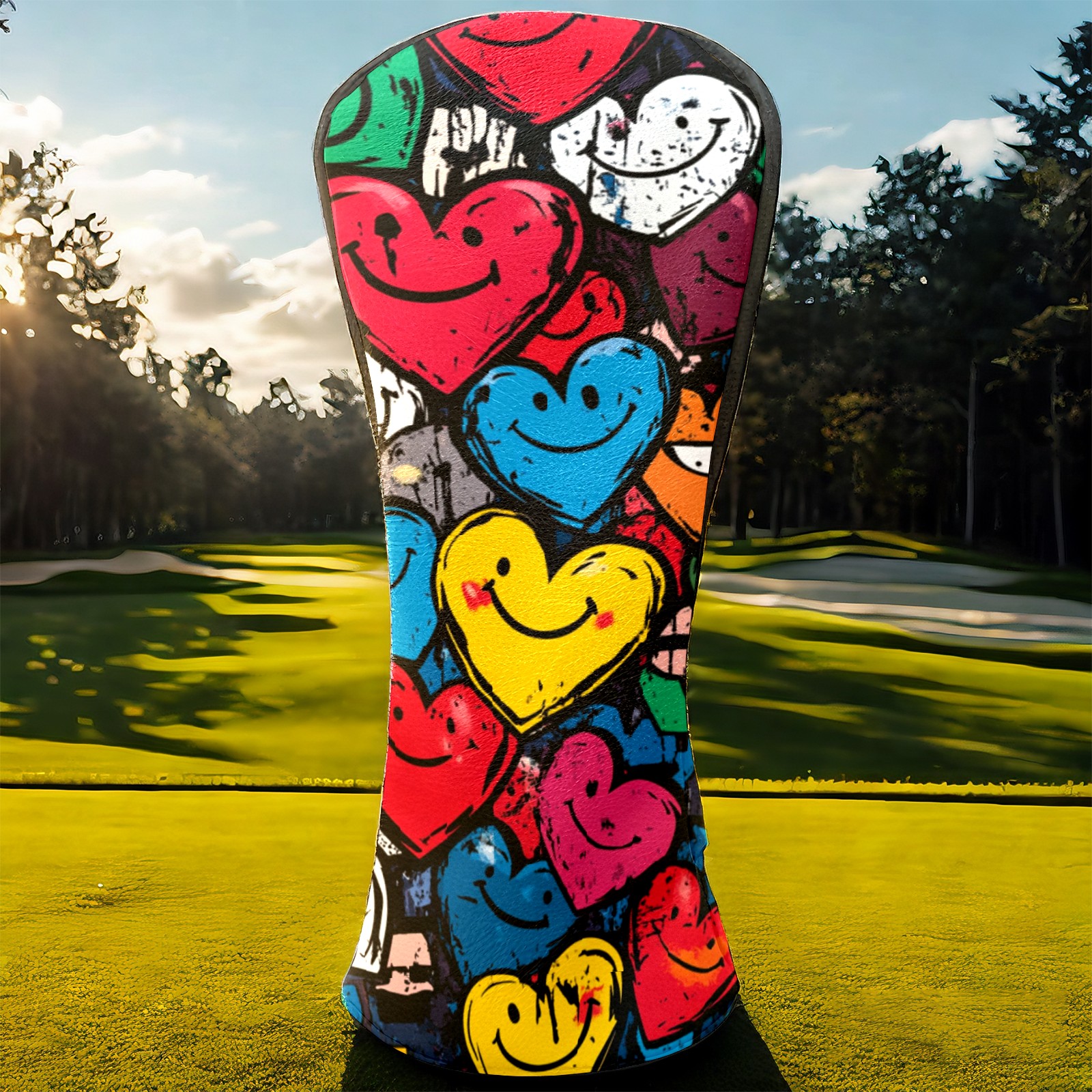 Golf Club Covers PU Leather Waterproof,Golf Club Head Covers for Fairway Woods and Hybrids Graffiti Heart Unisex Suitable for Most Brands