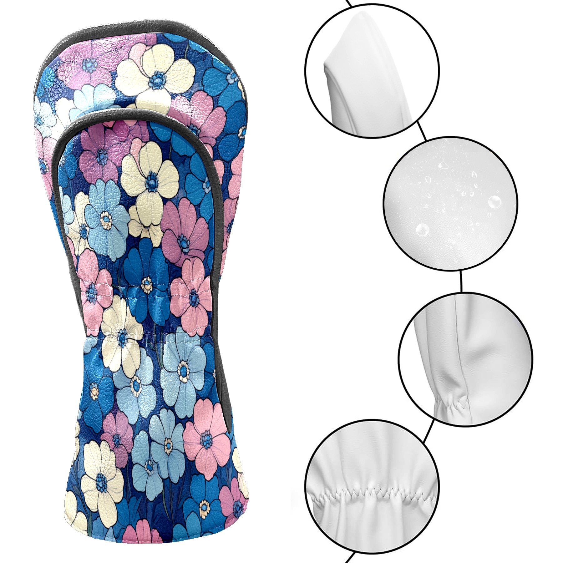 Golf Club Covers PU Leather Waterproof,Golf Club Head Covers for Fairway Woods and Hybrids Hydrangea Unisex Suitable for Most Brands