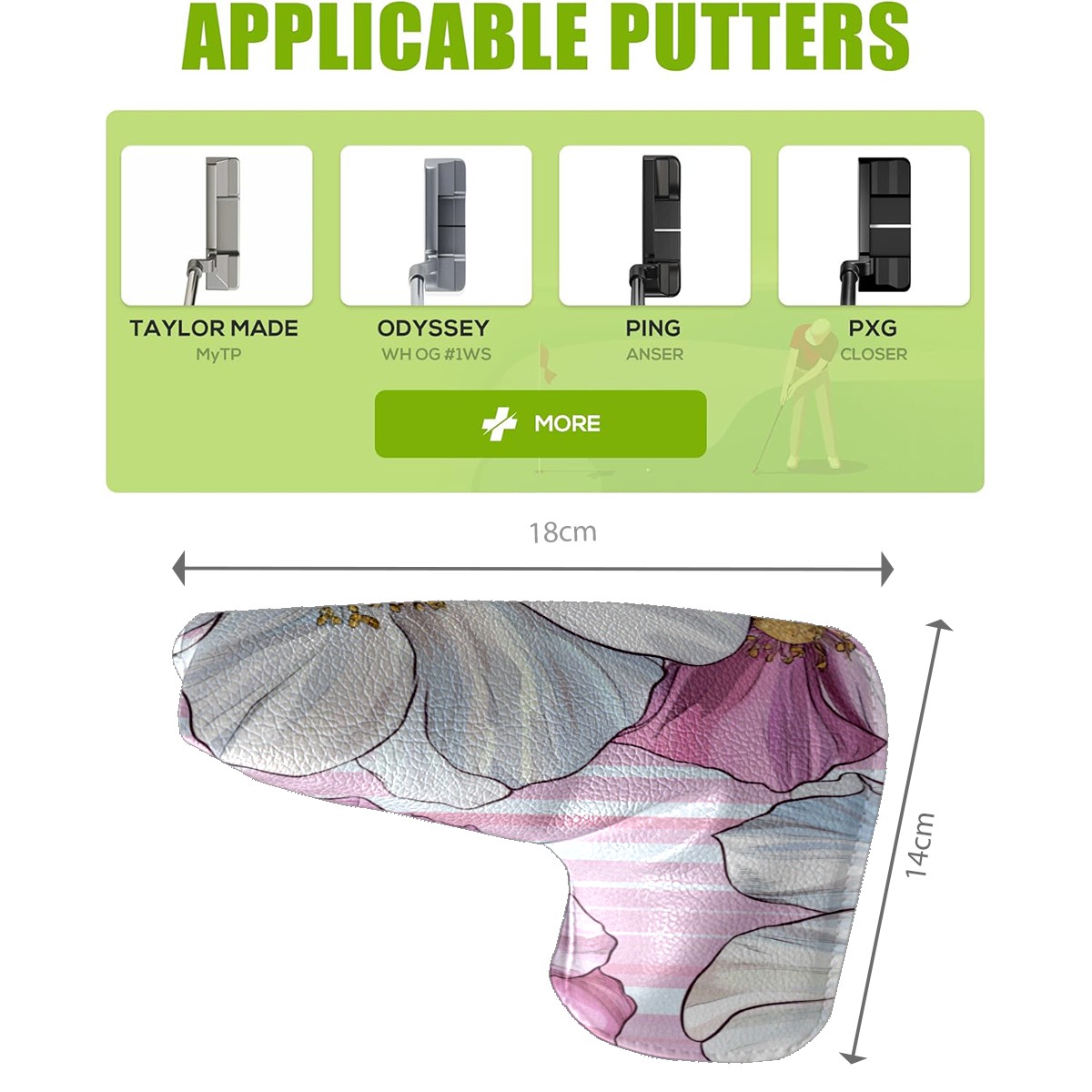 PU Leather Waterproof Golf Club Head Cover with Velvet Lining Golf Head Cover Suitable for Putters Golf Accessories for Men and Women Pink Flowers