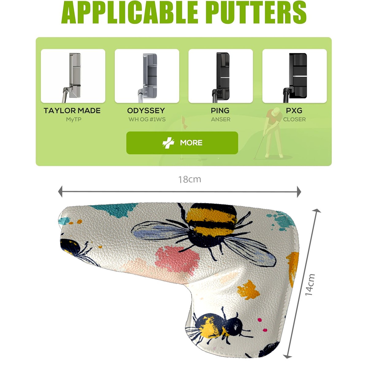 PU Leather Waterproof Golf Club Head Cover with Velvet Lining Golf Head Cover Suitable for Putters Golf Accessories for Men and Women Cartoon Bee