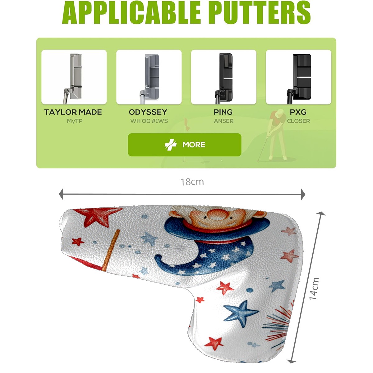 • <p>Golf putter head covers Made of high-quality PU leather They are eye-catching key protective equipment on the golf course, easy to clean, Suitable for most golf clubs. Not only waterproof and stain-proof, but also outlines a delicate texture with smooth lines.</p> <p>Whether it is given to a golf enthusiast with a sense of humor, or as a choice to reward yourself for upgrading your sports equipment, this club cover is an ideal gift that combines practicality and fun.</p>