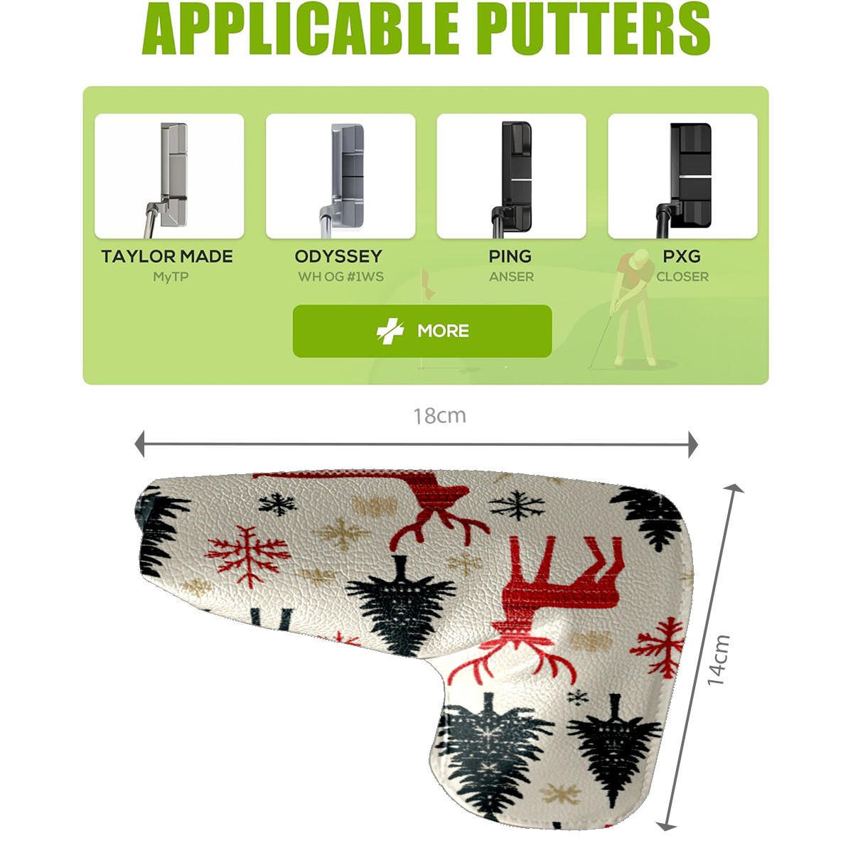 • <p>Golf putter head covers Made of high-quality PU leather They are eye-catching key protective equipment on the golf course, easy to clean, Suitable for most golf clubs. Not only waterproof and stain-proof, but also outlines a delicate texture with smooth lines.</p> <p>Whether it is given to a golf enthusiast with a sense of humor, or as a choice to reward yourself for upgrading your sports equipment, this club cover is an ideal gift that combines practicality and fun.</p>