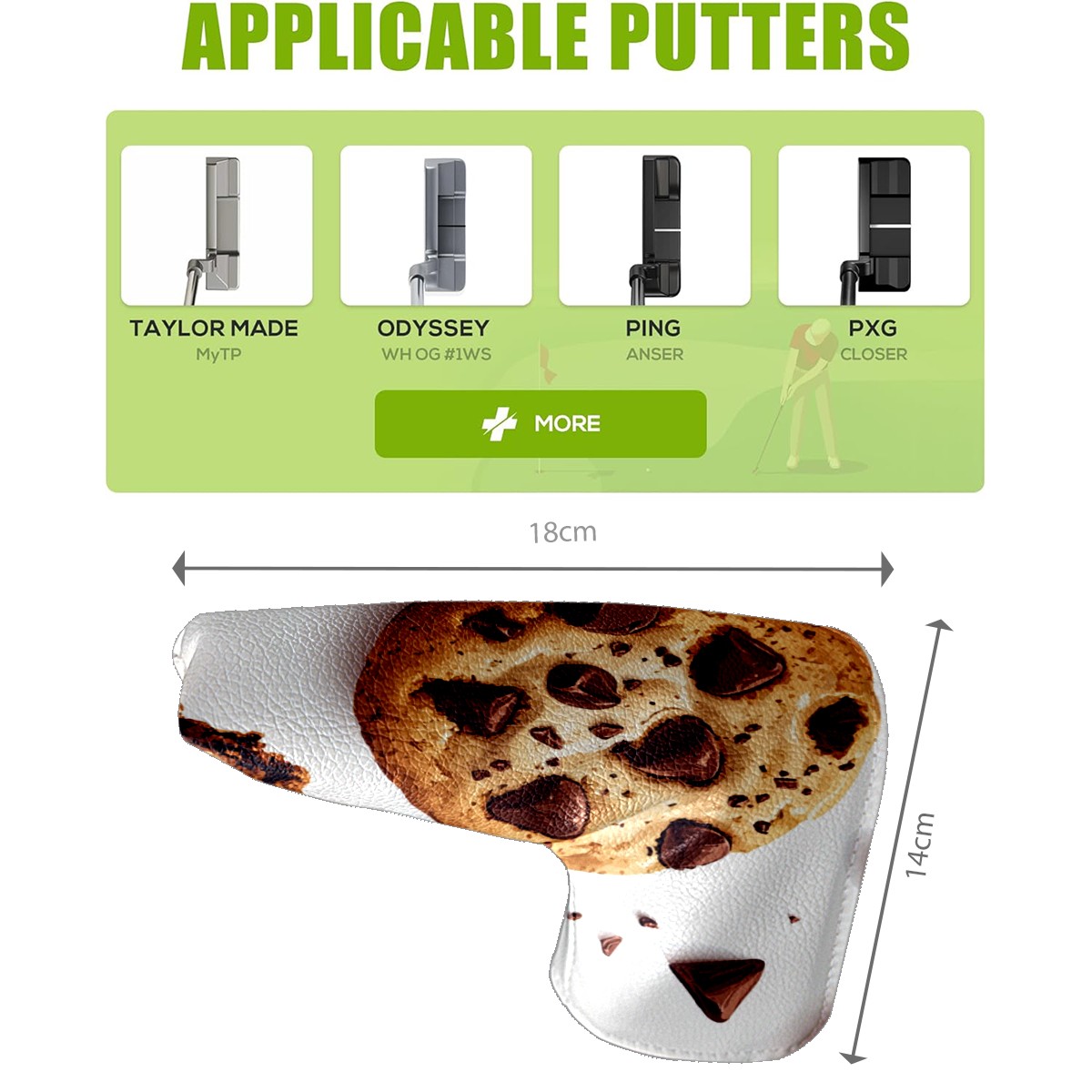 PU Leather Waterproof Golf Club Head Cover with Velvet Lining Golf Head Cover Suitable for Putters Golf Accessories for Men and Women Cookie Pattern