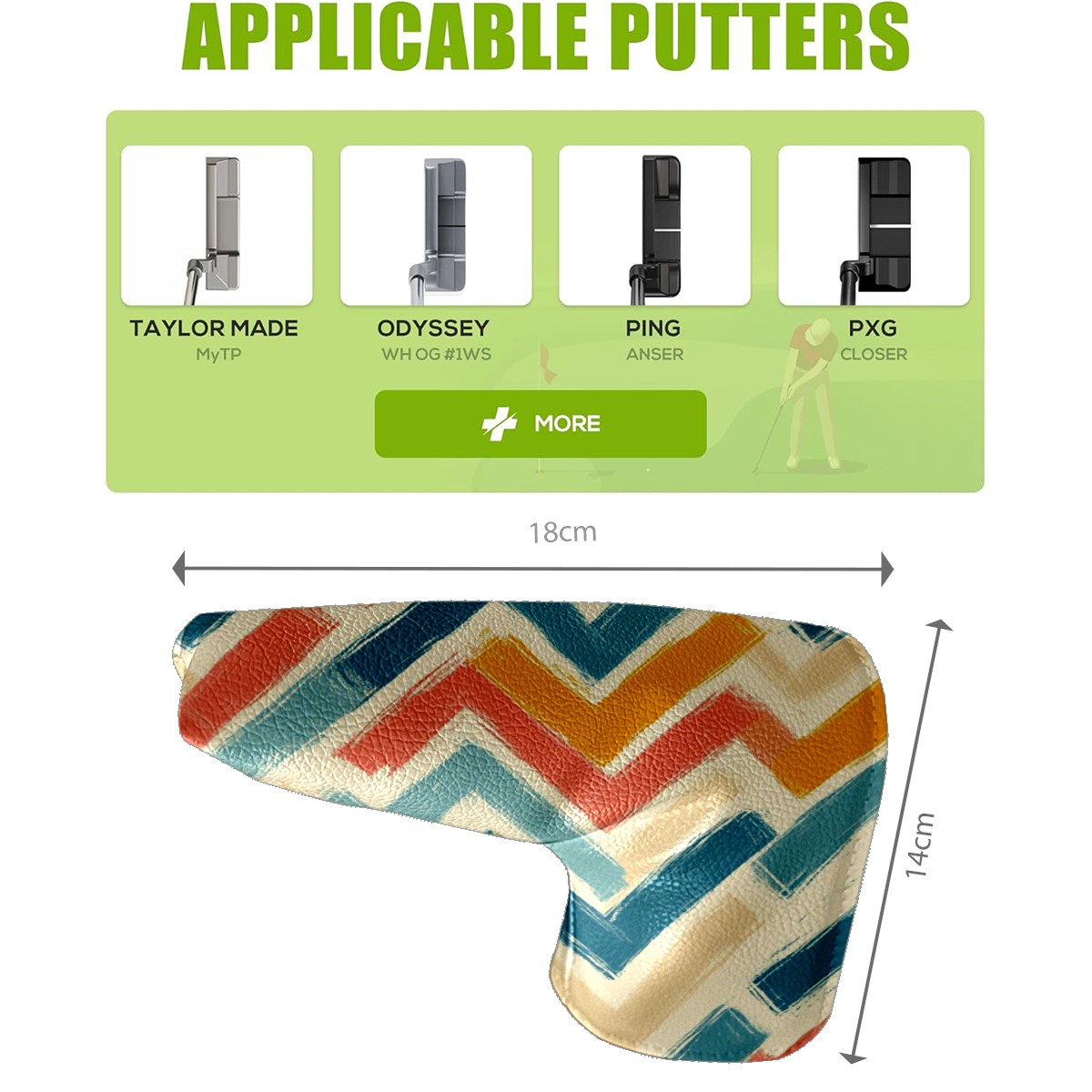 PU Leather Waterproof Golf Club Head Cover with Velvet Lining Golf Head Cover Suitable for Putters Golf Accessories for Men and Women Colored Lines