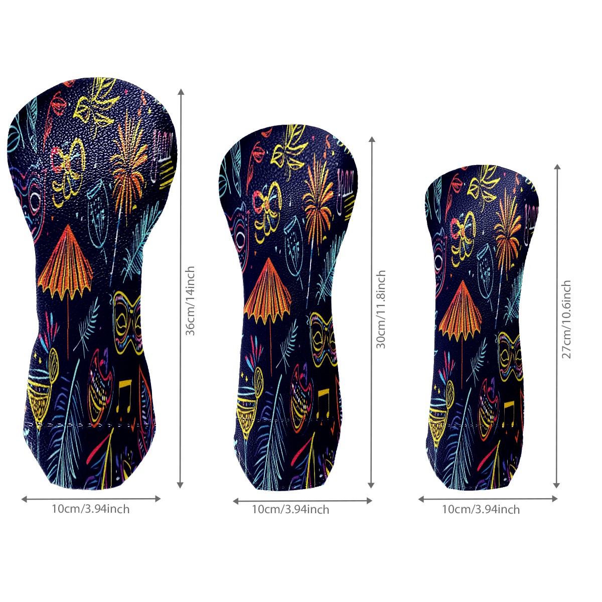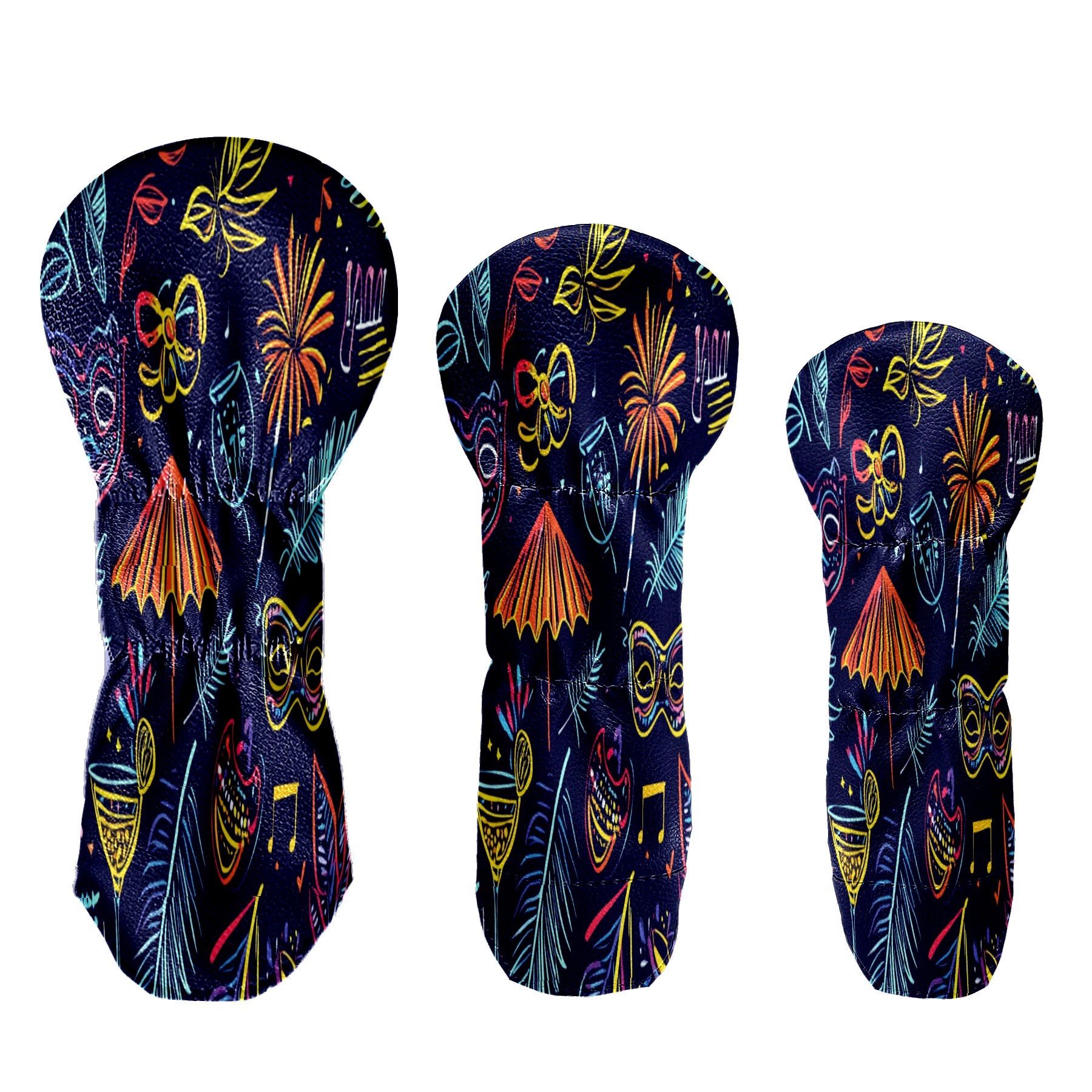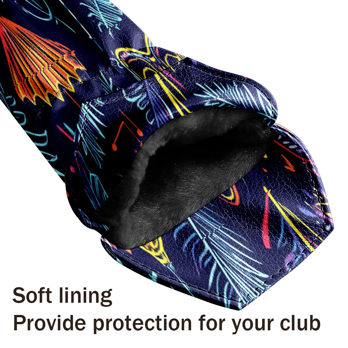 Golf Club Cover, Velvet Lining, High-Quality Leather, Suitable for the First Wood, Fairway Wood and Hybrid Club Head Cover, Suitable for Men and Women Golf Enthusiasts Festive Pattern