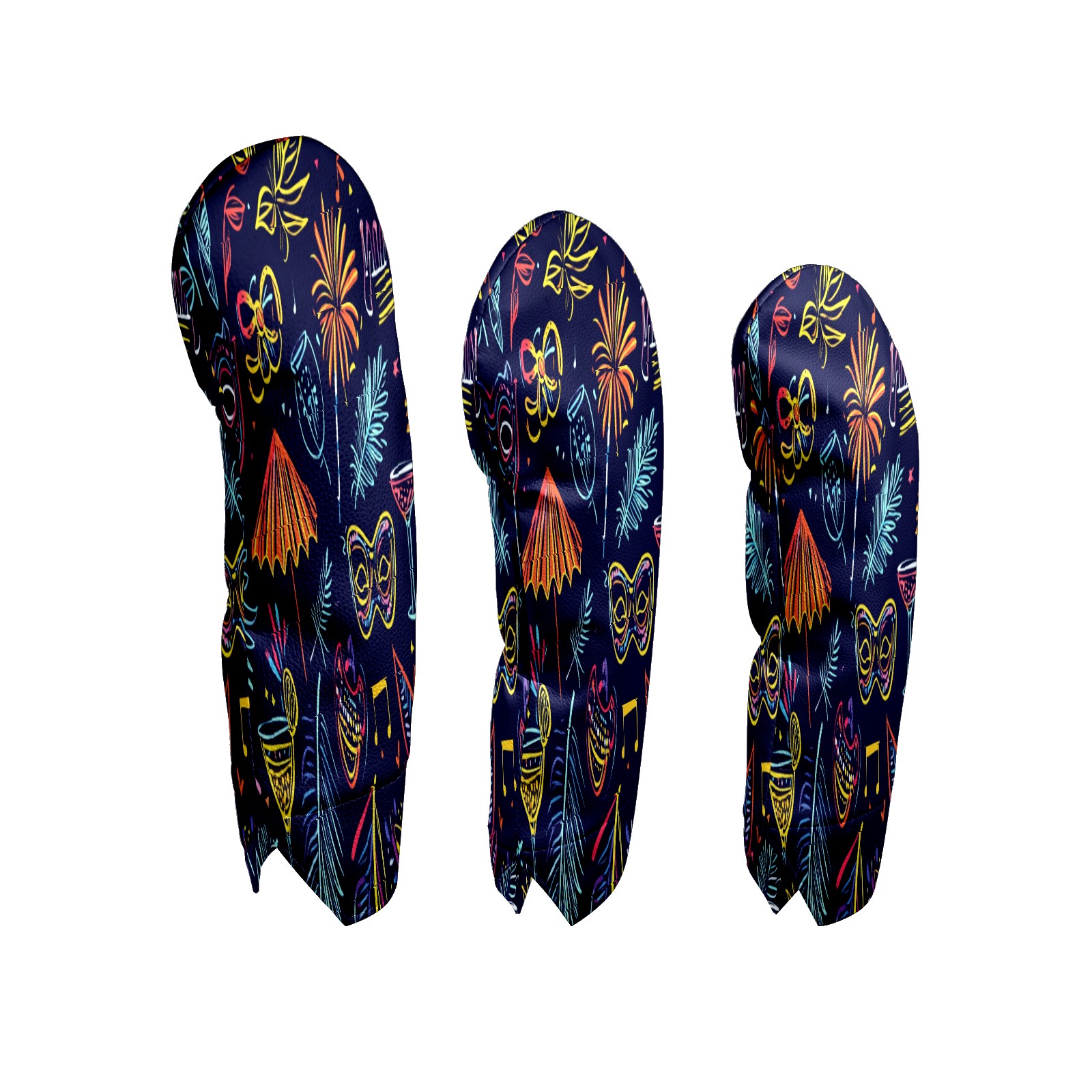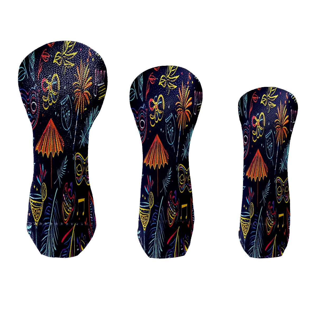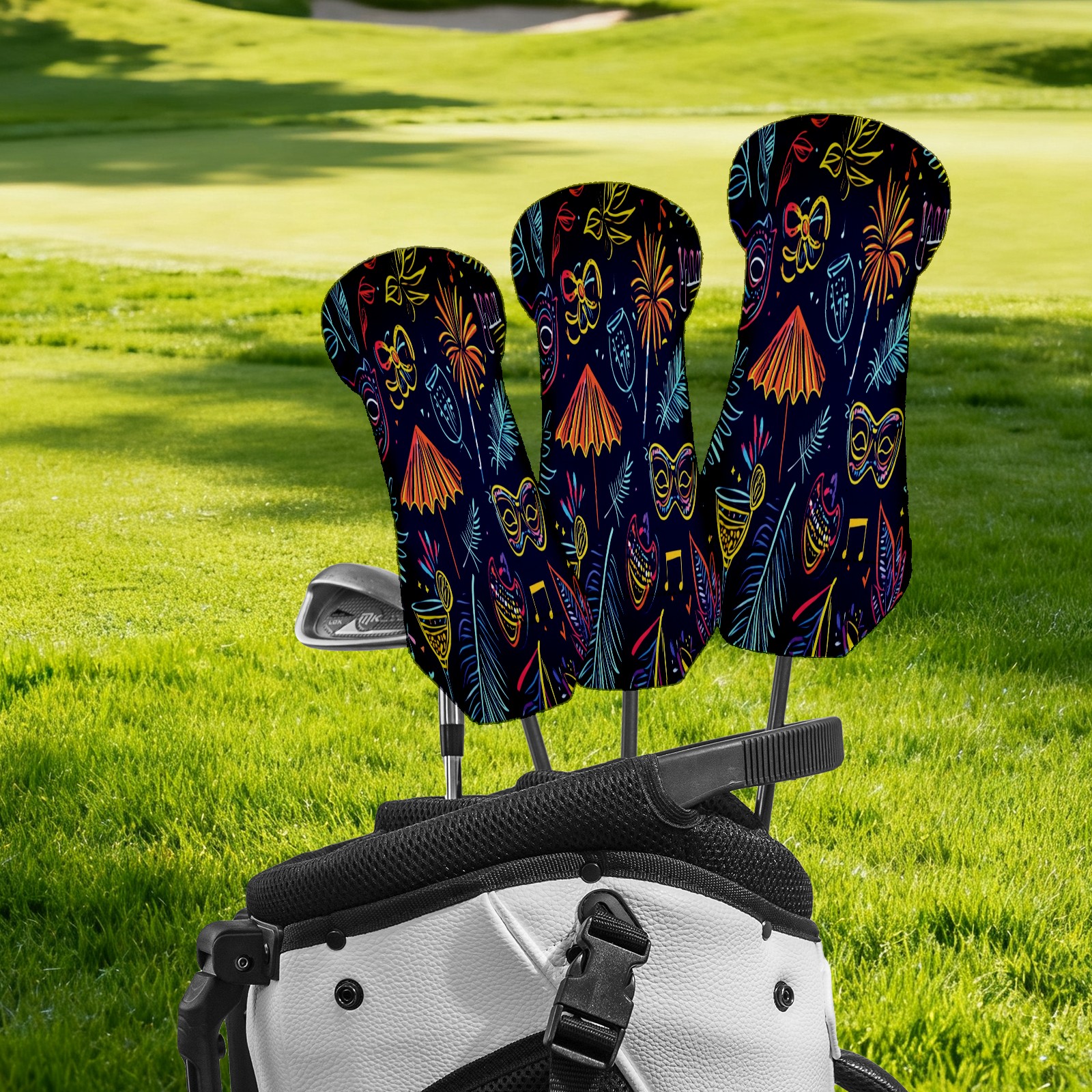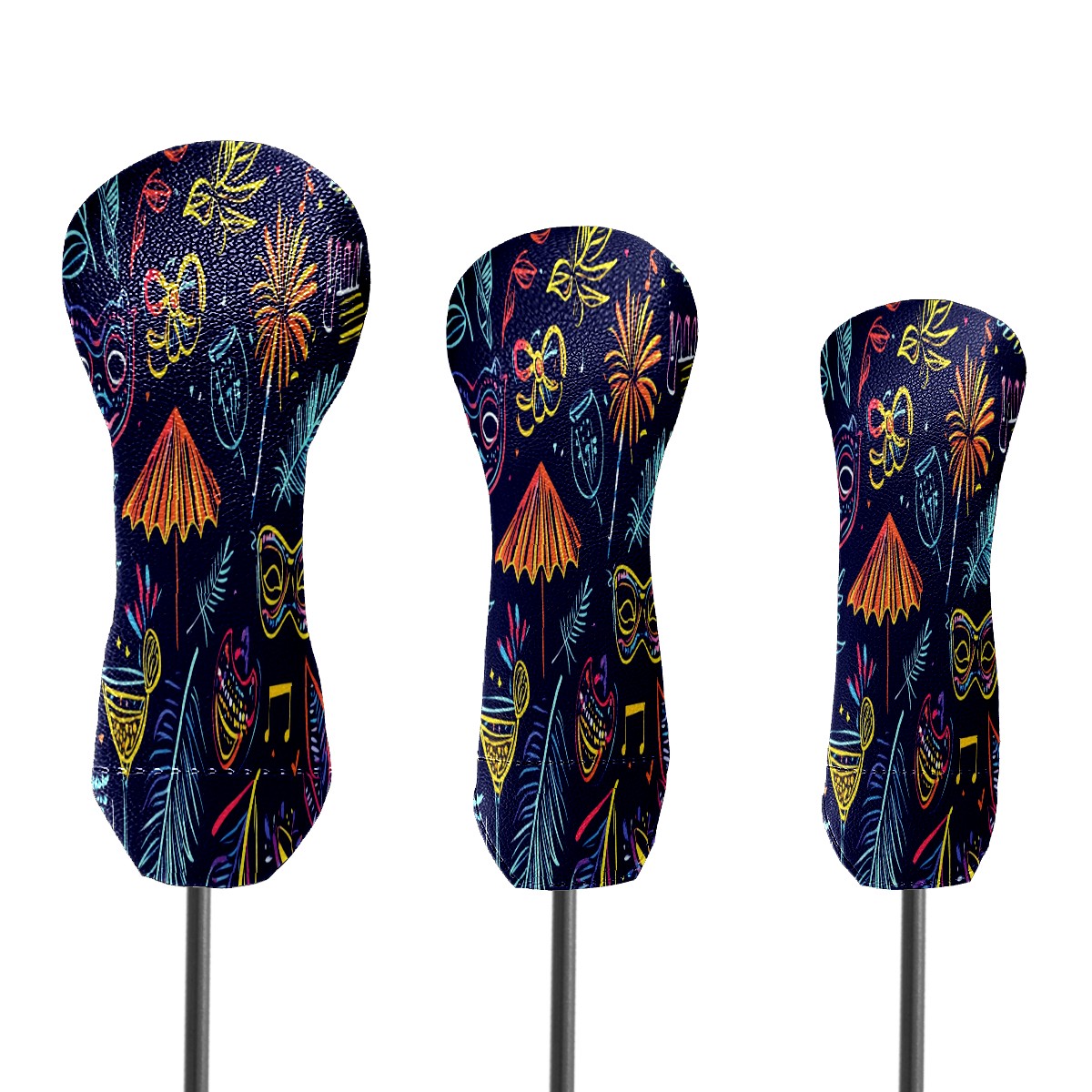 Golf Club Cover, Velvet Lining, High-Quality Leather, Suitable for the First Wood, Fairway Wood and Hybrid Club Head Cover, Suitable for Men and Women Golf Enthusiasts Festive Pattern