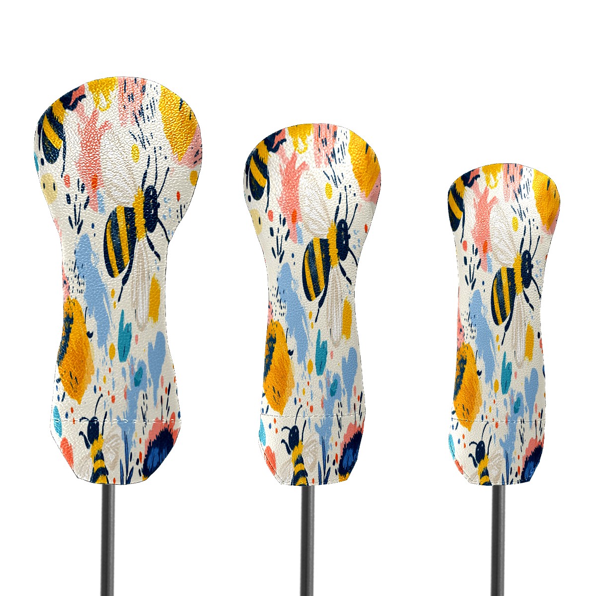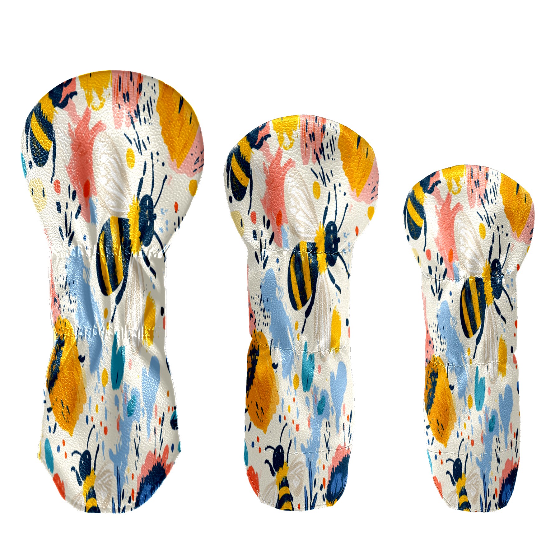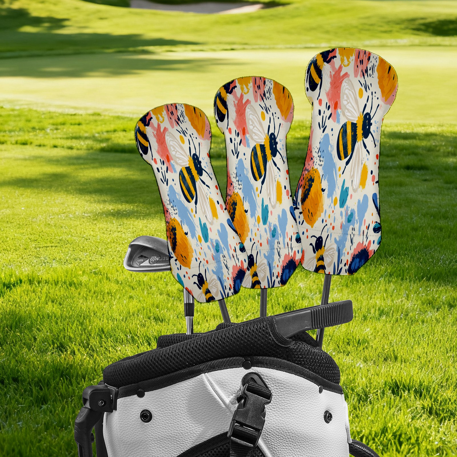 Golf Club Cover, Velvet Lining, High-Quality Leather, Suitable for the First Wood, Fairway Wood and Hybrid Club Head Cover, Suitable for Men and Women Golf Enthusiasts Cartoon Bee Hive