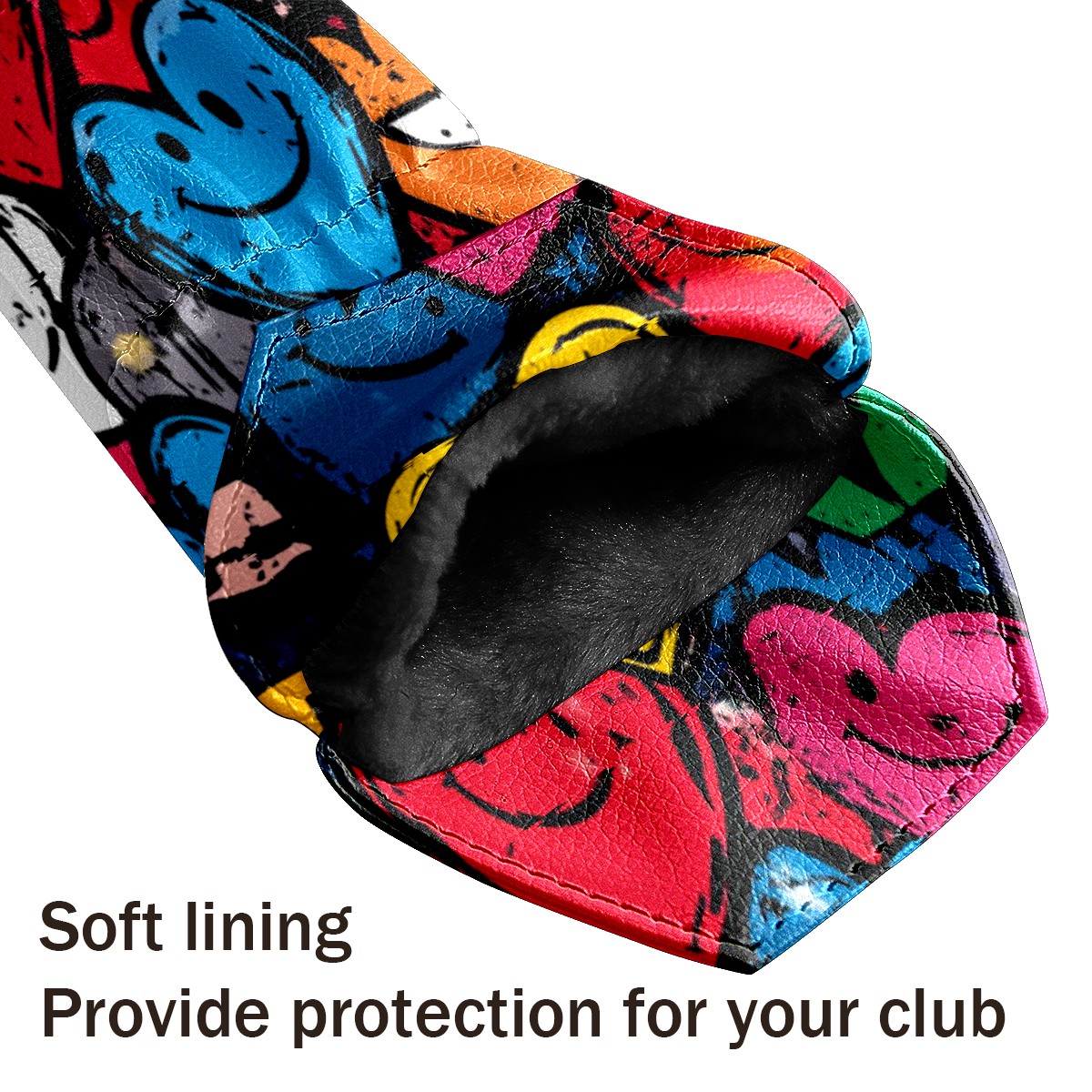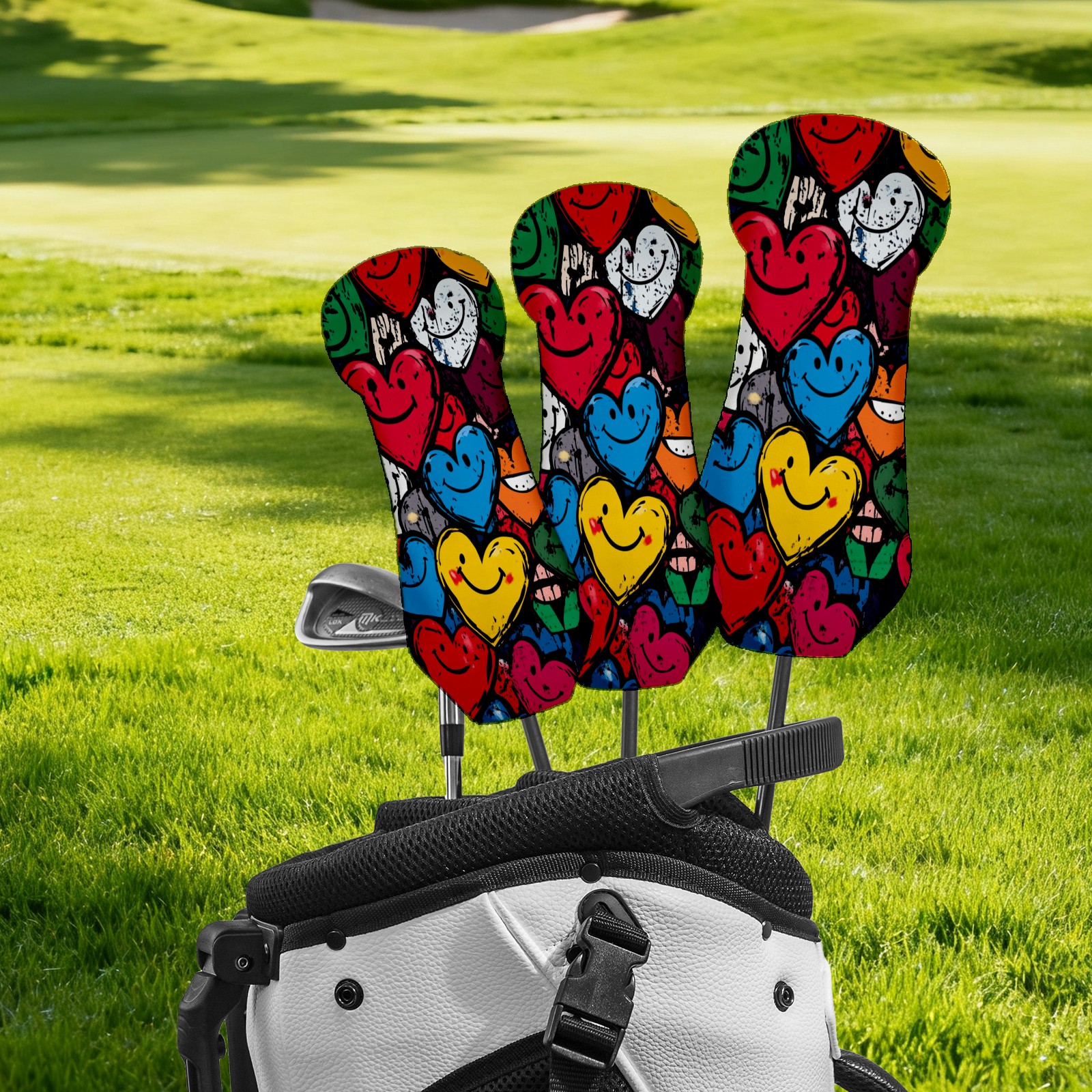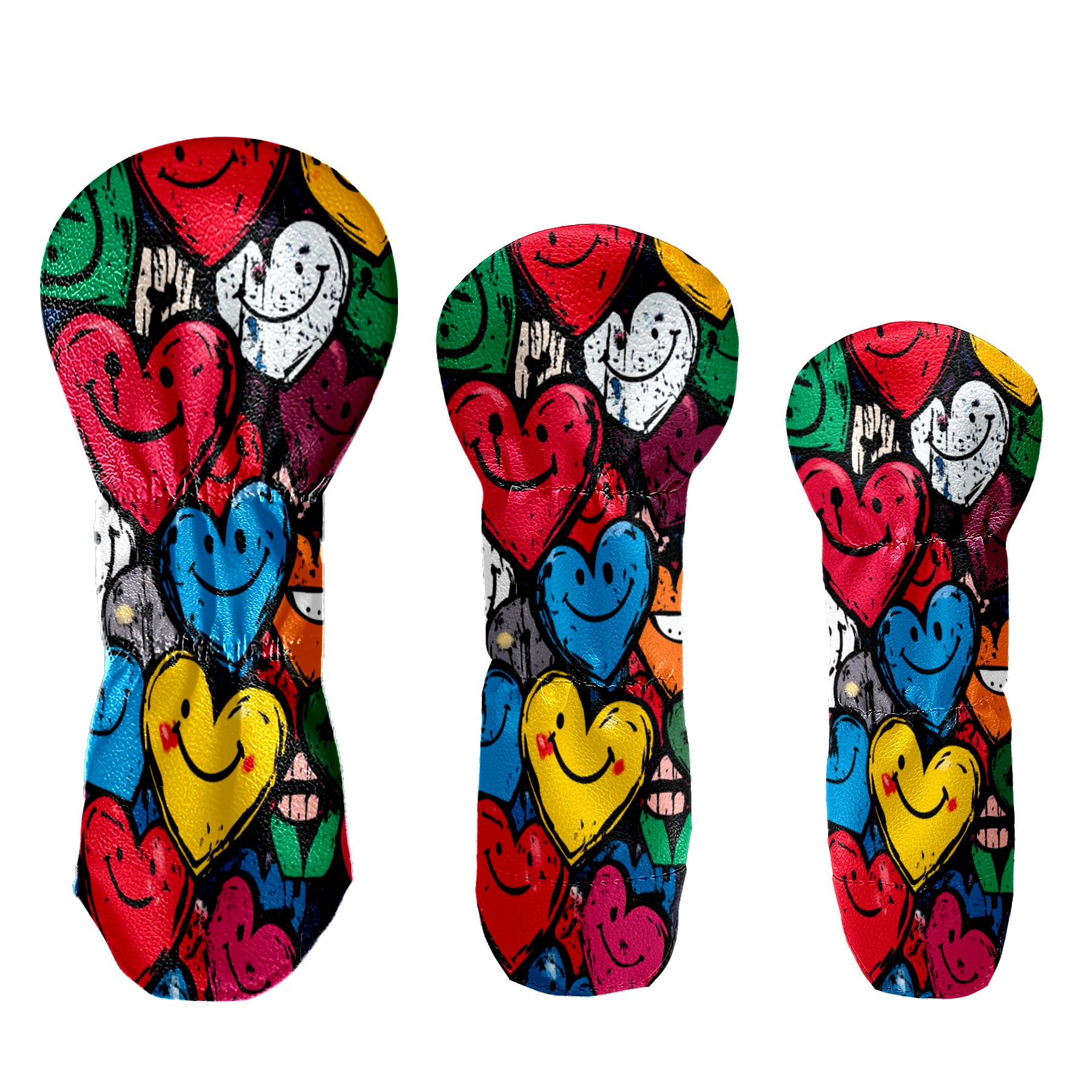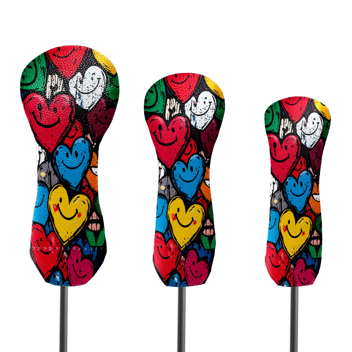 Golf Club Cover, Velvet Lining, High-Quality Leather, Suitable for the First Wood, Fairway Wood and Hybrid Club Head Cover, Suitable for Men and Women Golf Enthusiasts Graffiti Heart