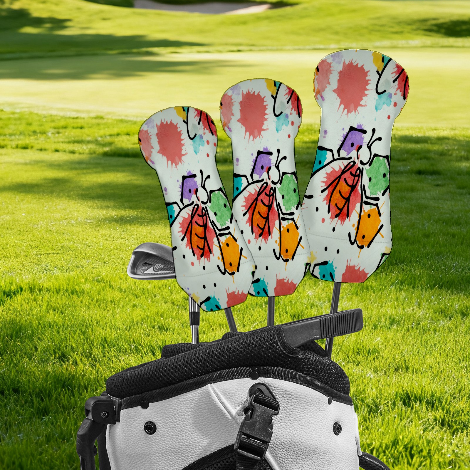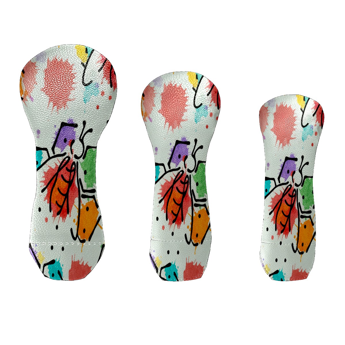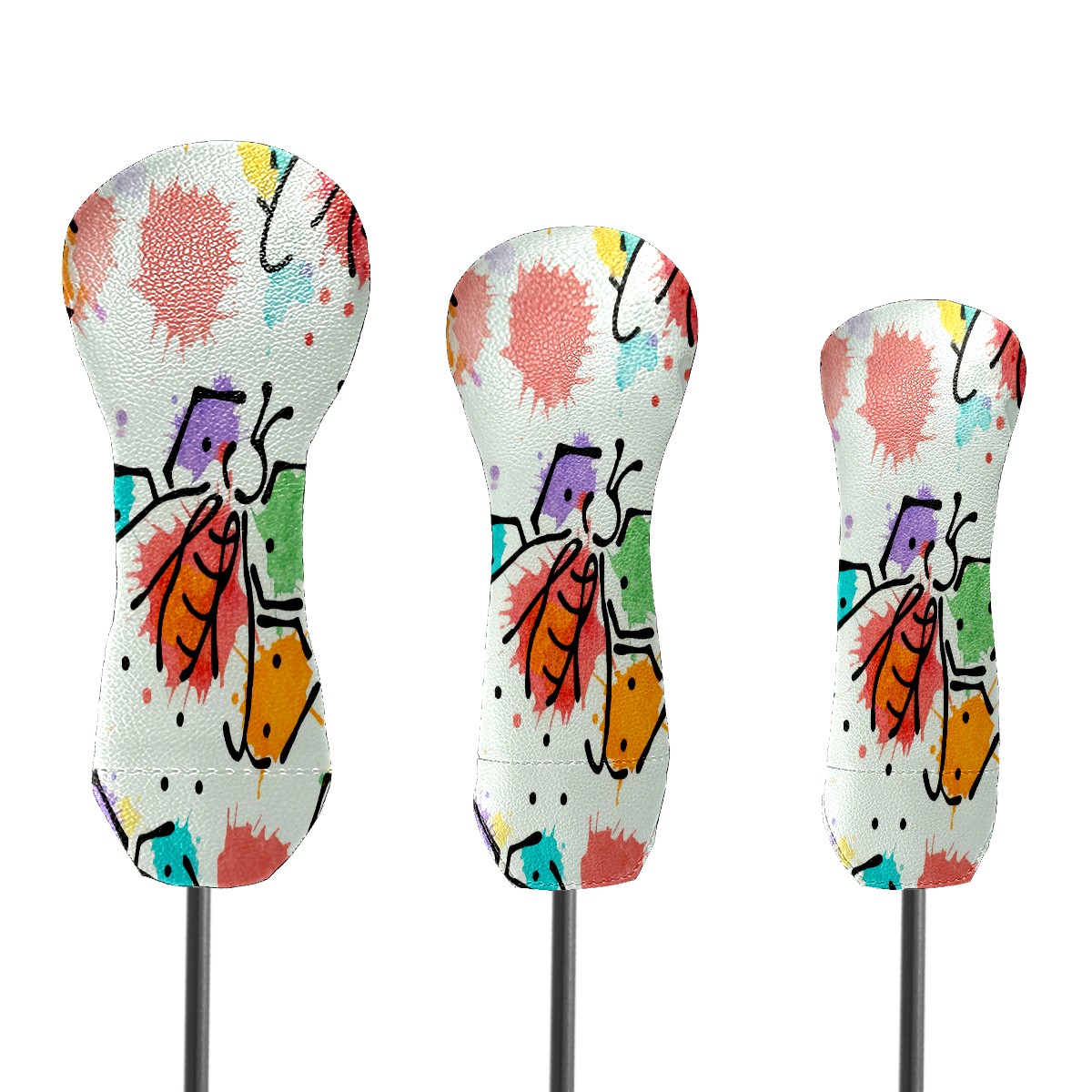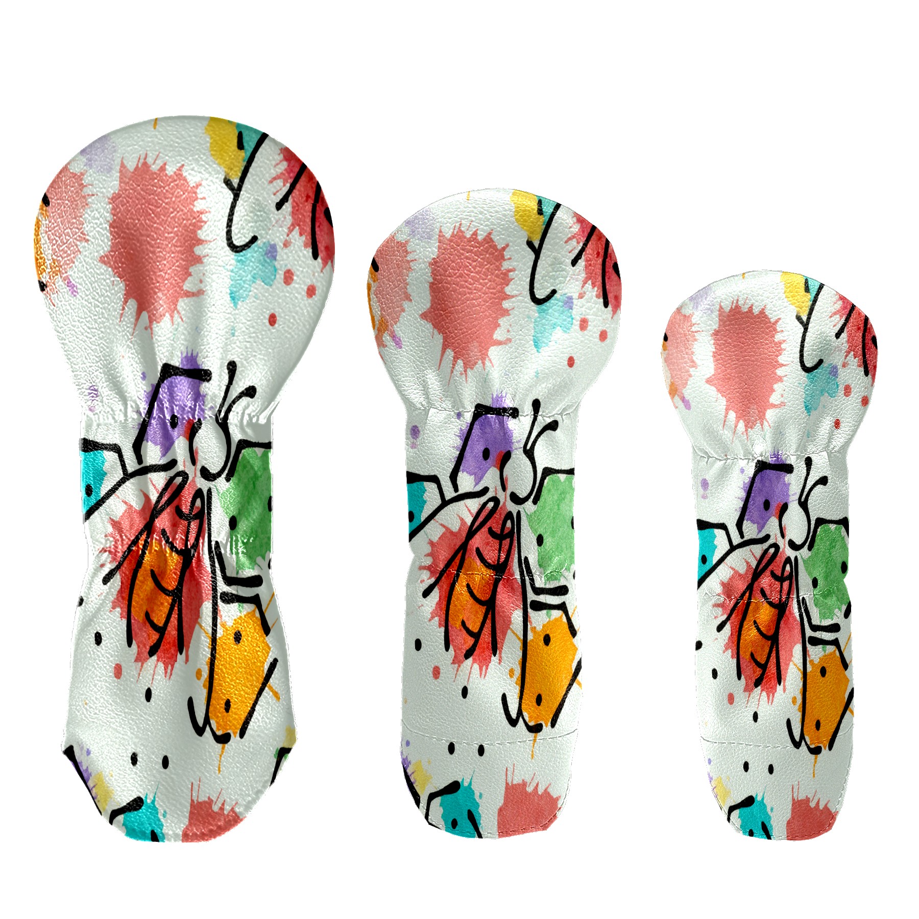 Golf Club Cover, Velvet Lining, High-Quality Leather, Suitable for the First Wood, Fairway Wood and Hybrid Club Head Cover, Suitable for Men and Women Golf Enthusiasts Ink Bee