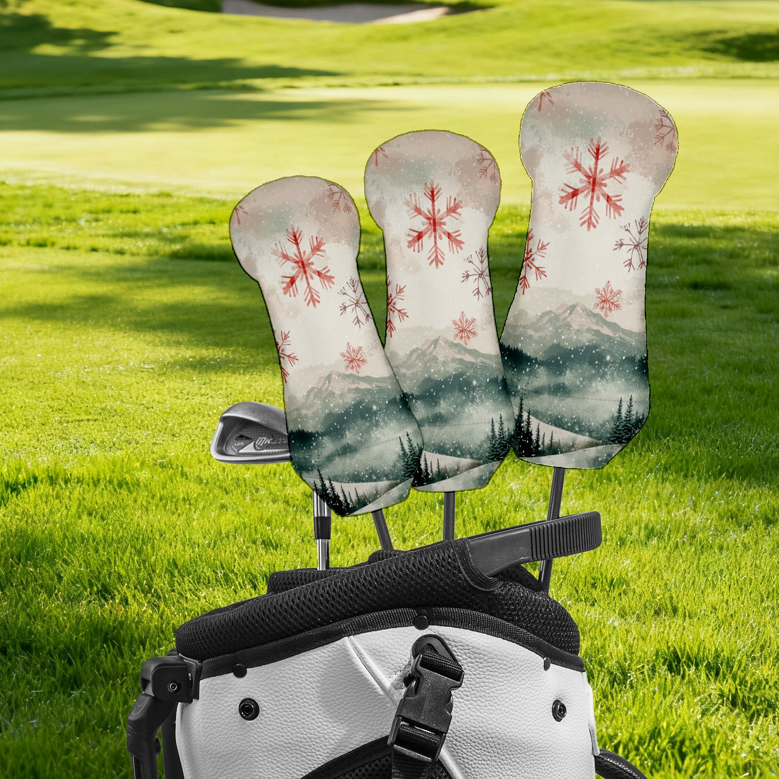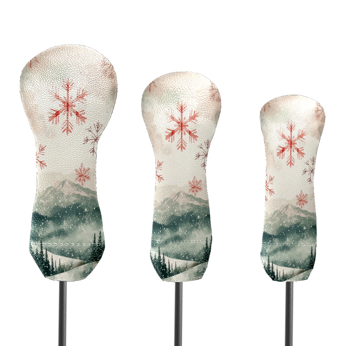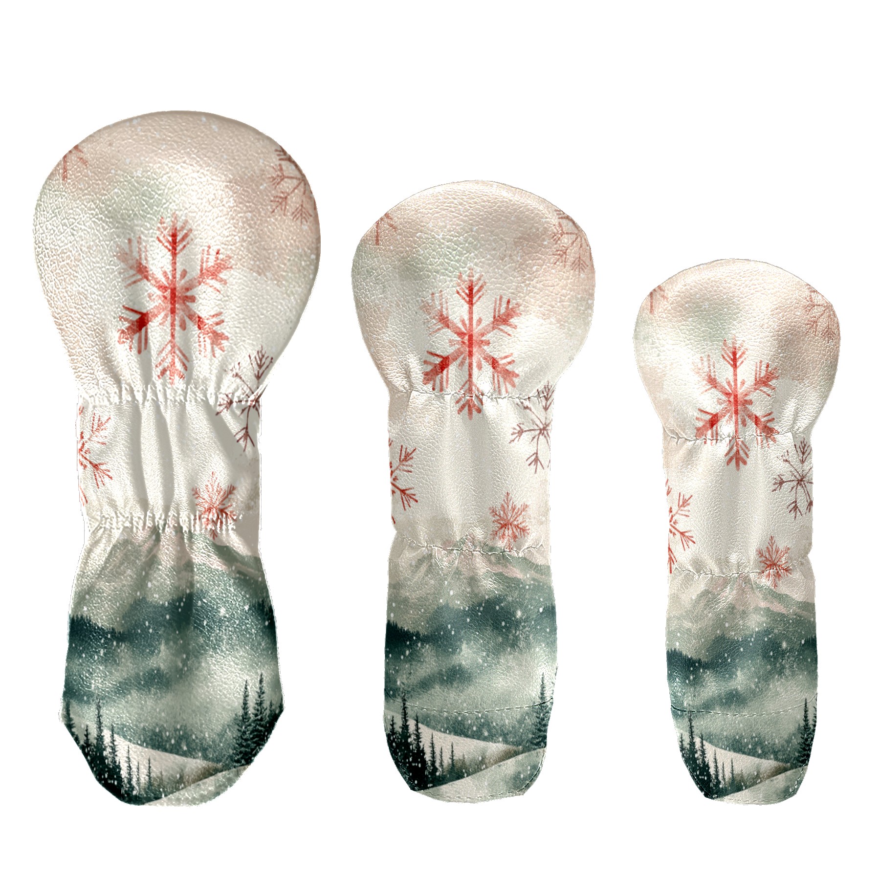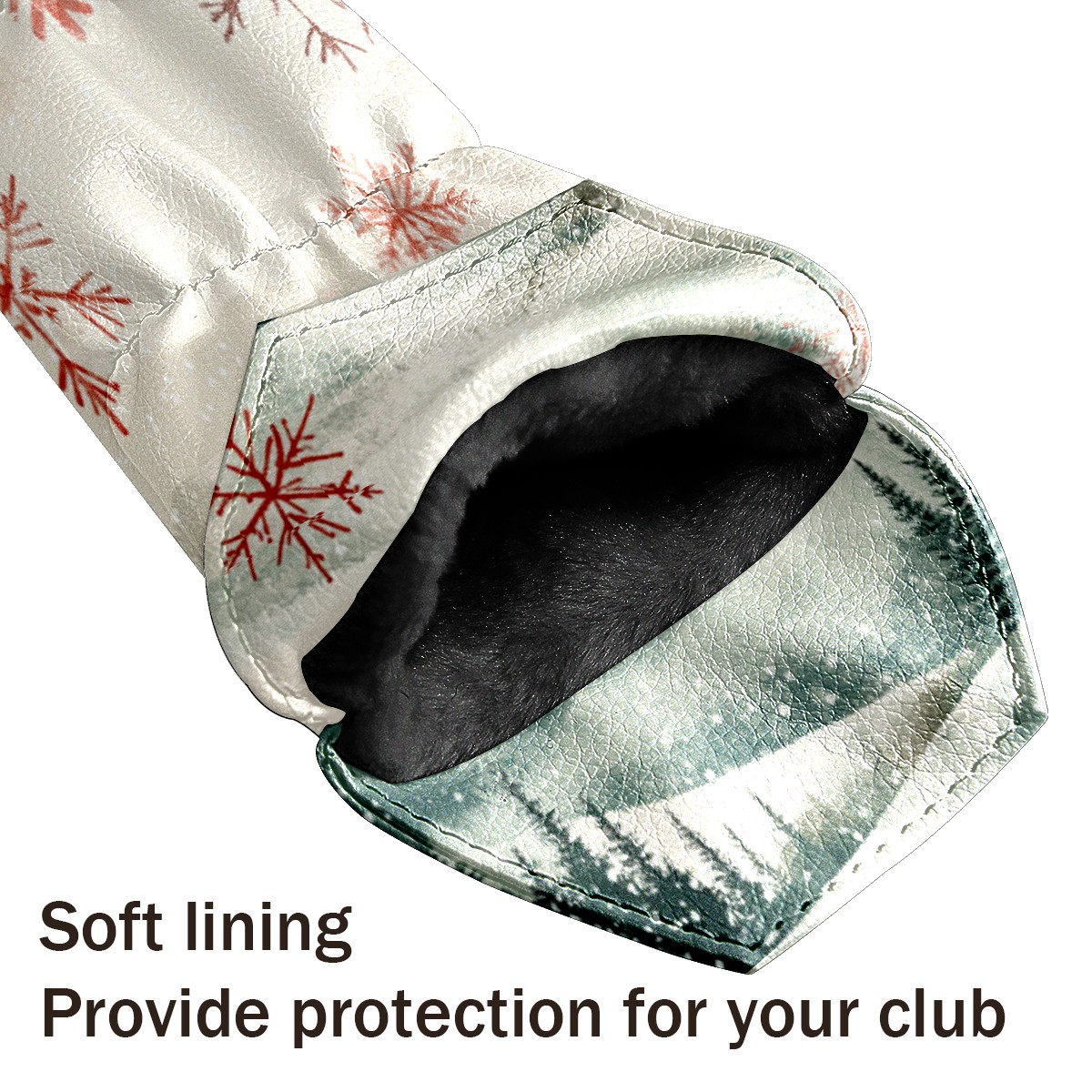 Golf Club Cover, Velvet Lining, High-Quality Leather, Suitable for the First Wood, Fairway Wood and Hybrid Club Head Cover, Suitable for Men and Women Golf Enthusiasts Snowflake