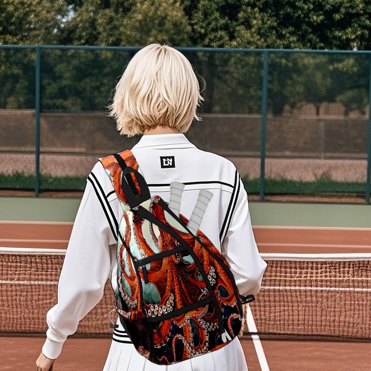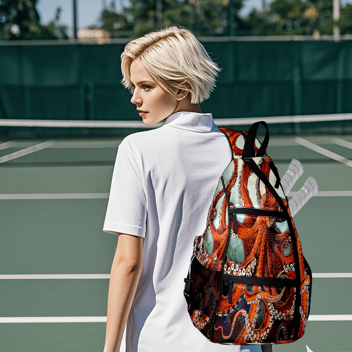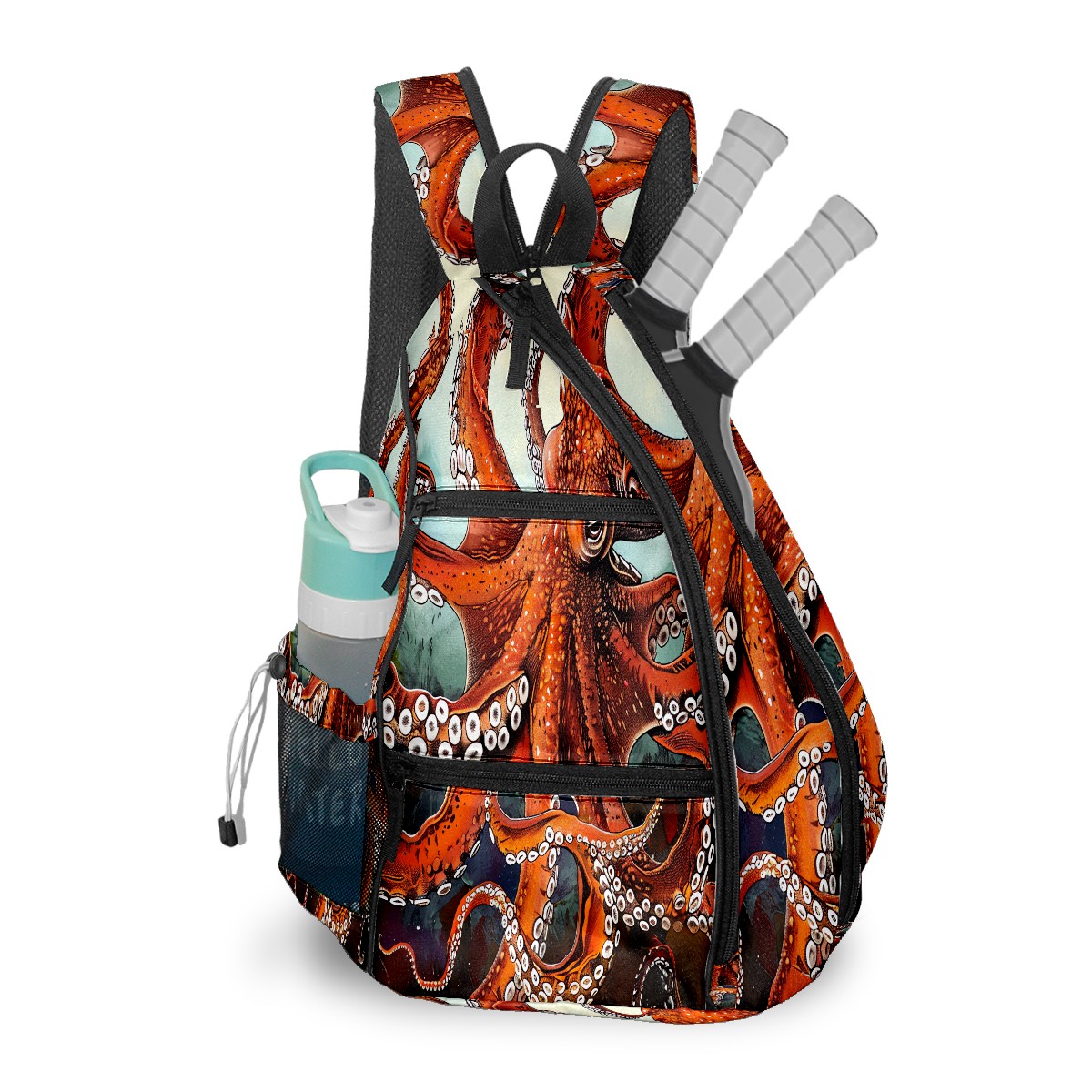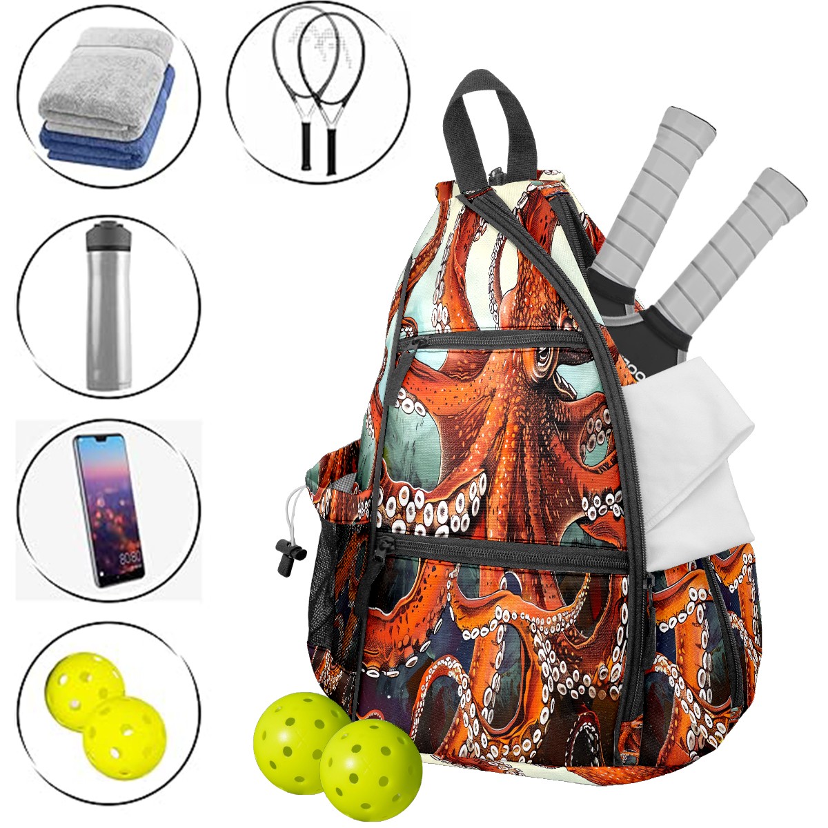 Pickleball Bag Red Octopus (1) Pickle Ball Backpack for Women Men Premium Lightweight Crossbody Sling Bag Sports Backpack for Pickleball Paddle Tennis