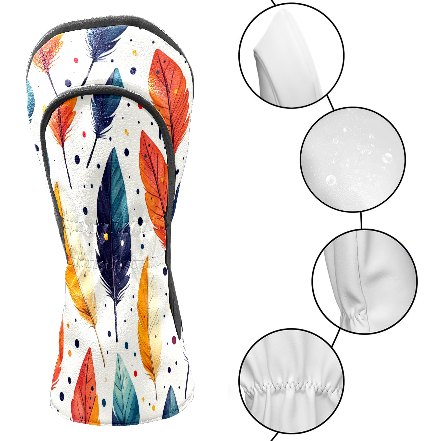 Golf Club Covers, GreenBlueFeathers Premium PU Leather Driver Hybrid Putter Head Covers with Velvet Lining, Waterproof Golf Gifts for Men Women