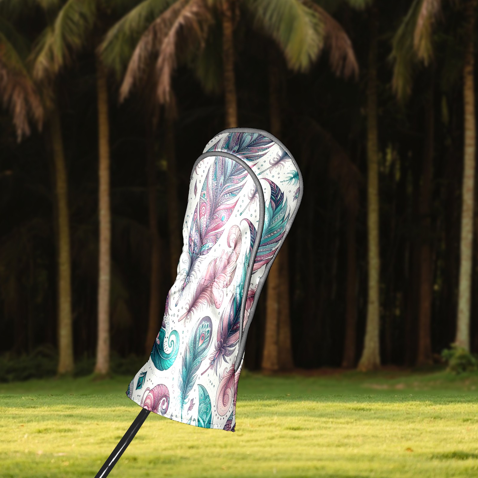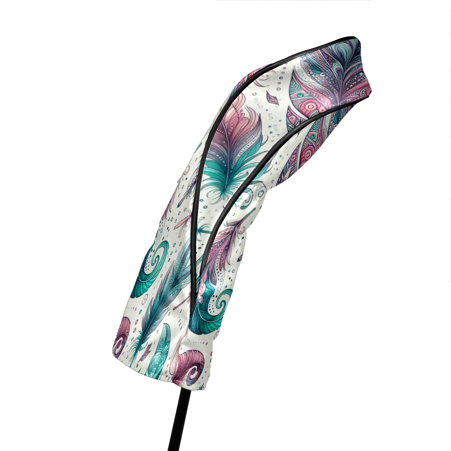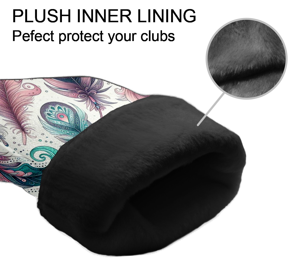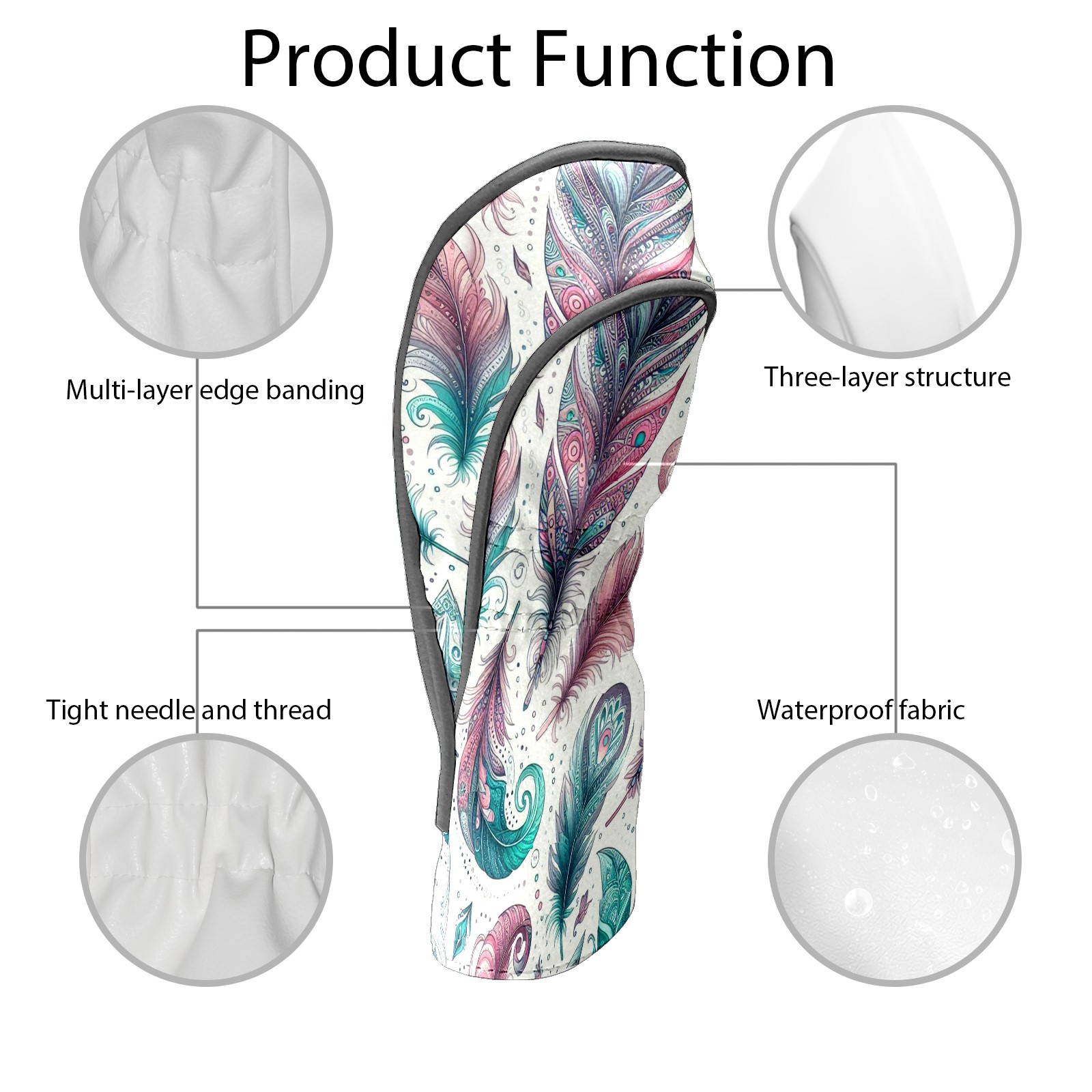 Golf Club Covers, While Feathers Premium PU Leather Driver Hybrid Putter Head Covers with Velvet Lining, Waterproof Golf Gifts for Men Women