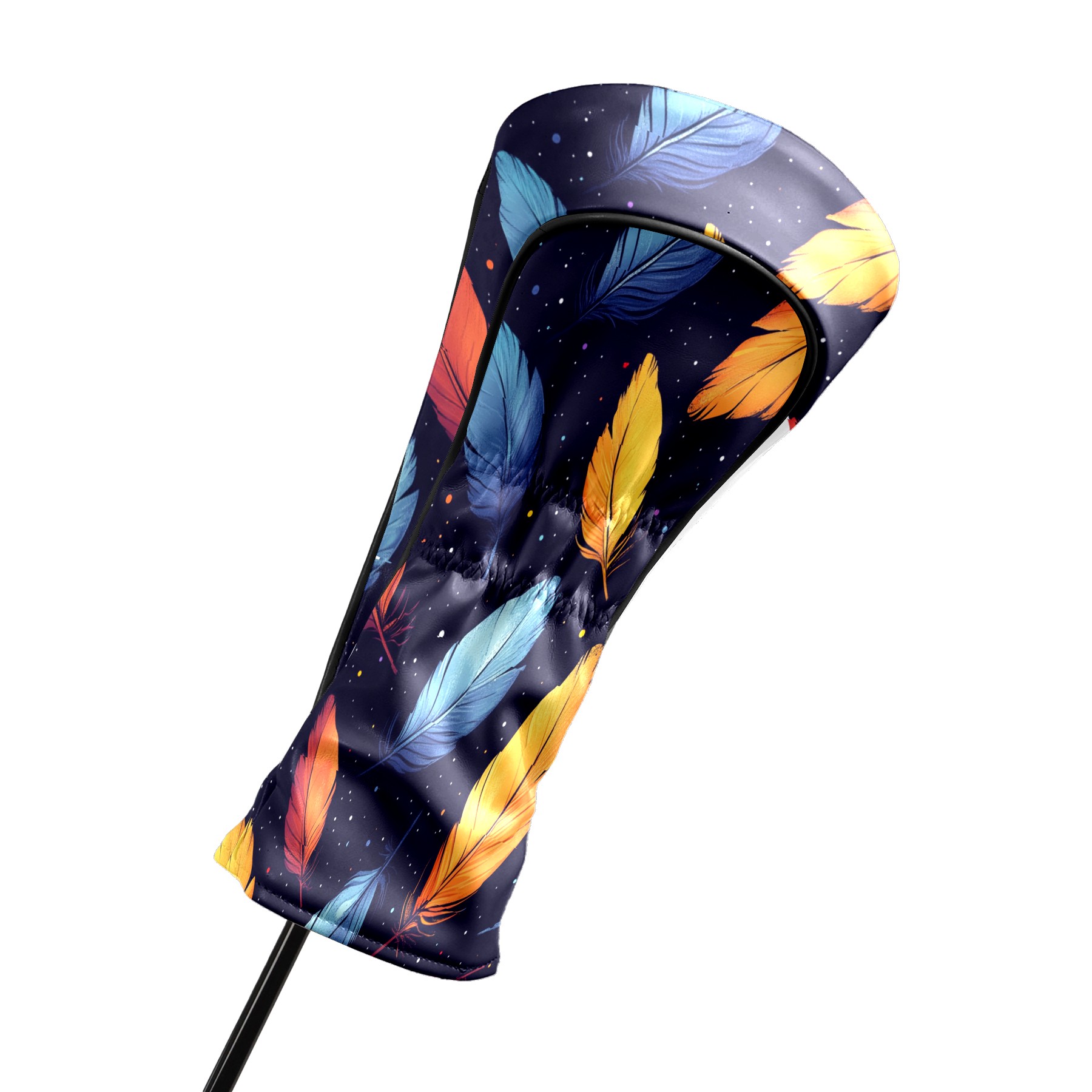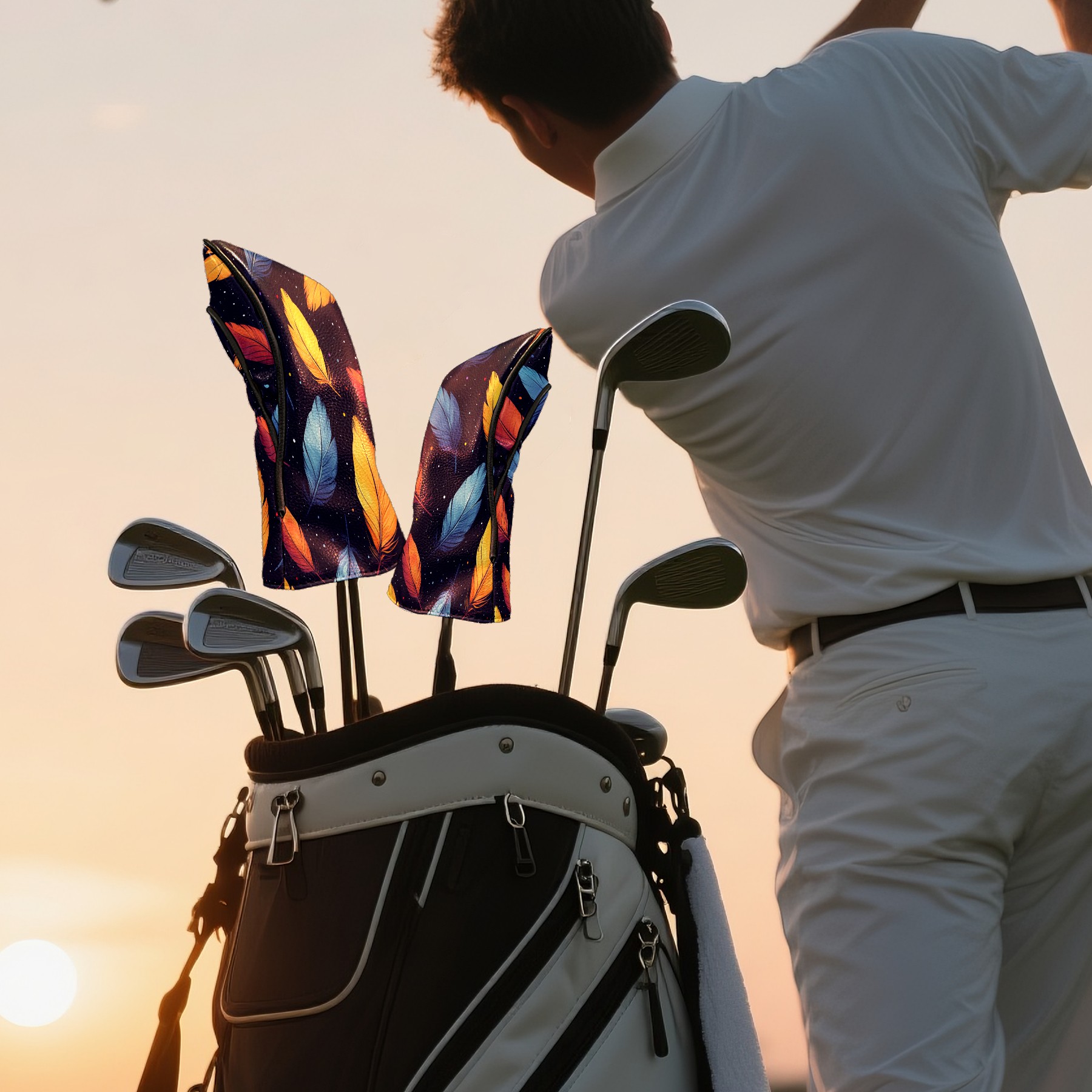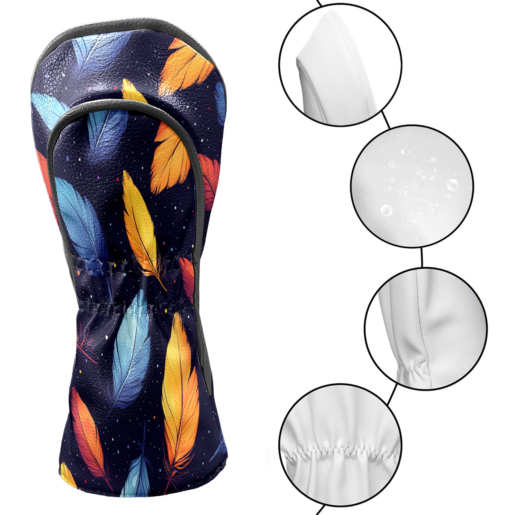 Golf Club Covers, Purple Feathers Premium PU Leather Driver Hybrid Putter Head Covers with Velvet Lining, Waterproof Golf Gifts for Men Women