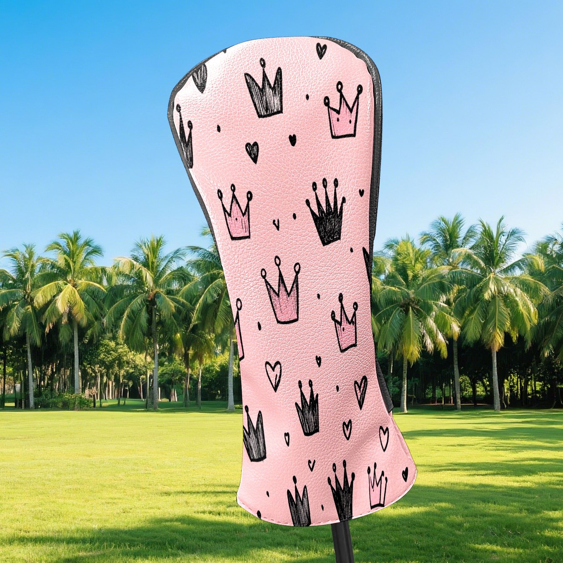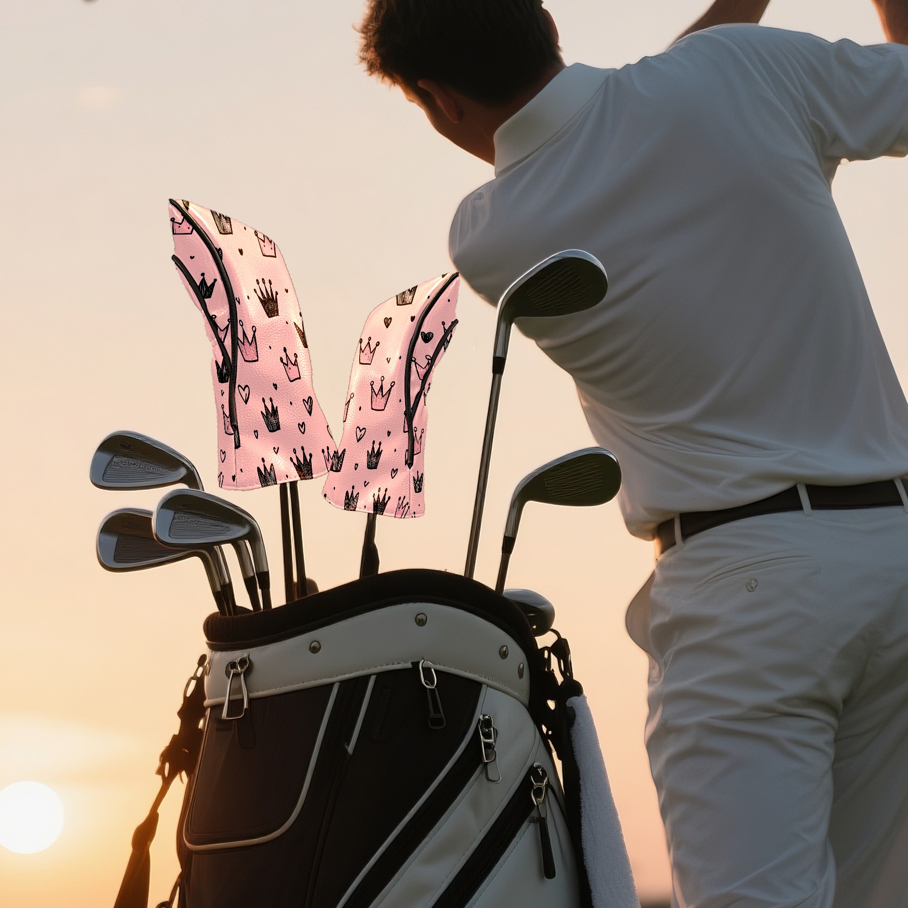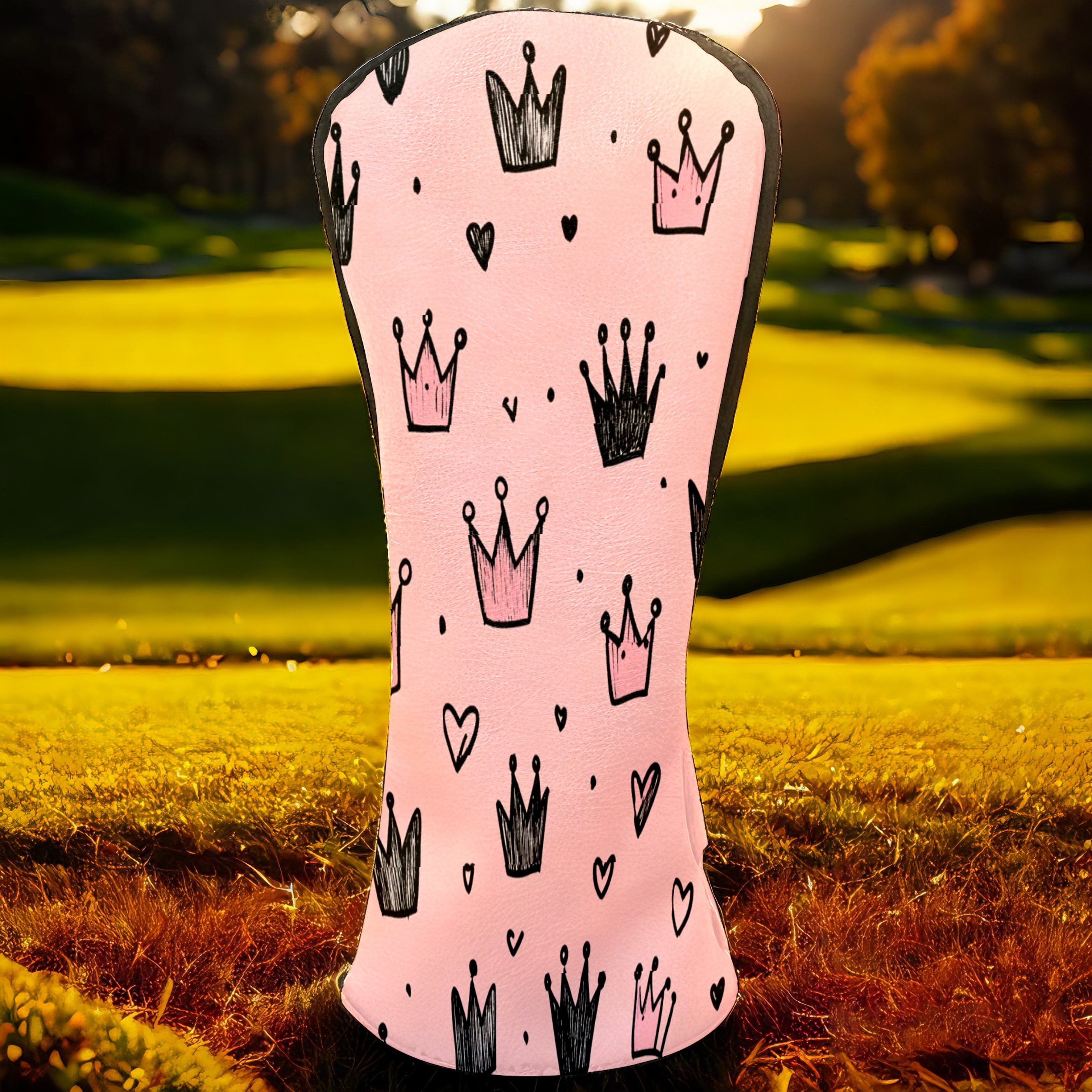 Golf Club Covers, Pink Crown Hearts Premium PU Leather Driver Hybrid Putter Head Covers with Velvet Lining, Waterproof Golf Gifts for Men Women