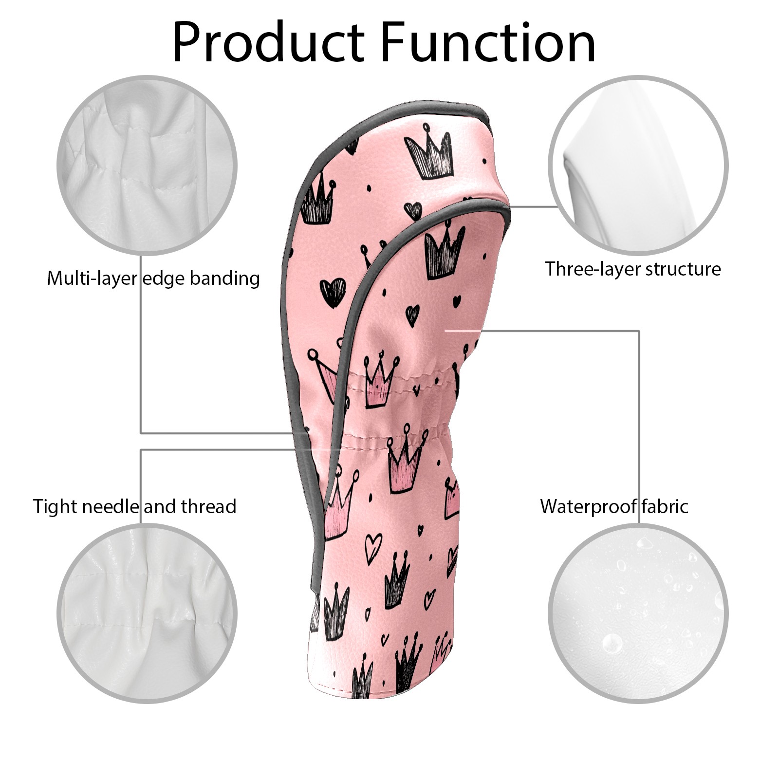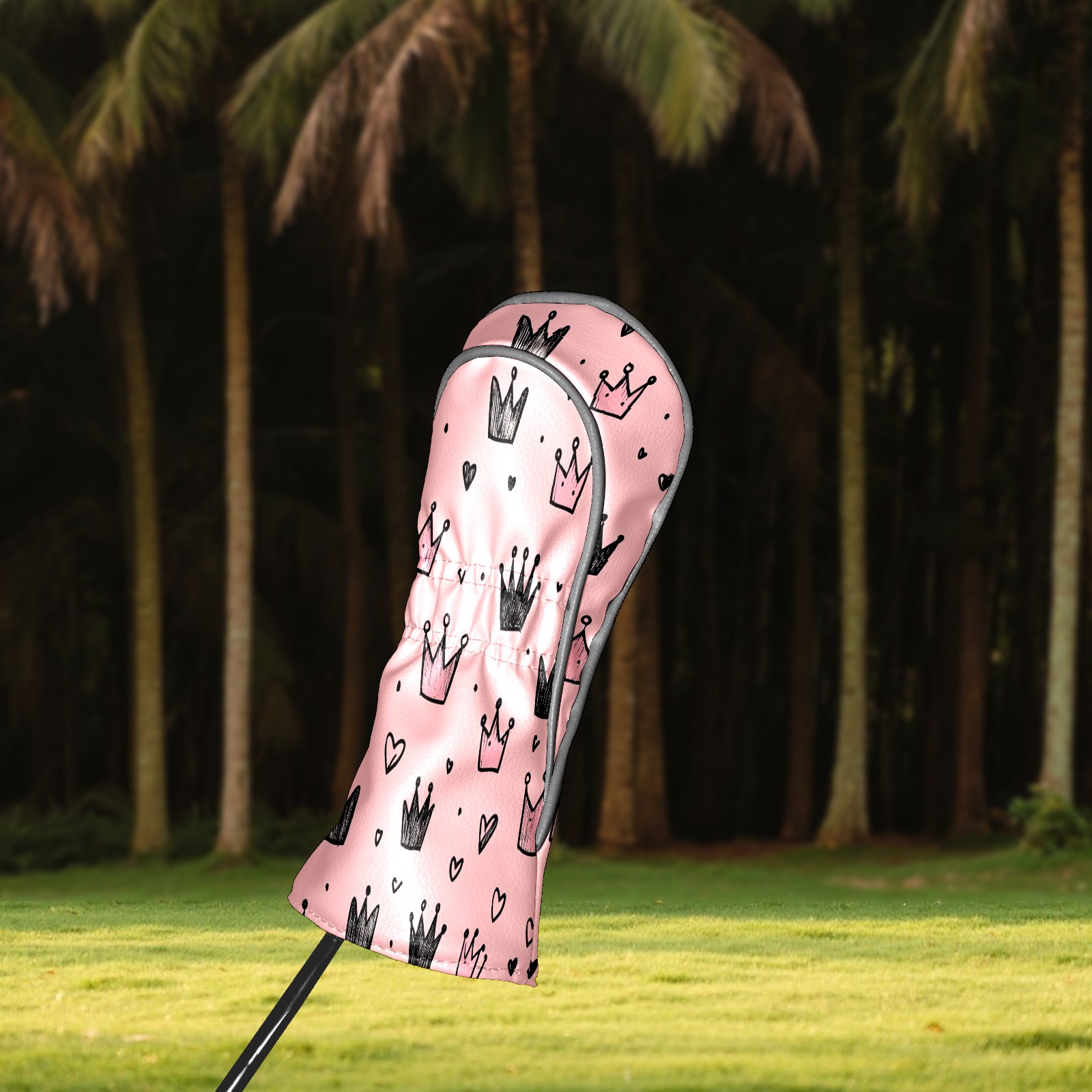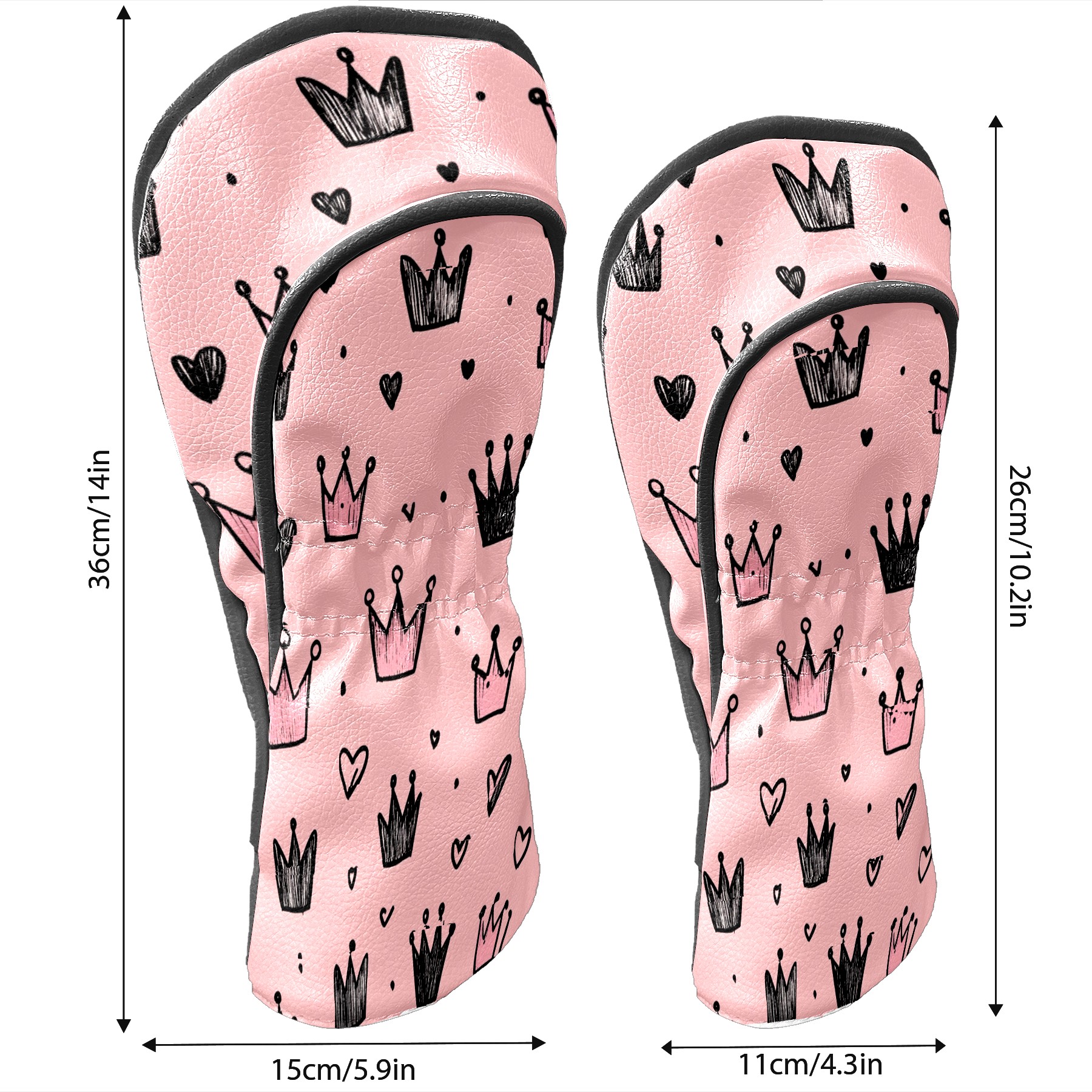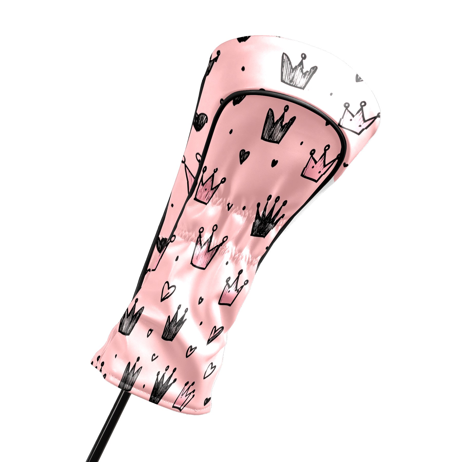 Golf Club Covers, Pink Crown Hearts Premium PU Leather Driver Hybrid Putter Head Covers with Velvet Lining, Waterproof Golf Gifts for Men Women
