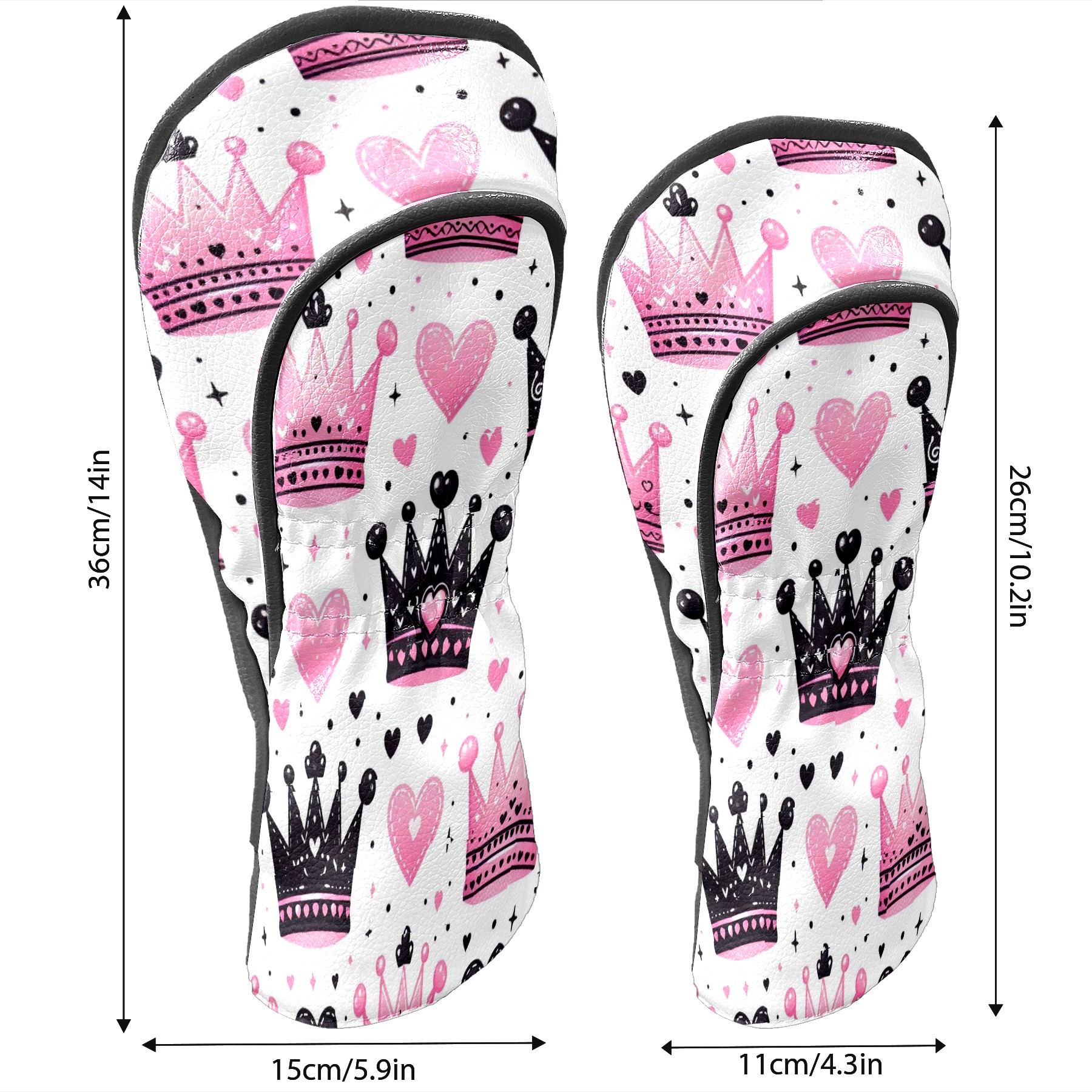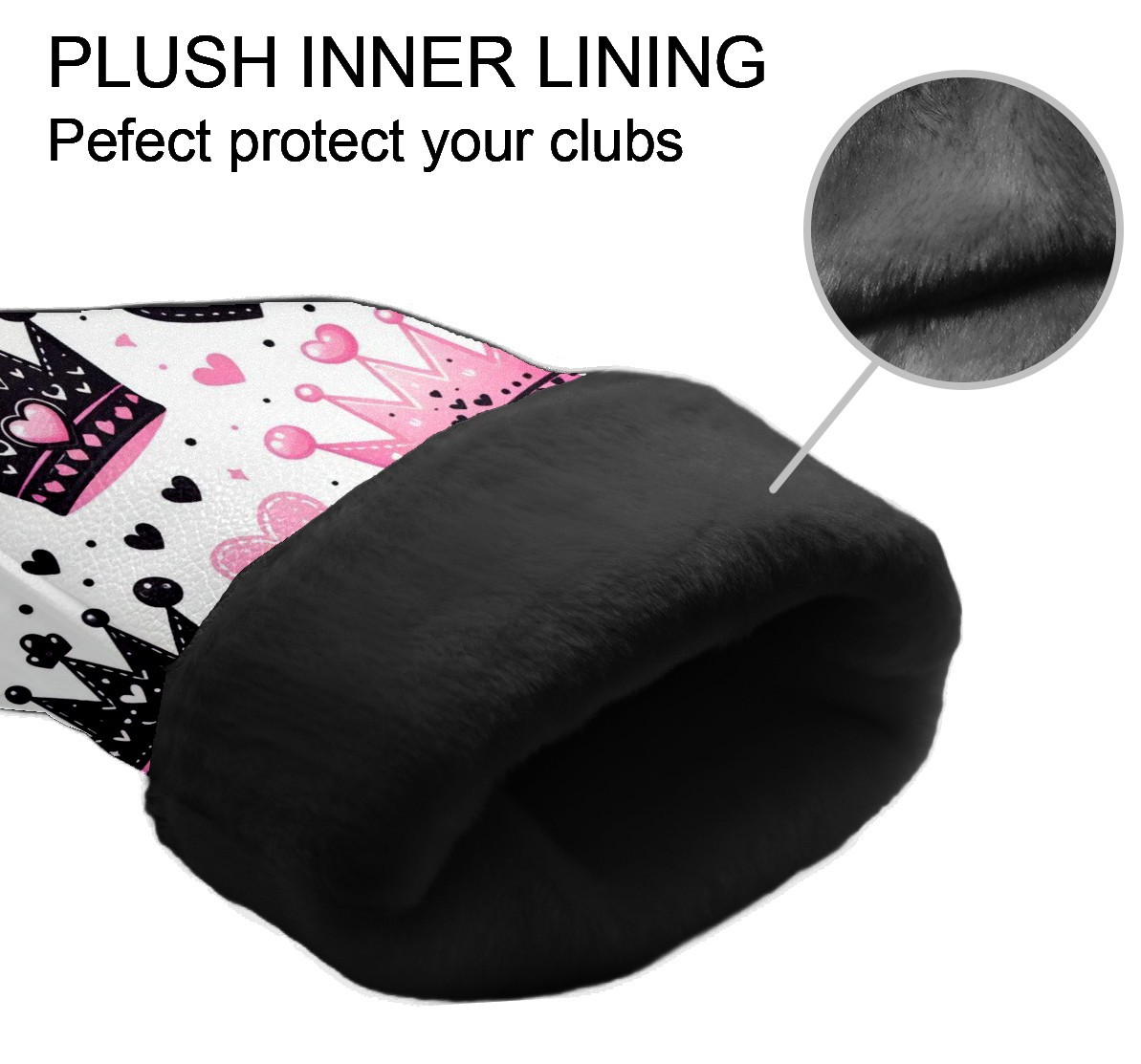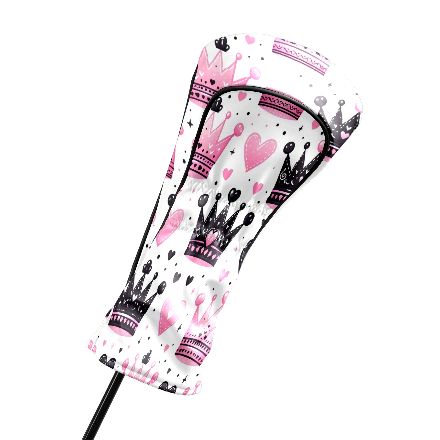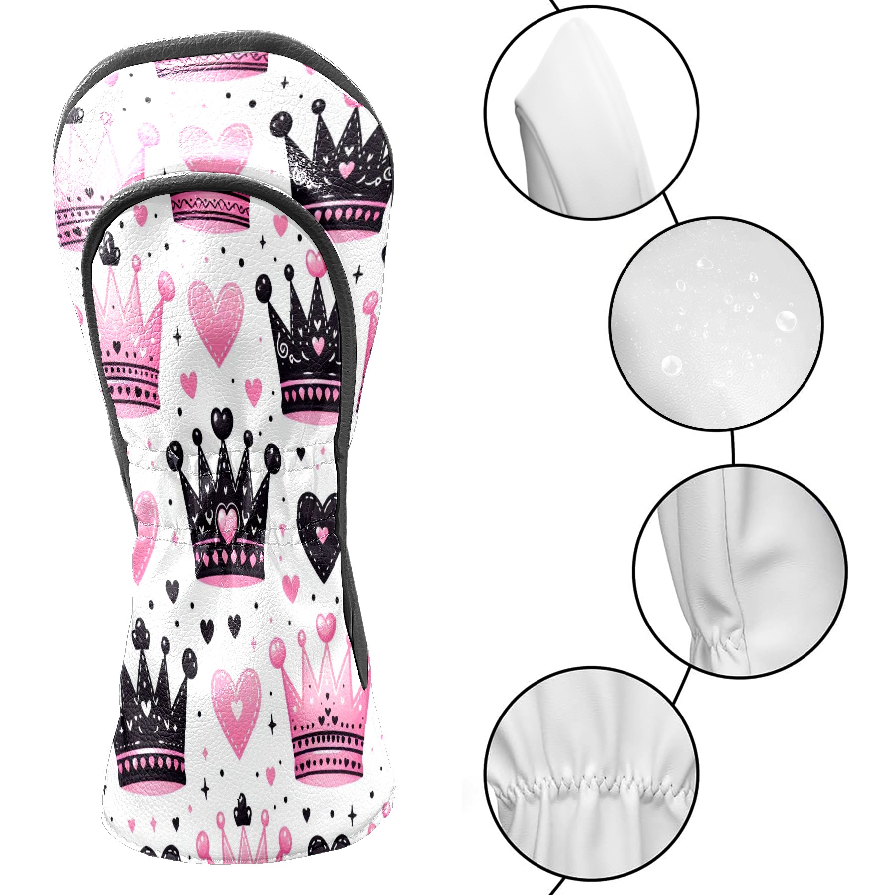 Golf Club Covers, Pink Black Crown Heart Premium PU Leather Driver Hybrid Putter Head Covers with Velvet Lining, Waterproof Golf Gifts for Men Women