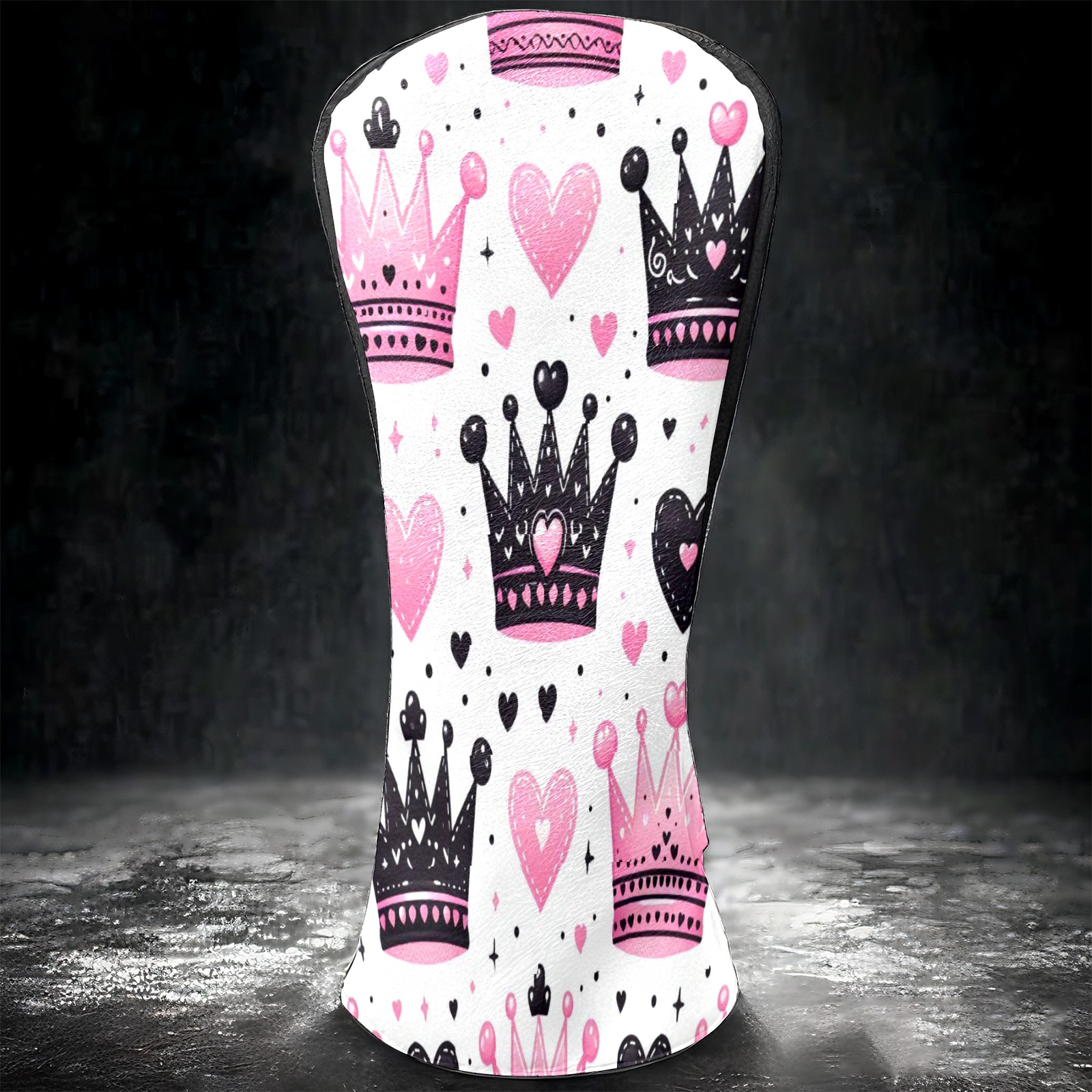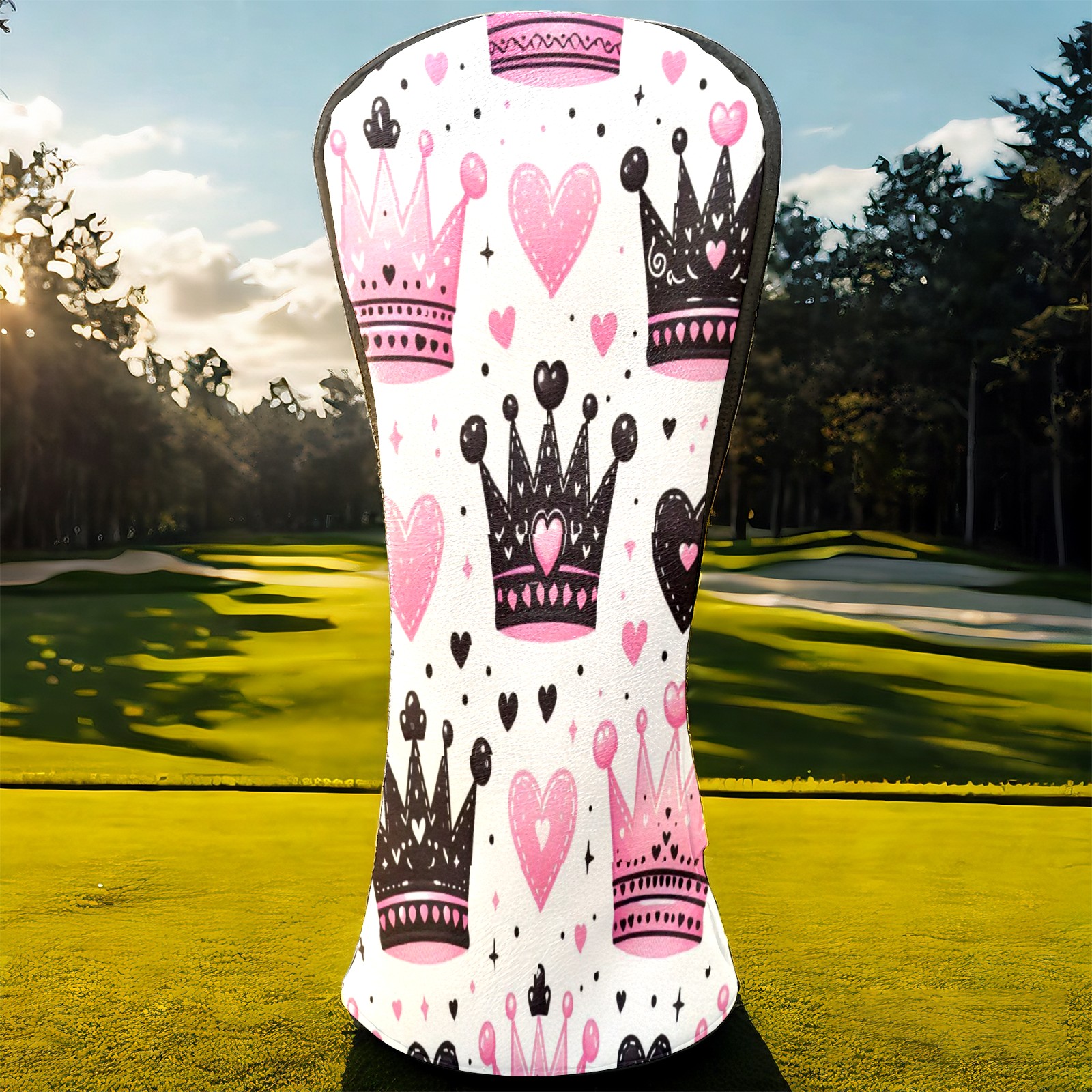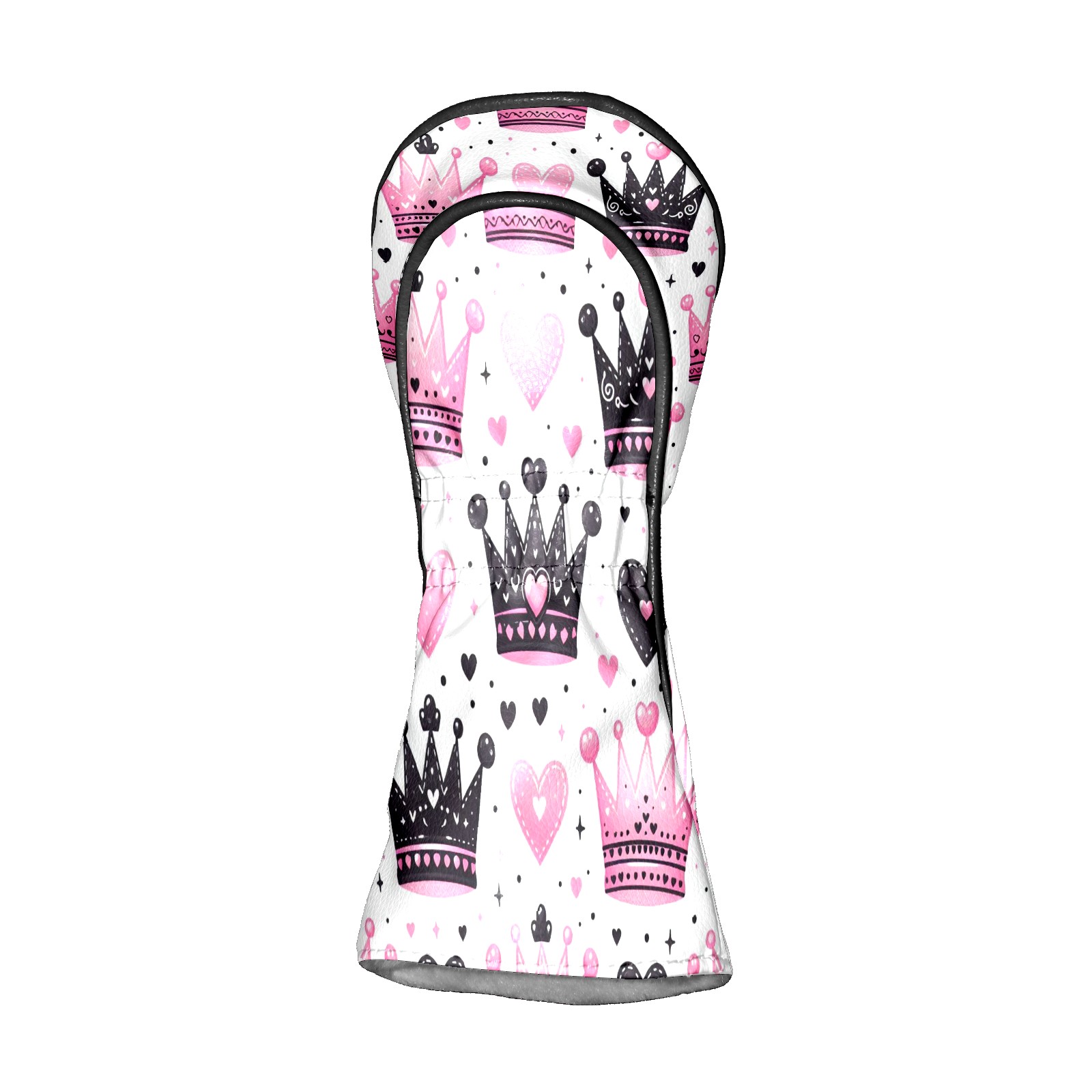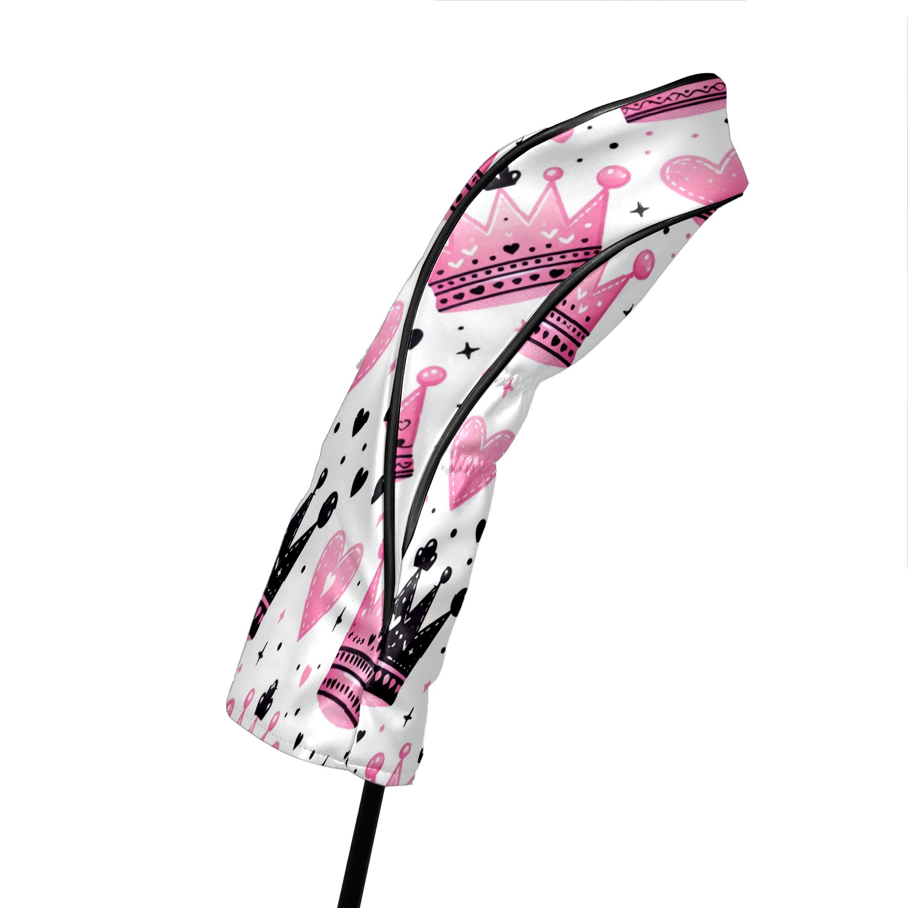 Golf Club Covers, Pink Black Crown Heart Premium PU Leather Driver Hybrid Putter Head Covers with Velvet Lining, Waterproof Golf Gifts for Men Women