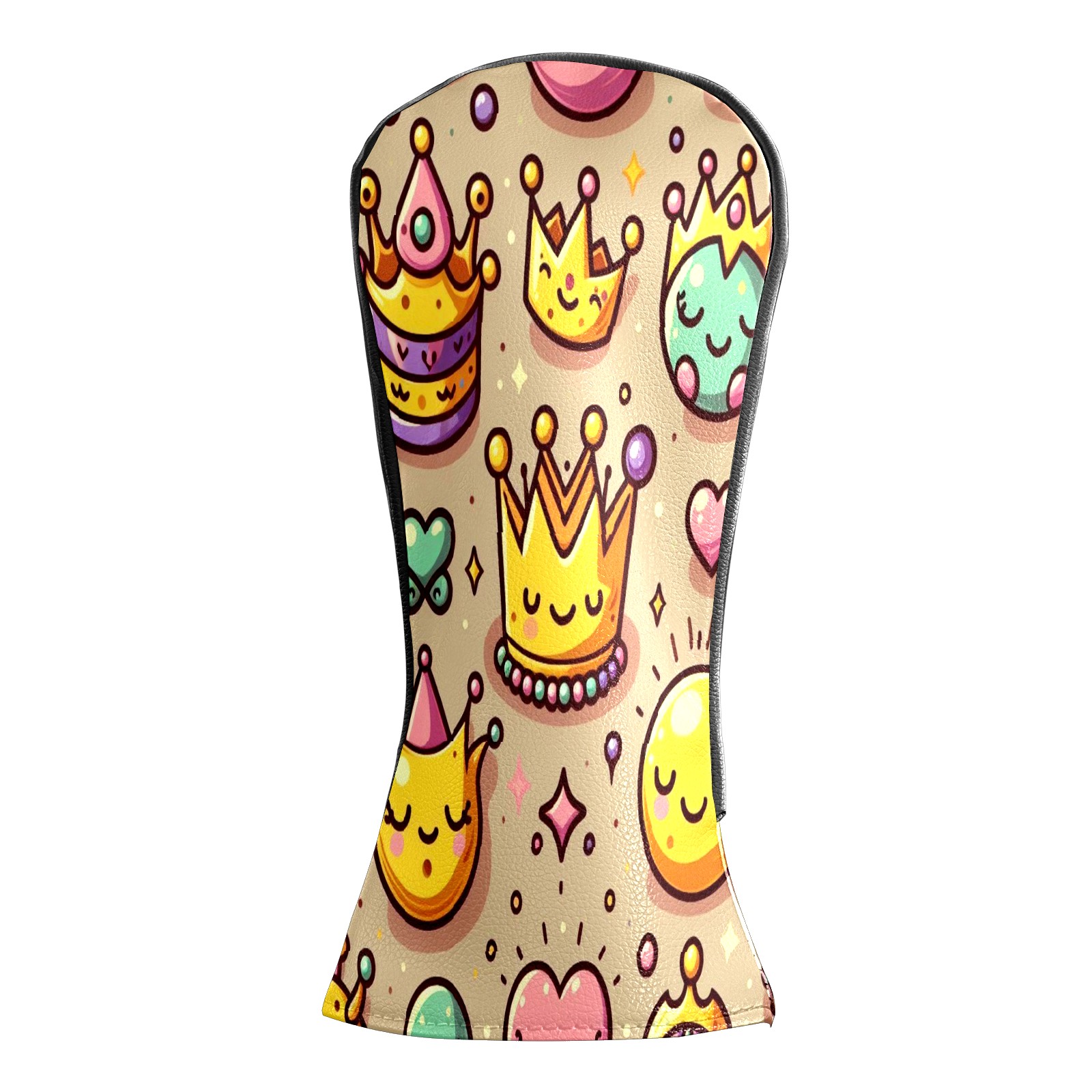 Golf Club Covers, Yellow Crown Premium PU Leather Driver Hybrid Putter Head Covers with Velvet Lining, Waterproof Golf Gifts for Men Women