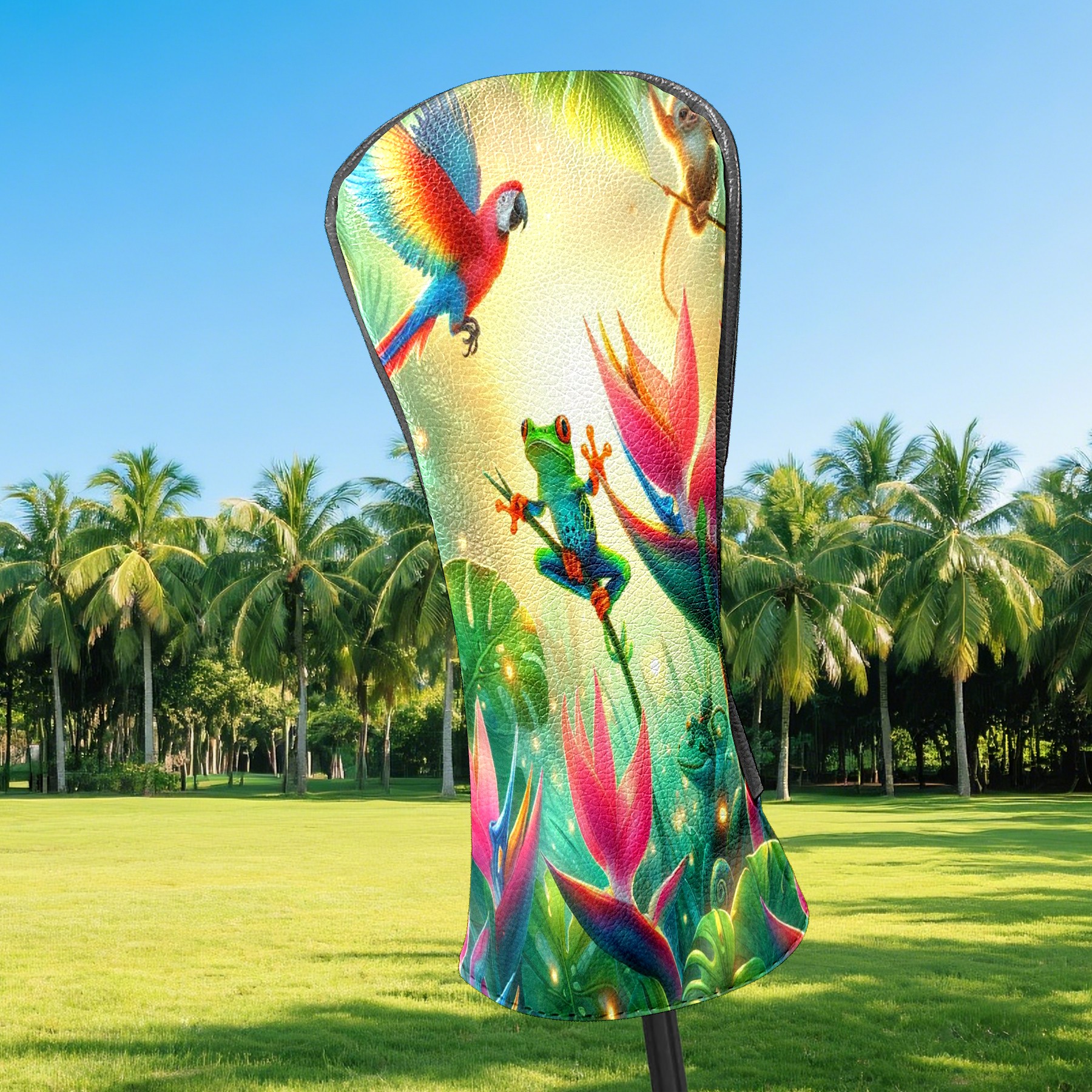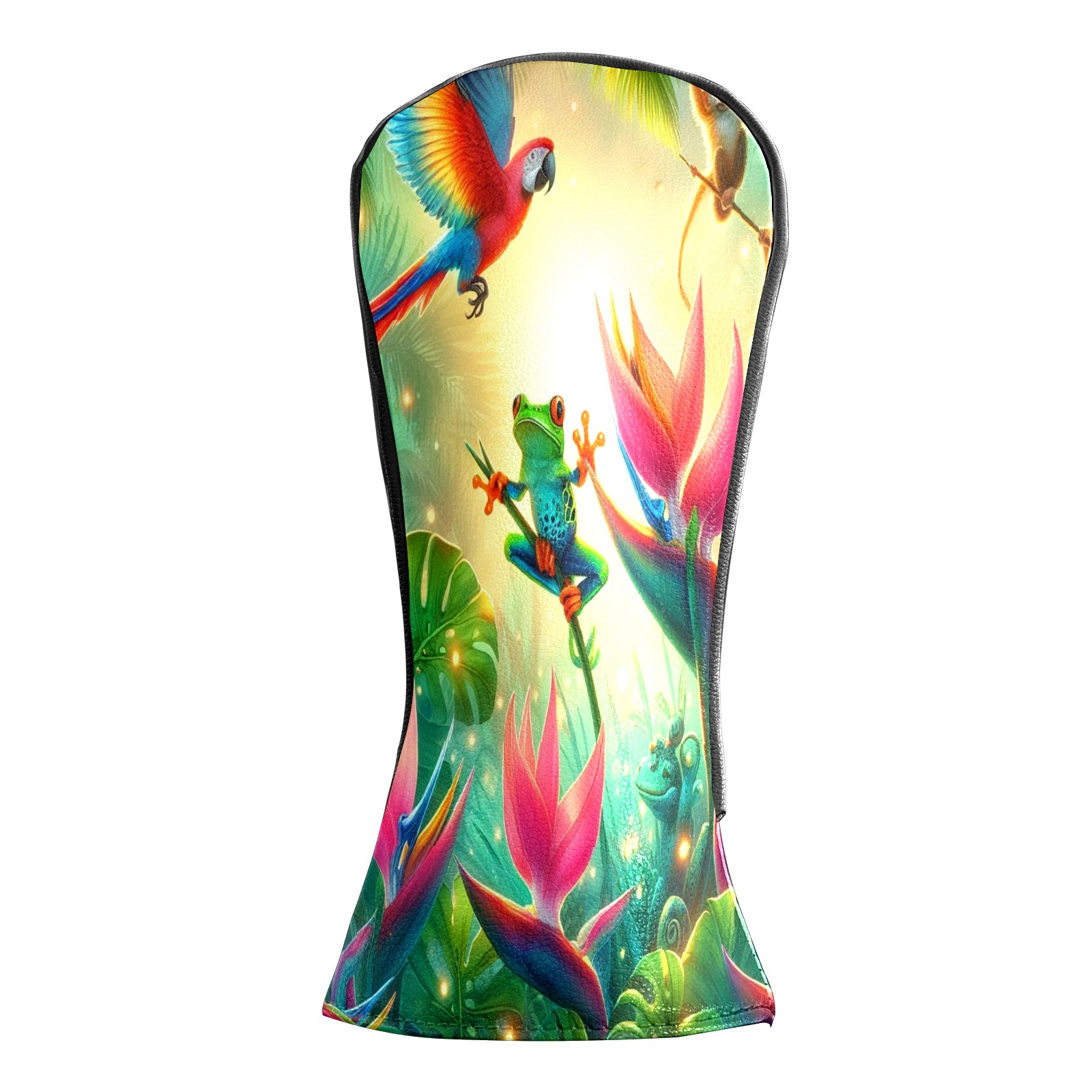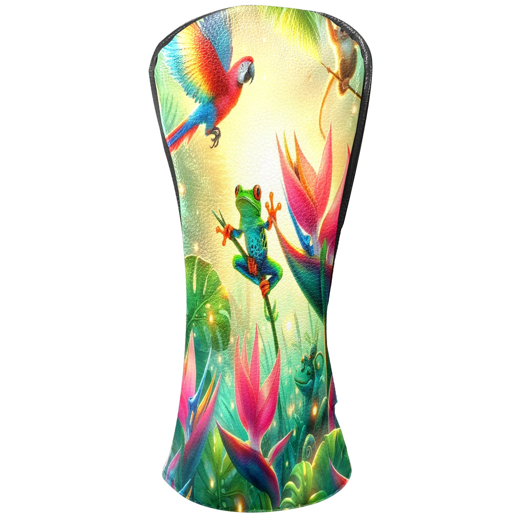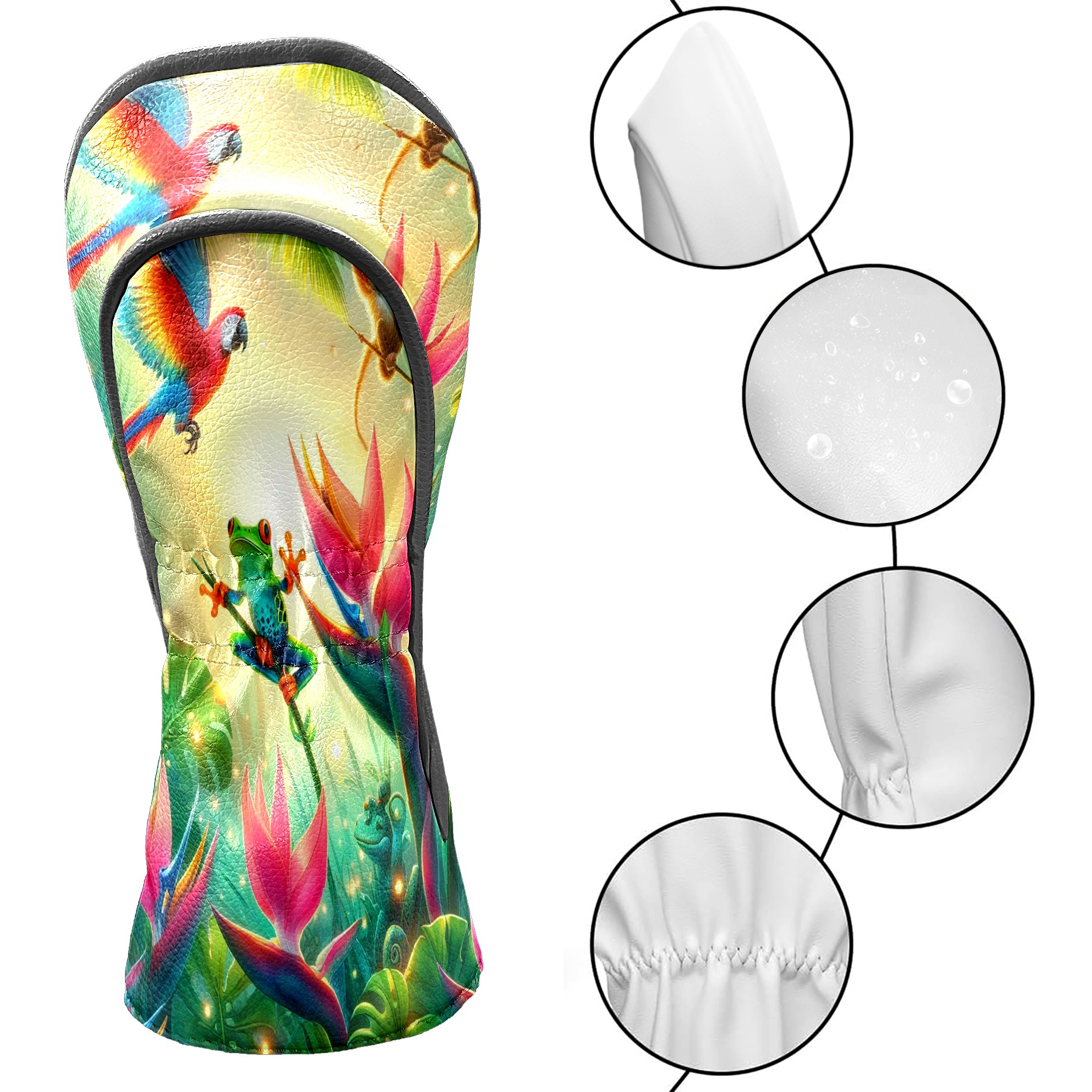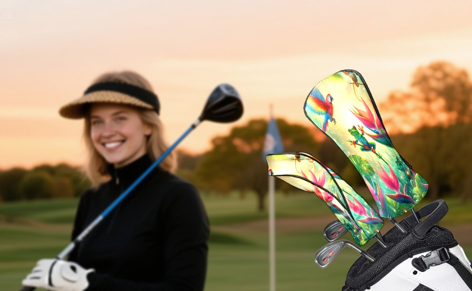 Golf Club Covers, Rainforest Parrot Frog Premium PU Leather Driver Hybrid Putter Head Covers with Velvet Lining, Waterproof Golf Gifts for Men Women