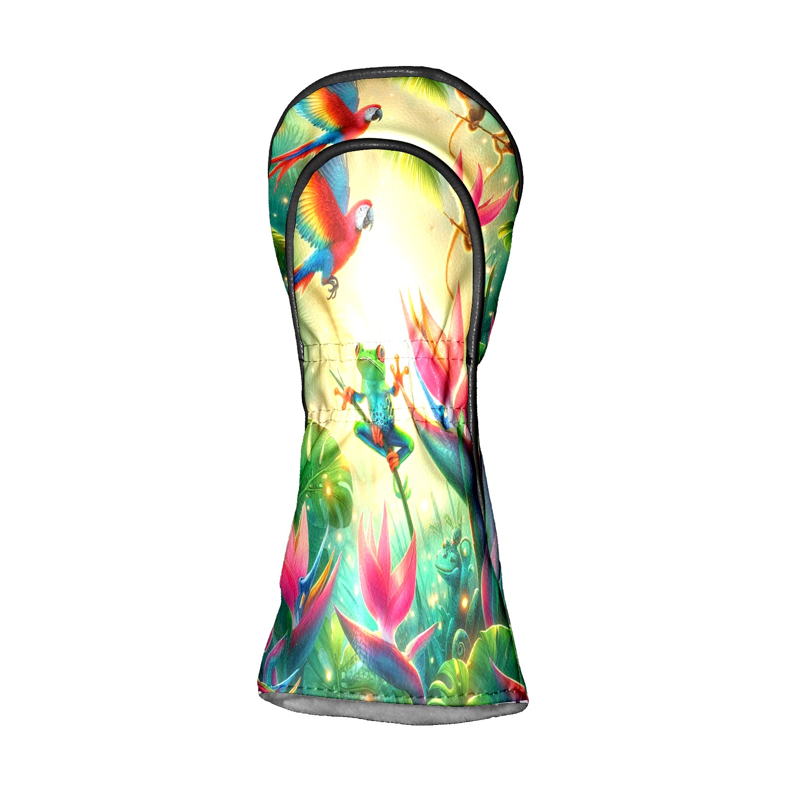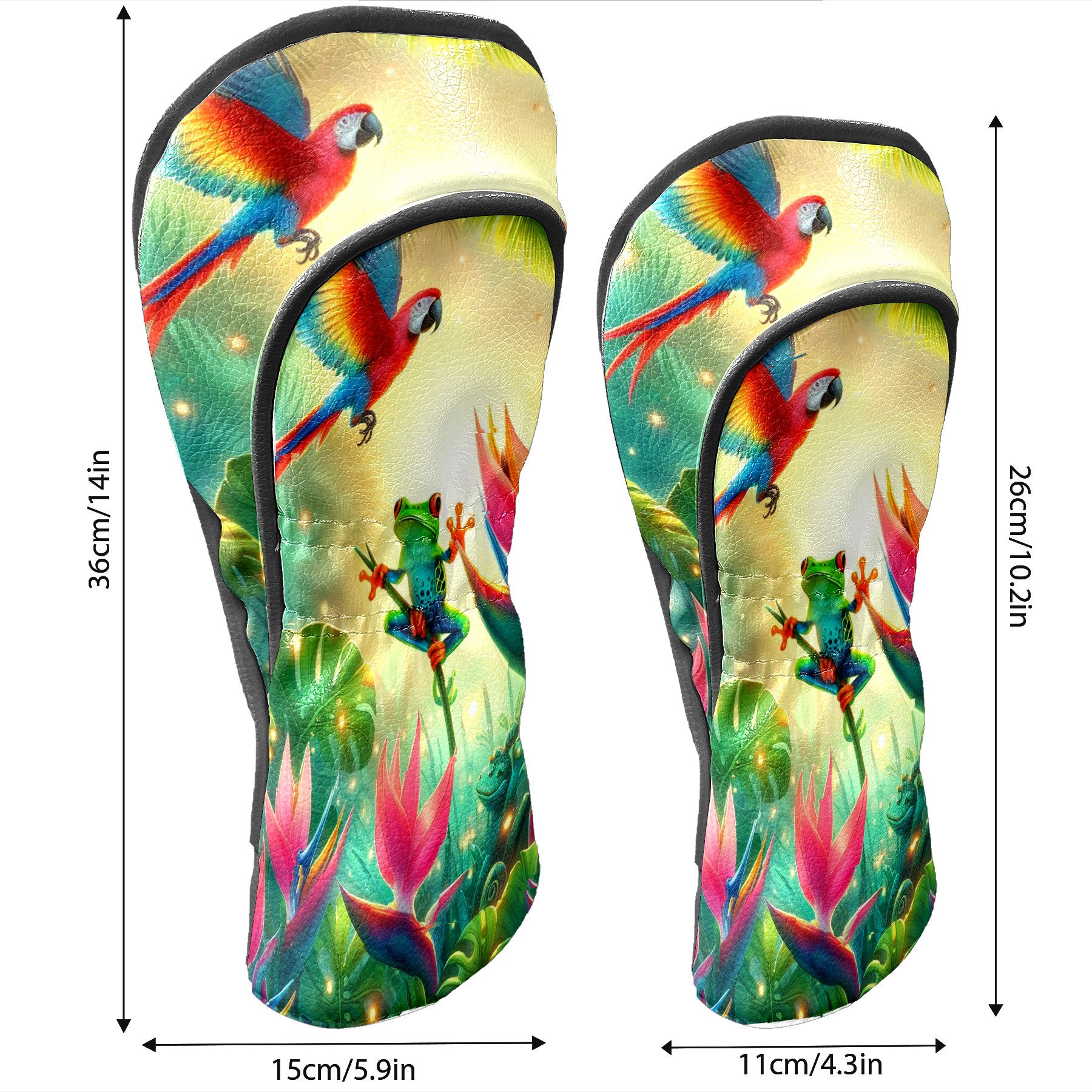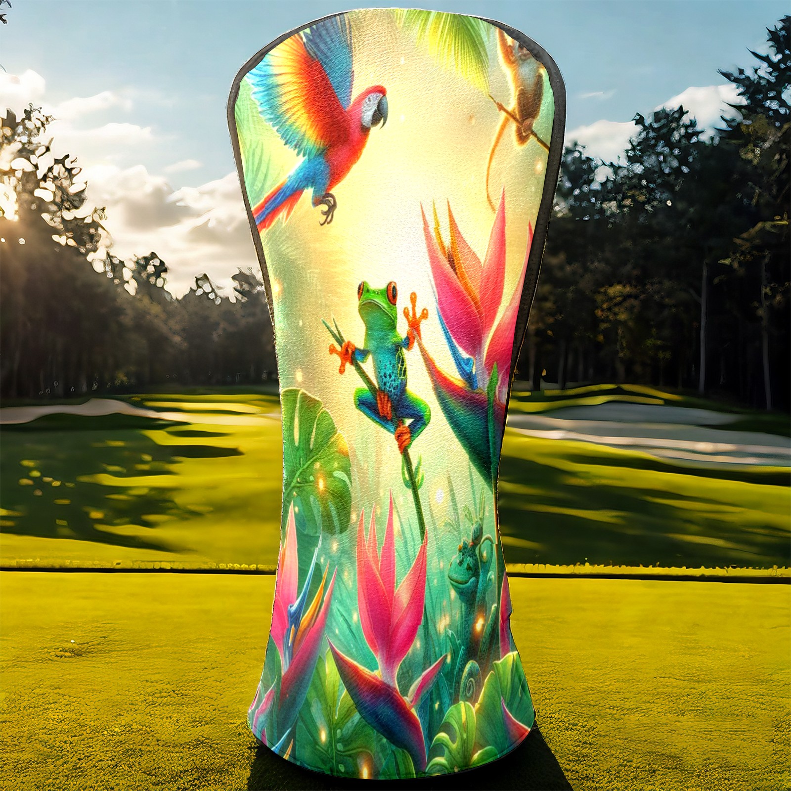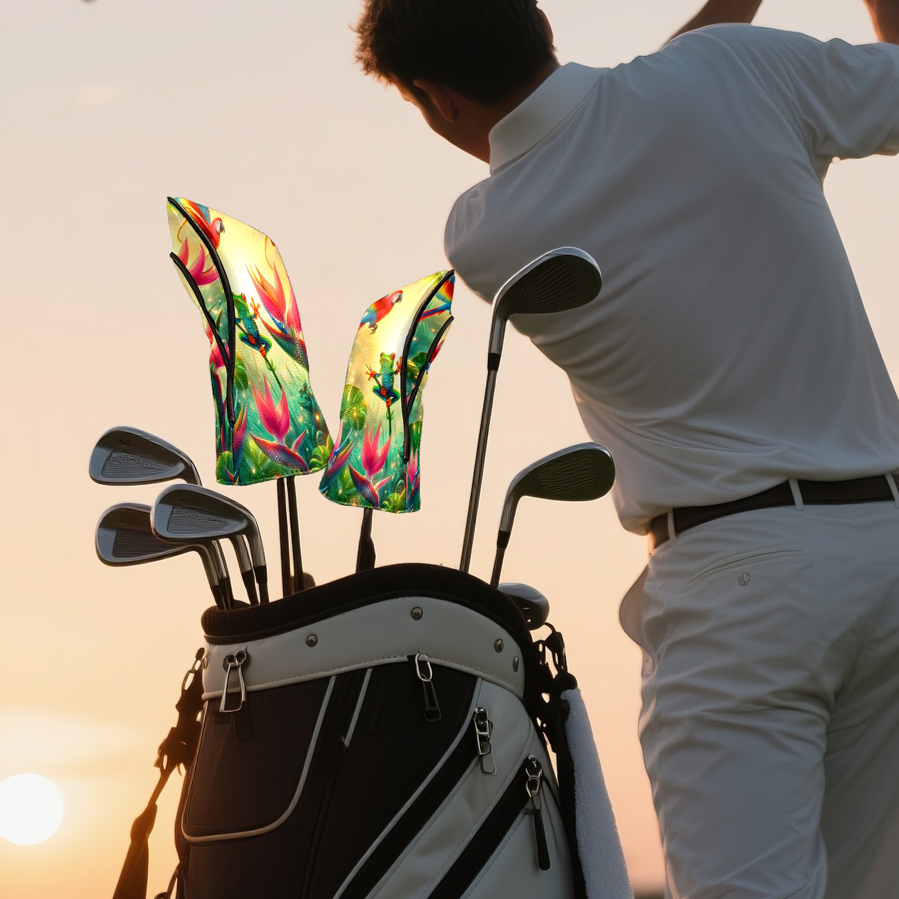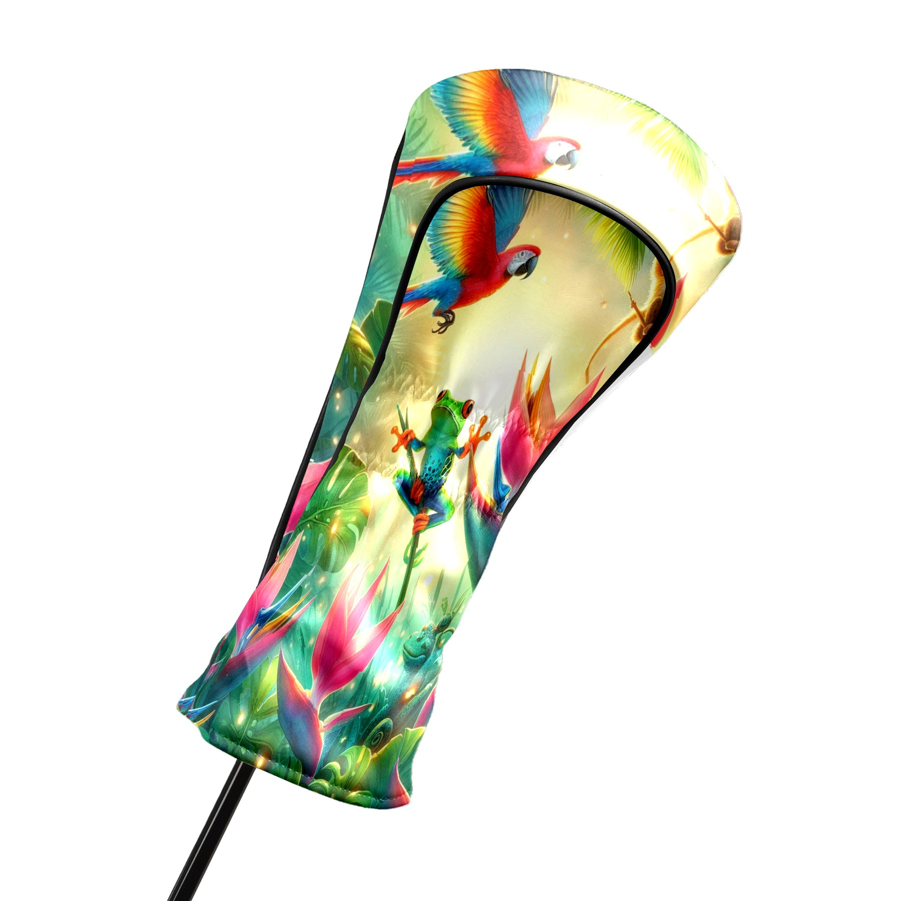 Golf Club Covers, Rainforest Parrot Frog Premium PU Leather Driver Hybrid Putter Head Covers with Velvet Lining, Waterproof Golf Gifts for Men Women
