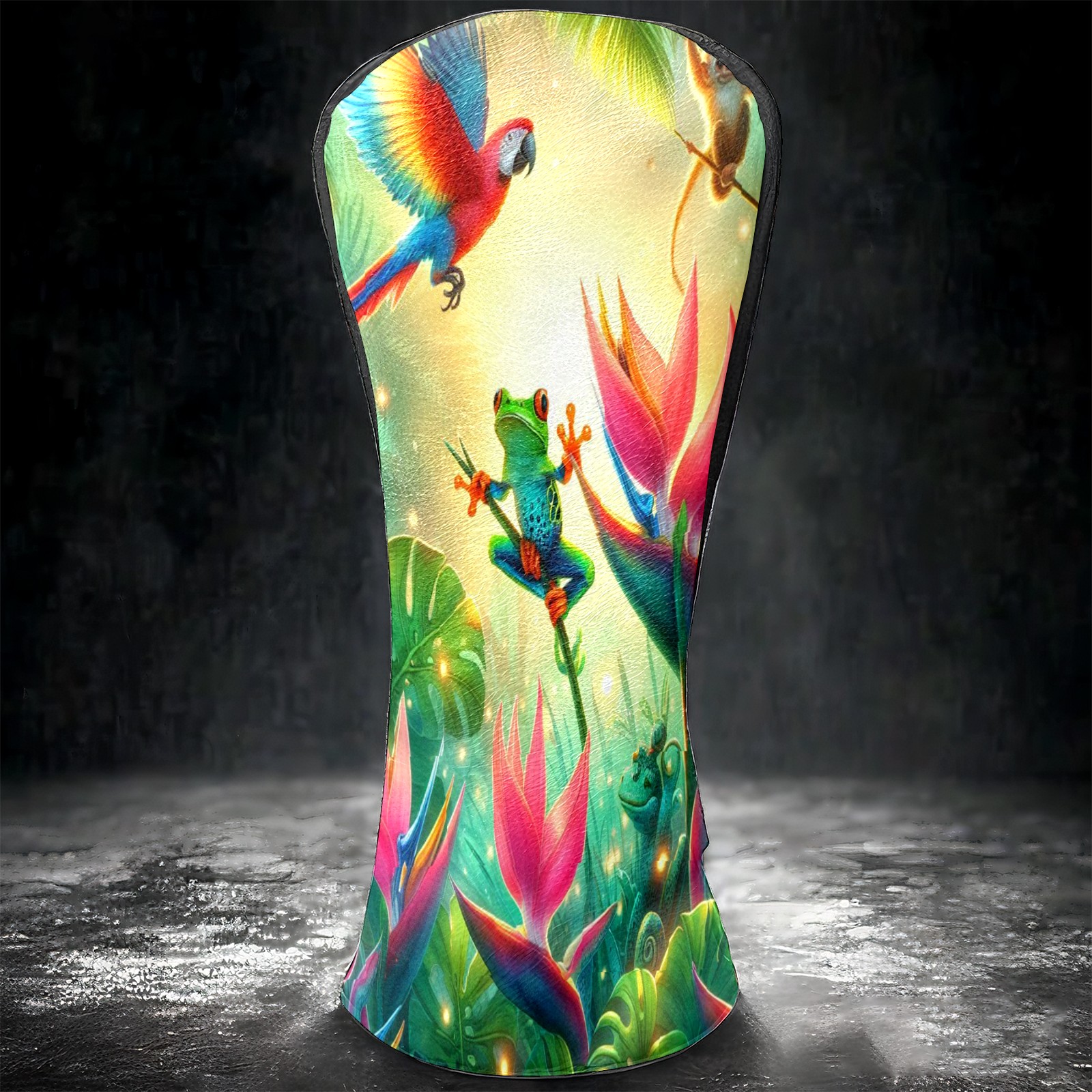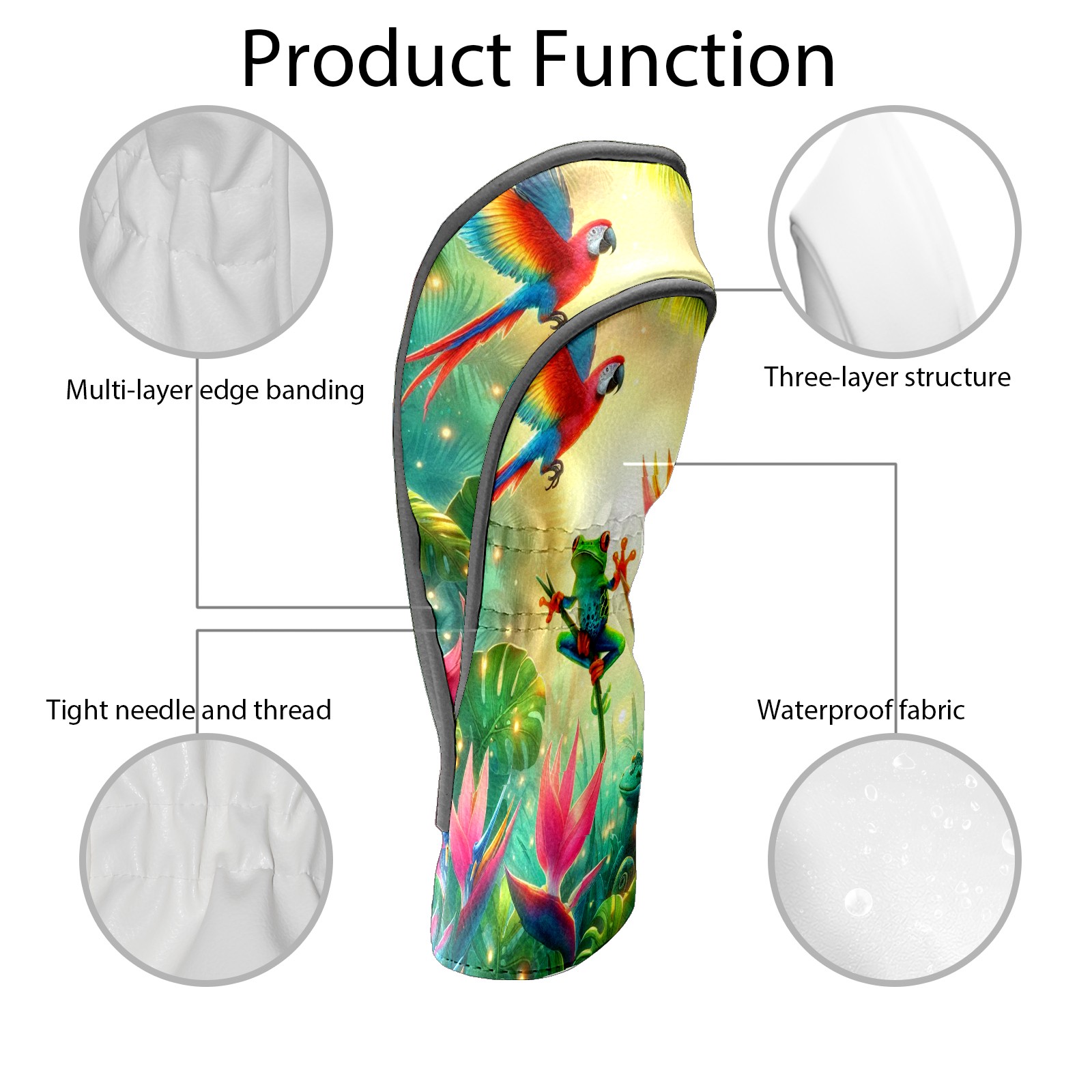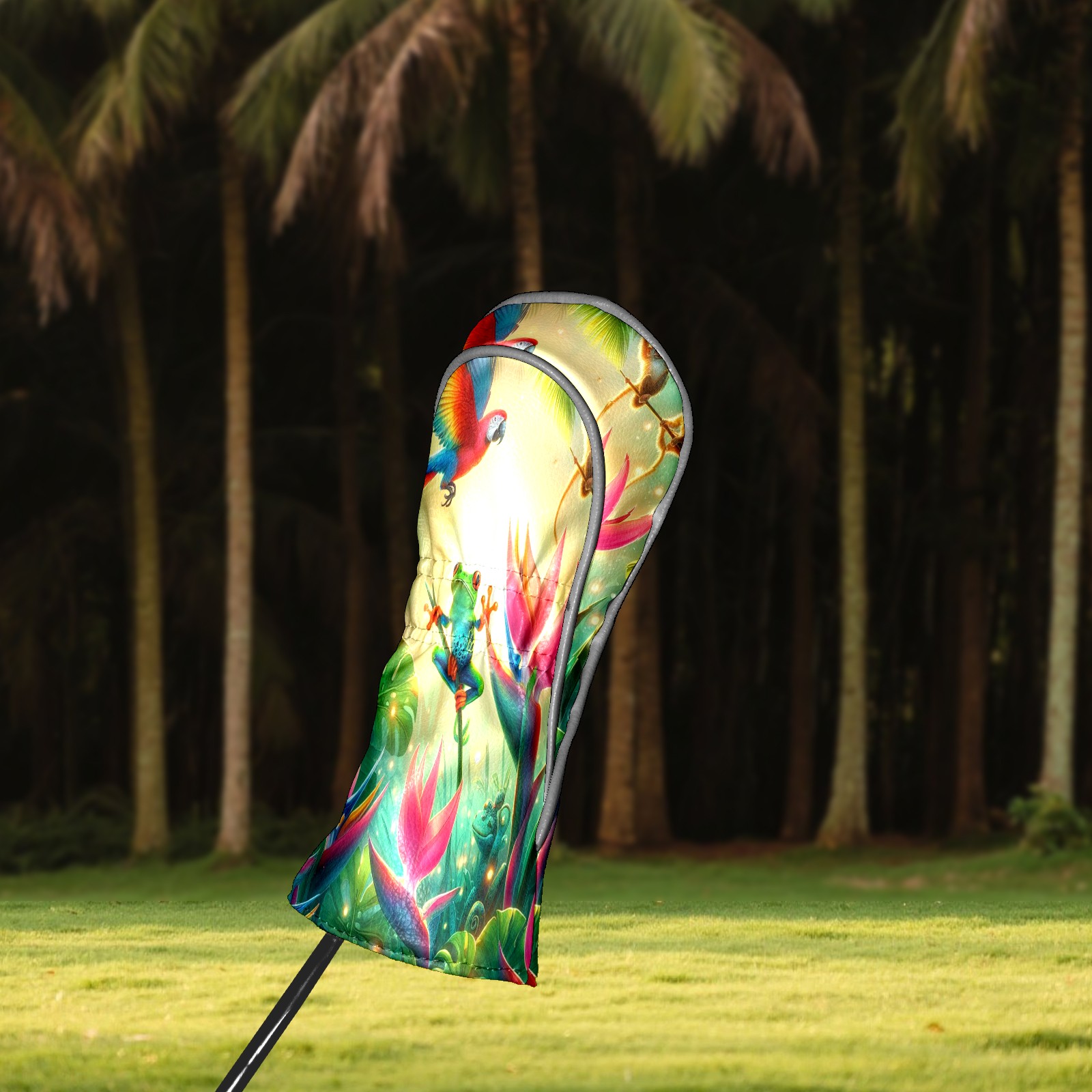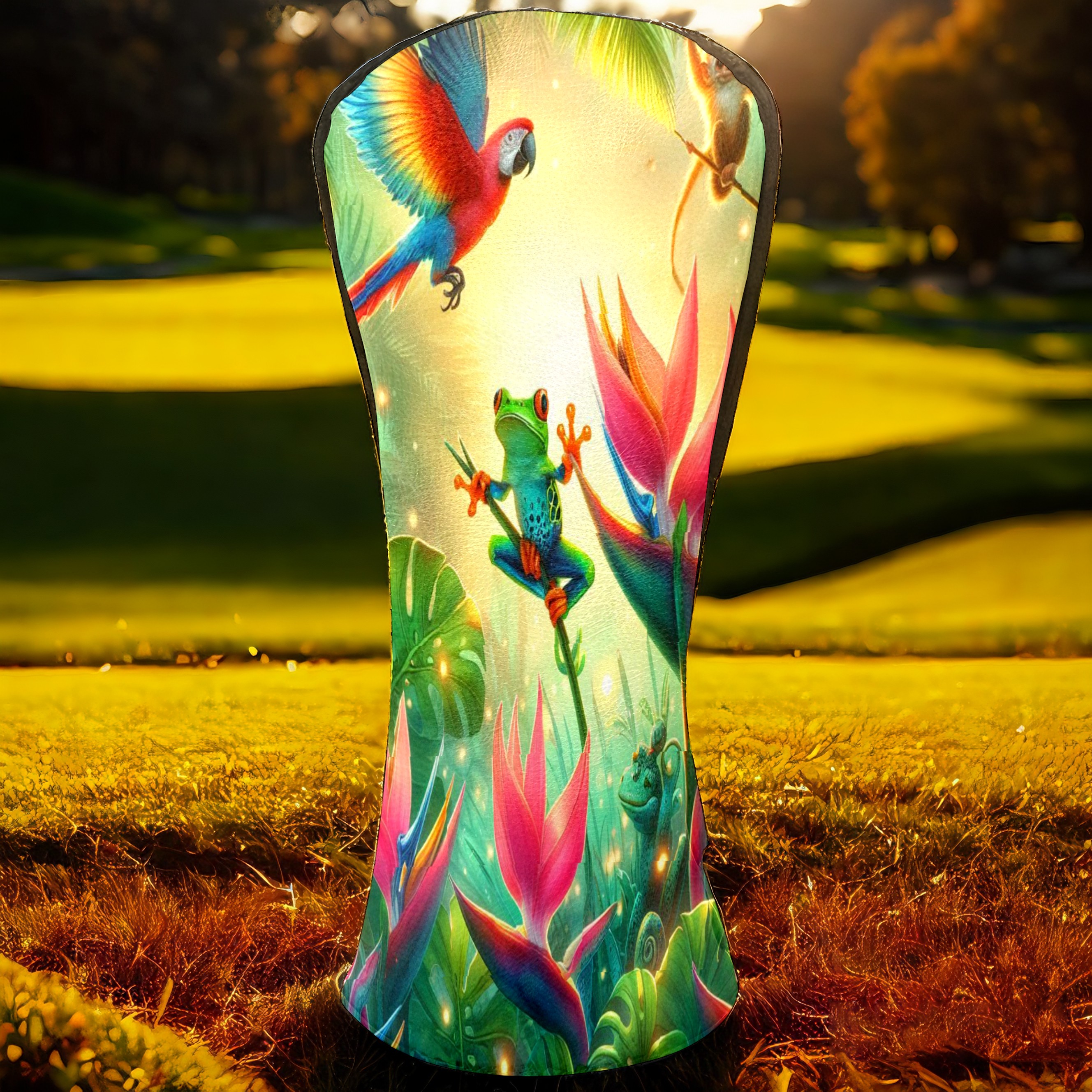 Golf Club Covers, Rainforest Parrot Frog Premium PU Leather Driver Hybrid Putter Head Covers with Velvet Lining, Waterproof Golf Gifts for Men Women