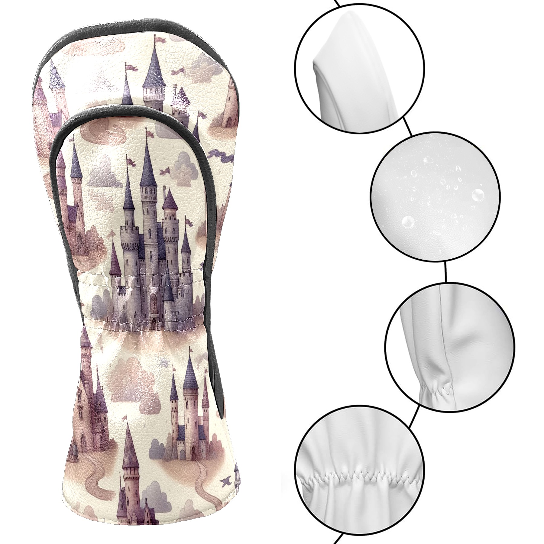 Golf Club Covers, Gray Castle Premium PU Leather Driver Hybrid Putter Head Covers with Velvet Lining, Waterproof Golf Gifts for Men Women