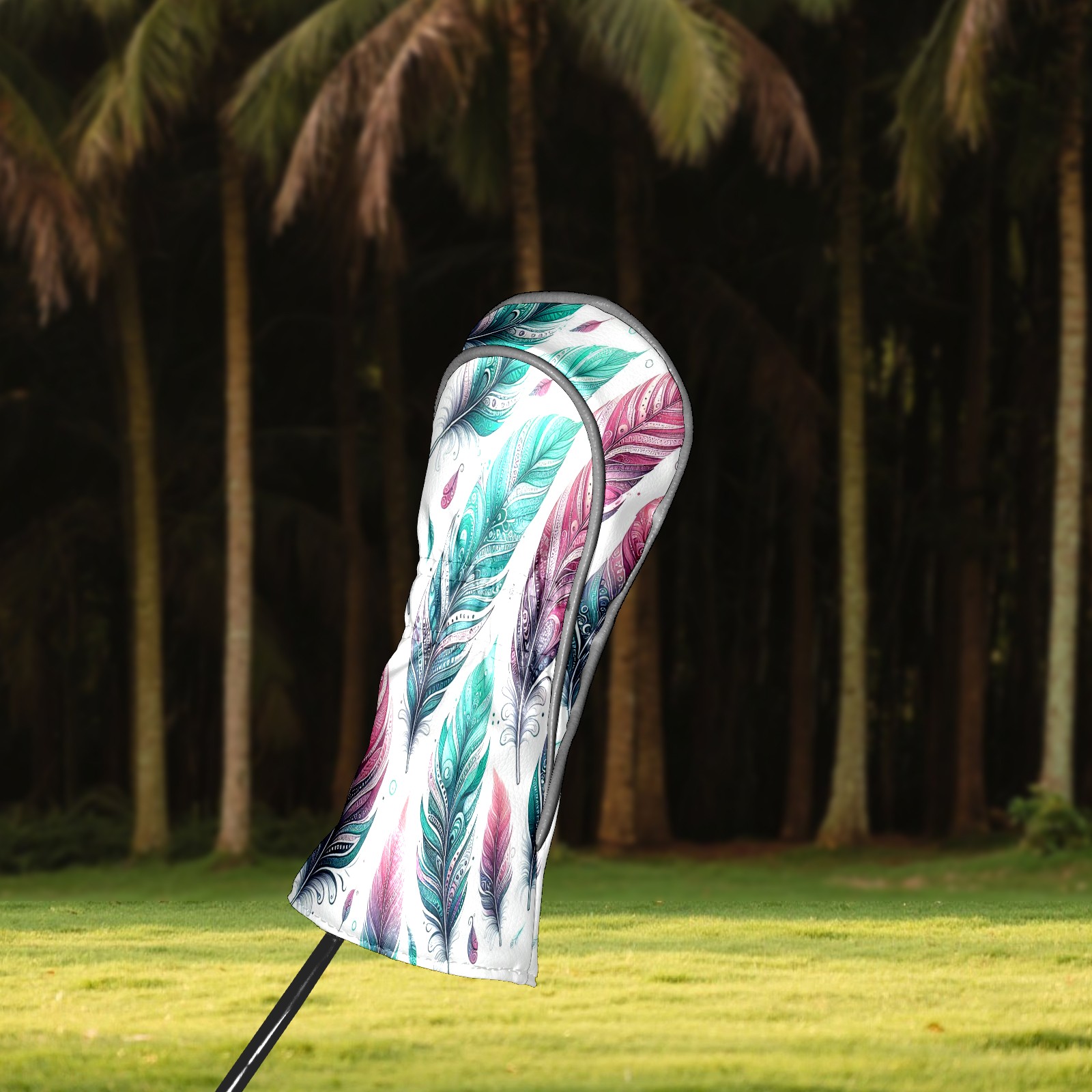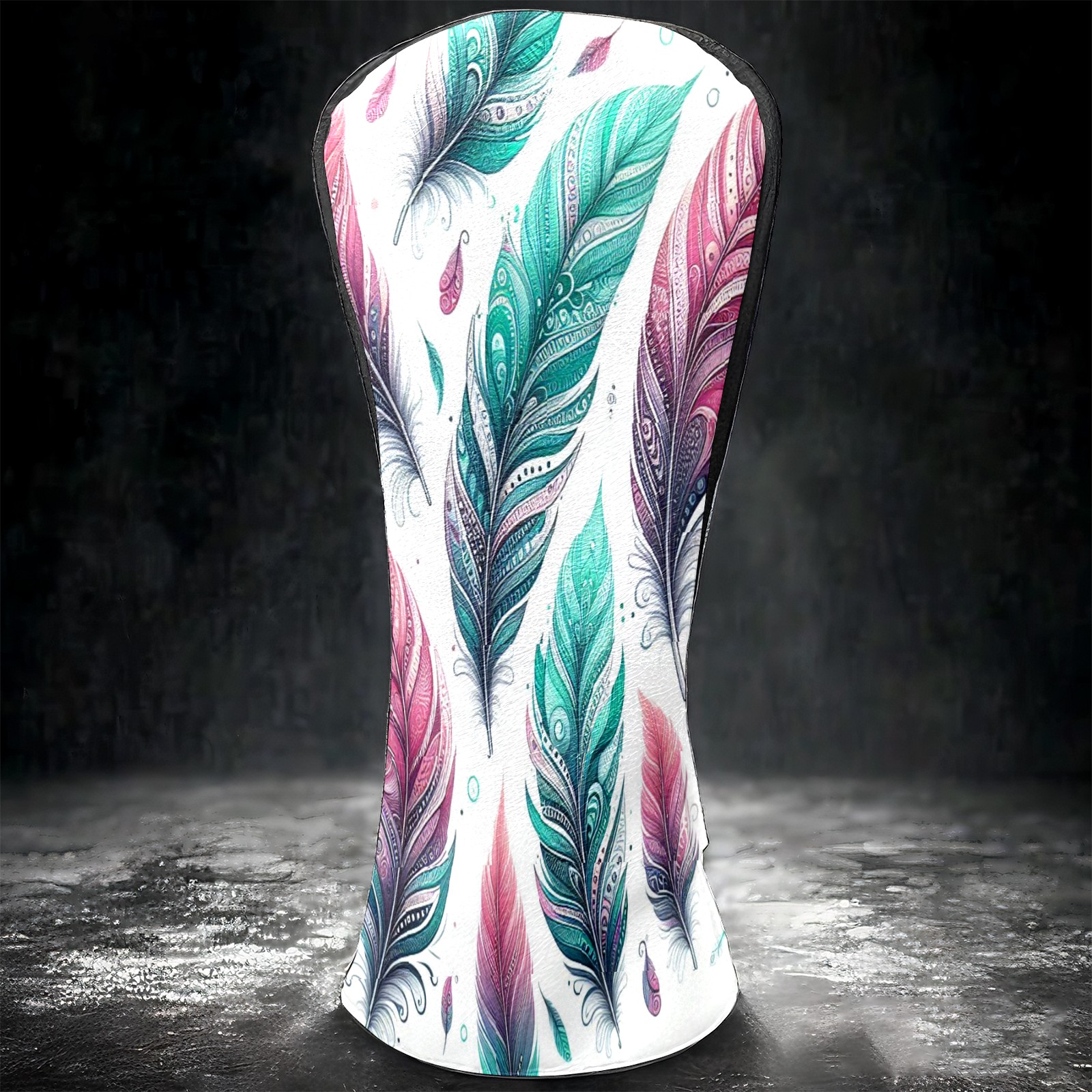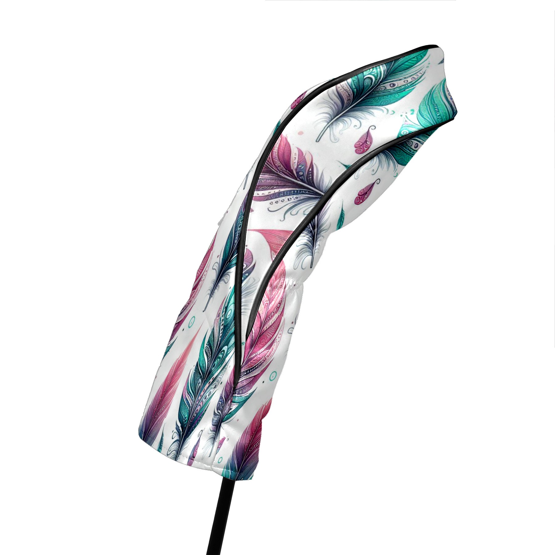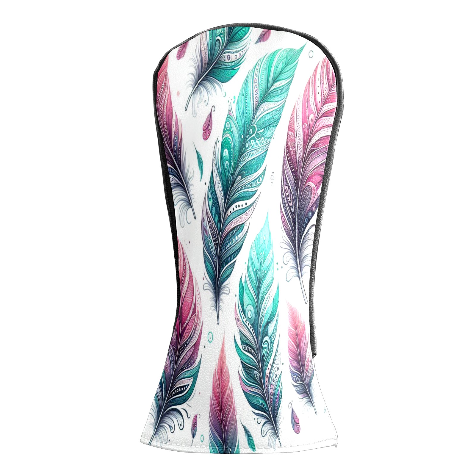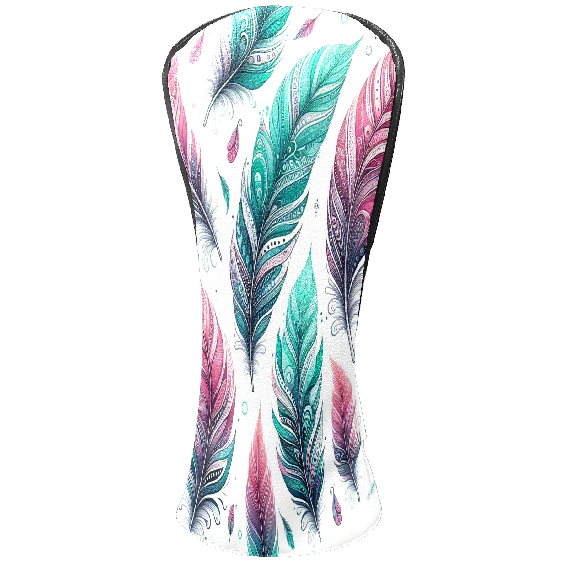 Golf Club Covers, Green Blue Feathers Premium PU Leather Driver Hybrid Putter Head Covers with Velvet Lining, Waterproof Golf Gifts for Men Women