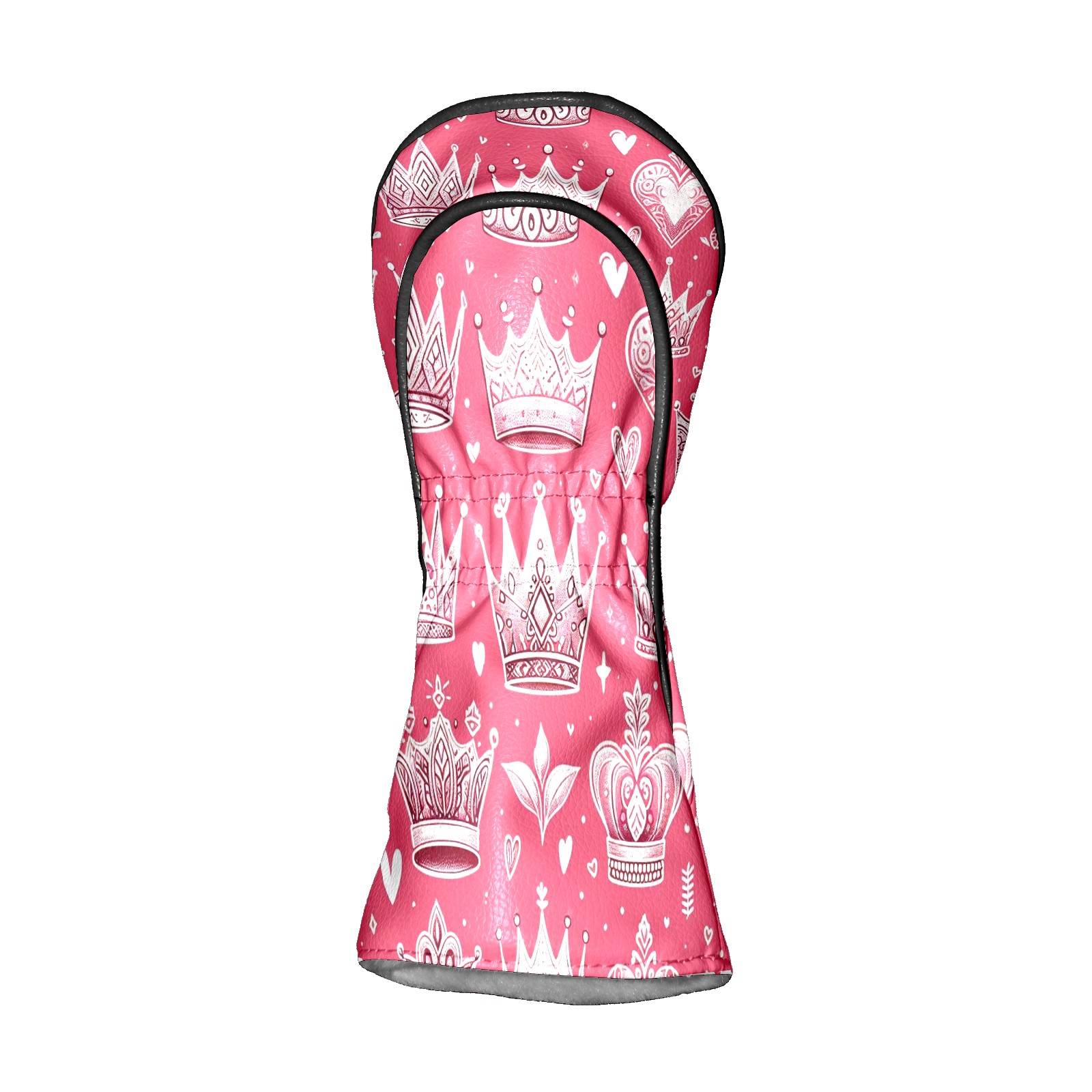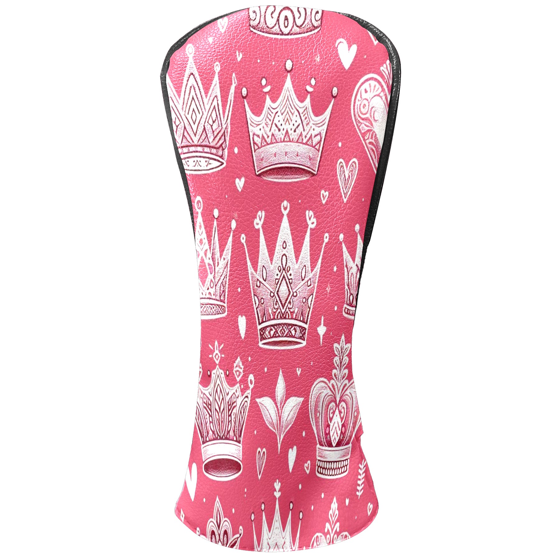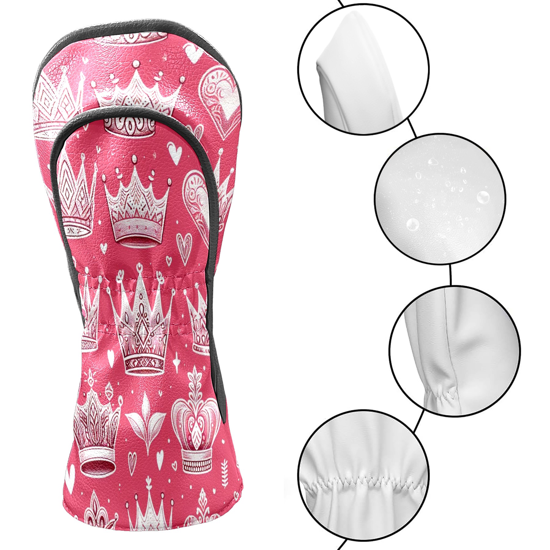 Golf Club Covers, Pink Crown Heart Premium PU Leather Driver Hybrid Putter Head Covers with Velvet Lining, Waterproof Golf Gifts for Men Women