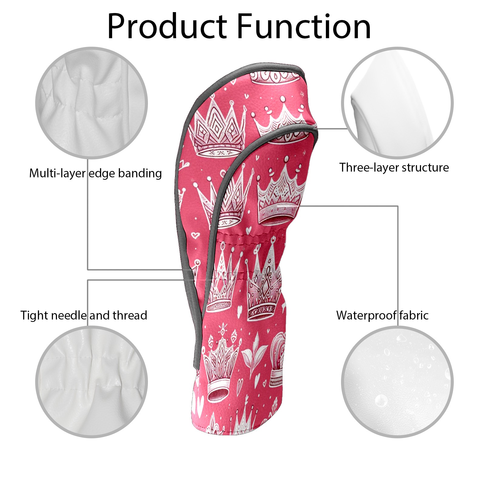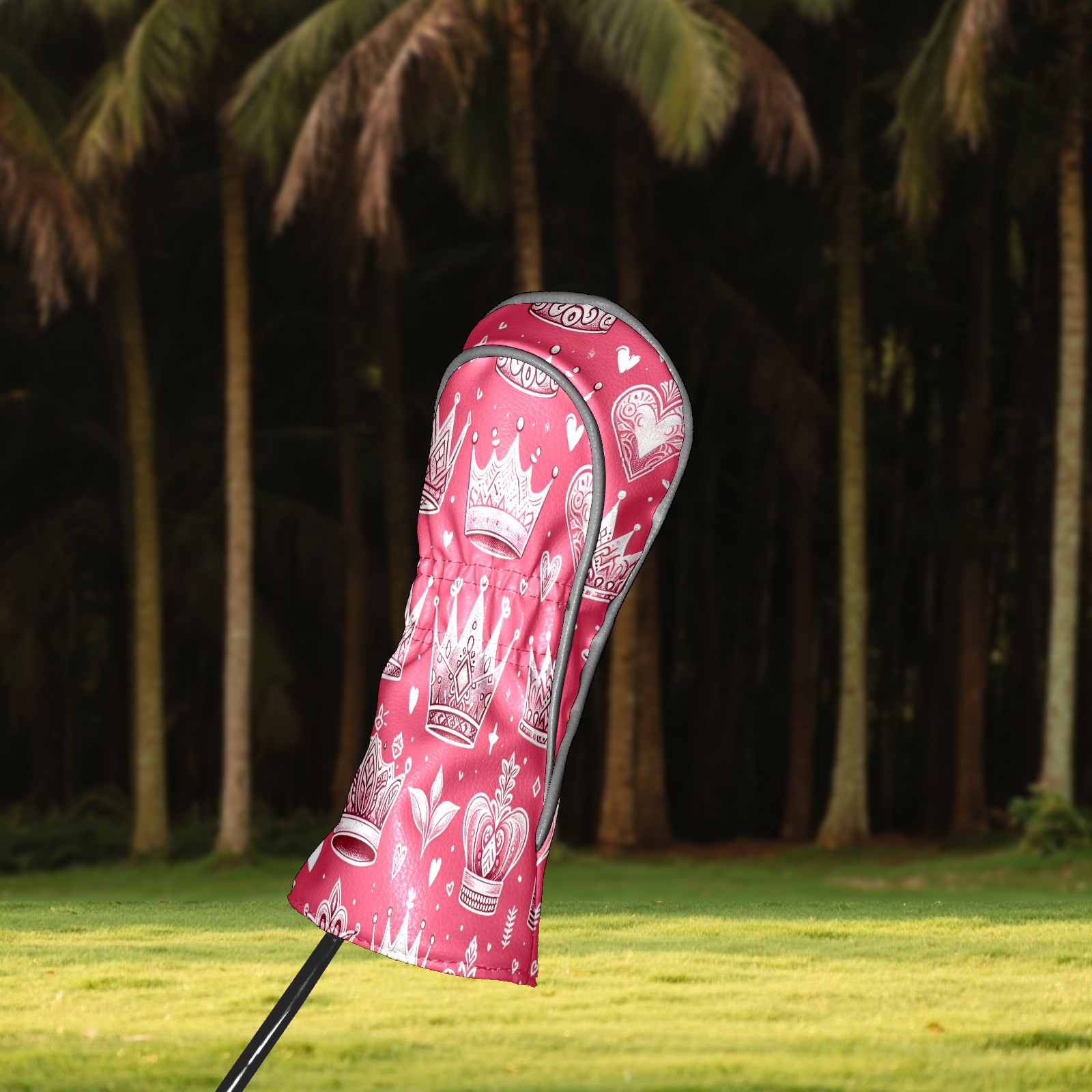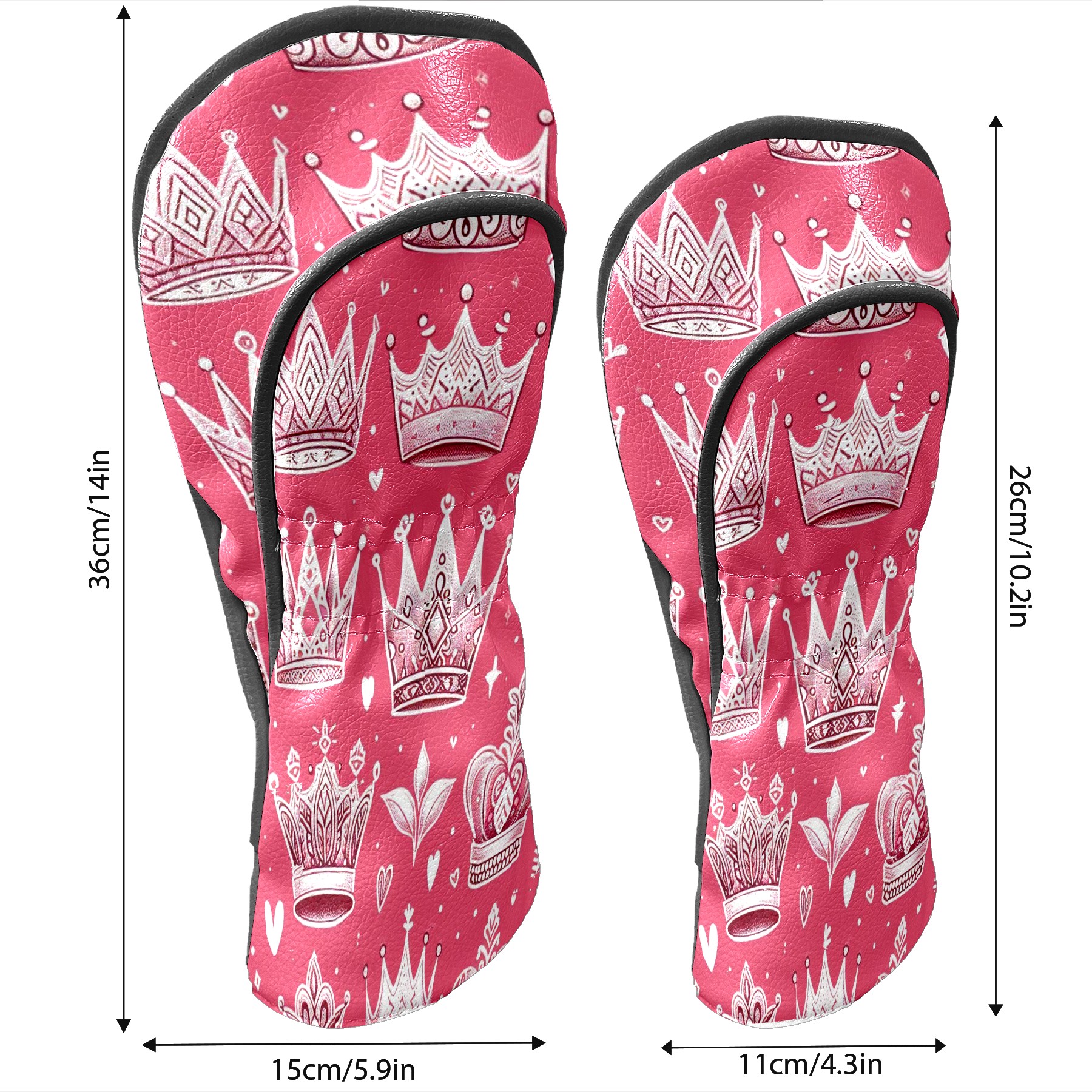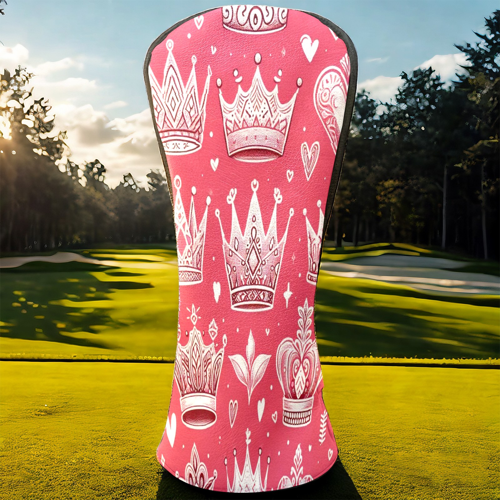 Golf Club Covers, Pink Crown Heart Premium PU Leather Driver Hybrid Putter Head Covers with Velvet Lining, Waterproof Golf Gifts for Men Women