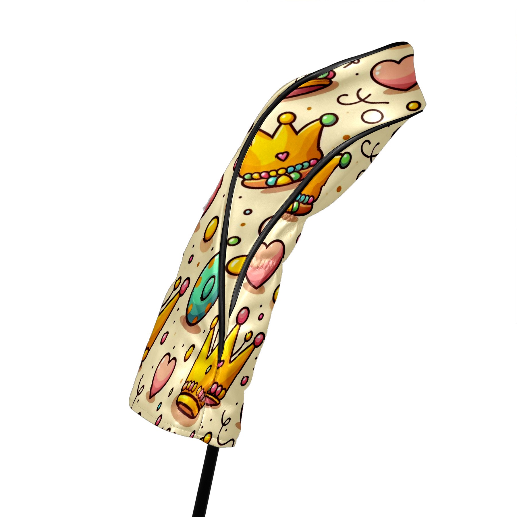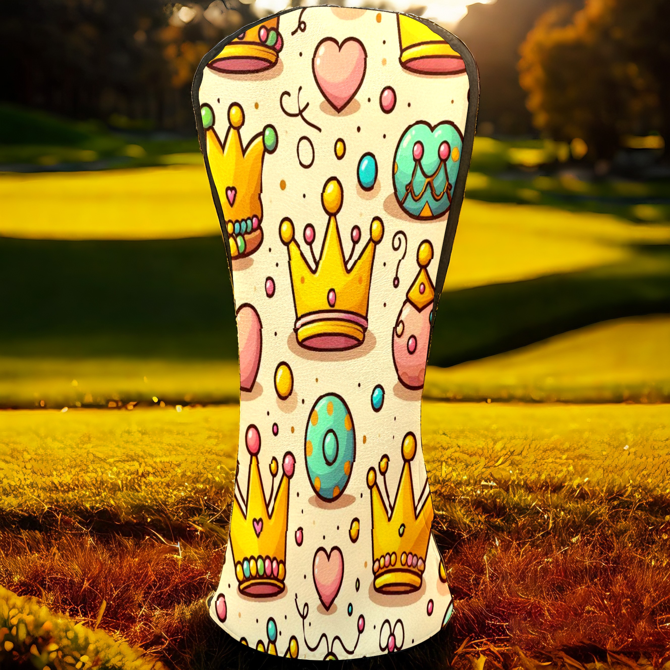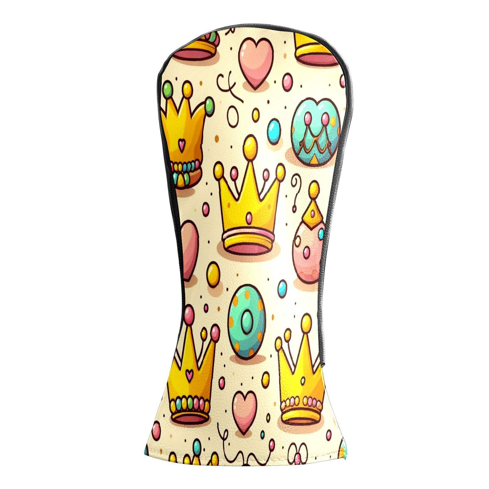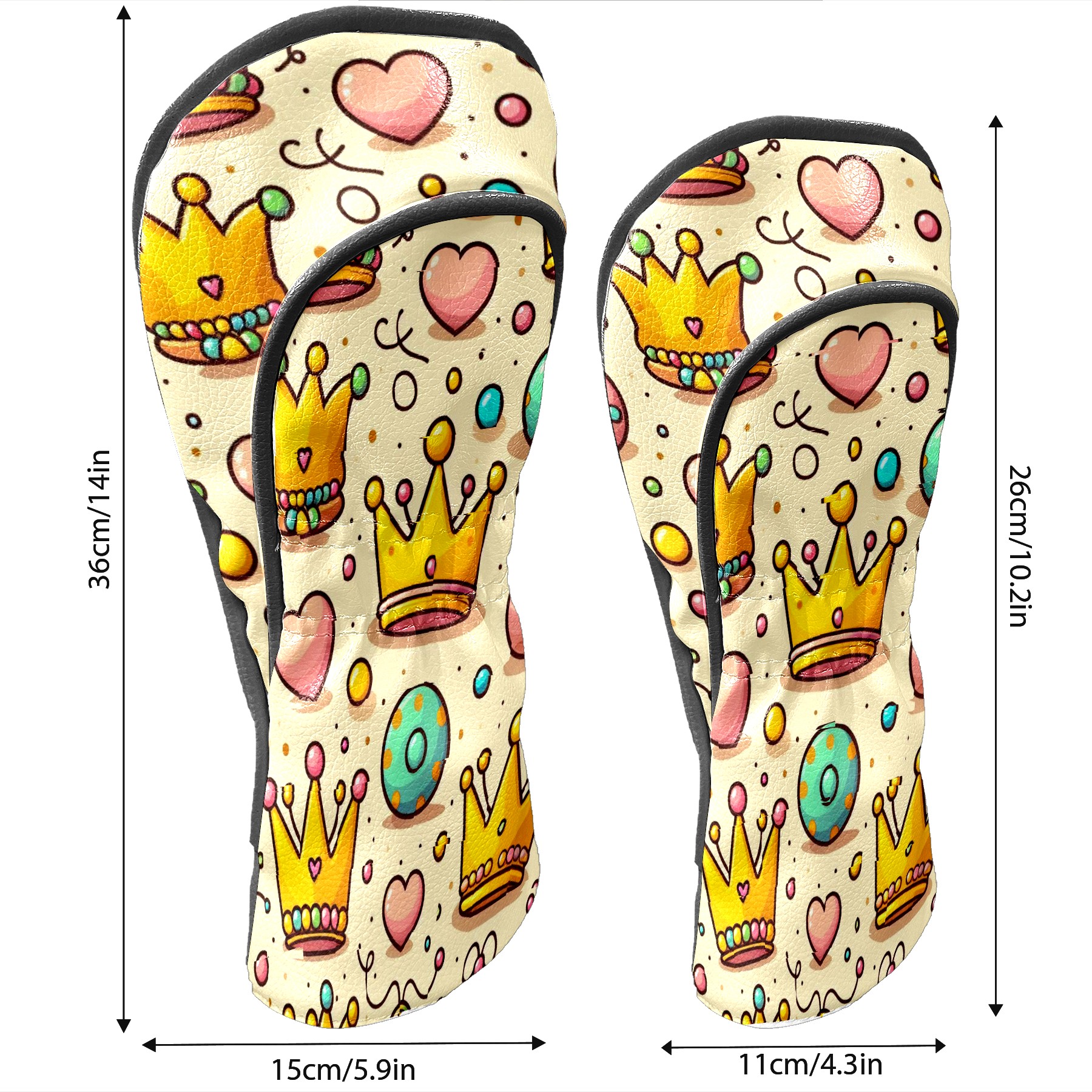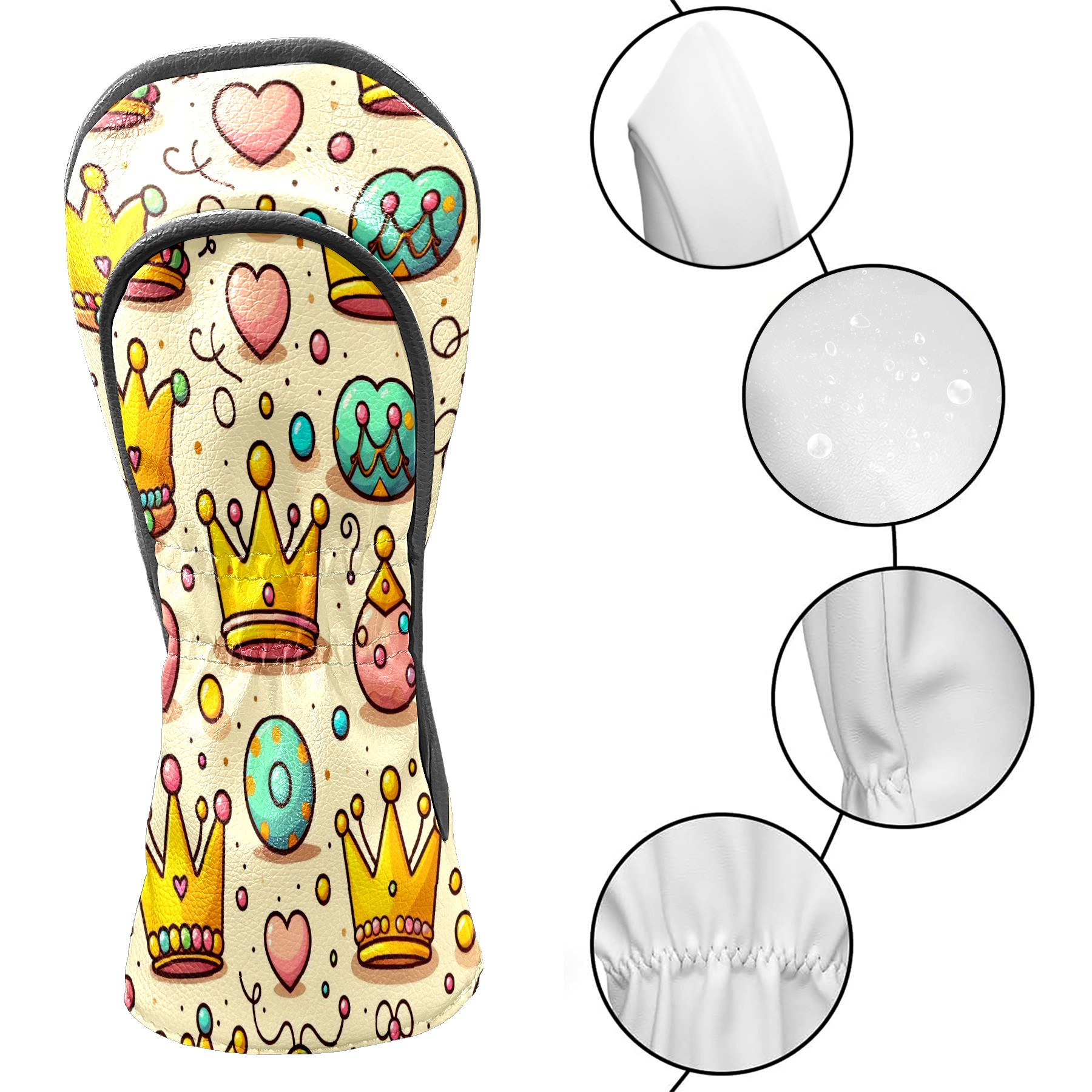 Golf Club Covers, Yellow Crowns Premium PU Leather Driver Hybrid Putter Head Covers with Velvet Lining, Waterproof Golf Gifts for Men Women