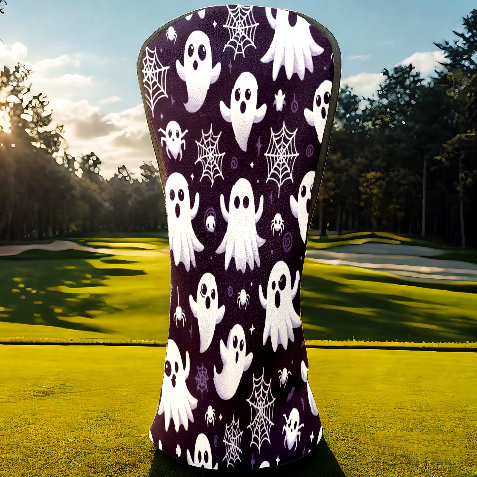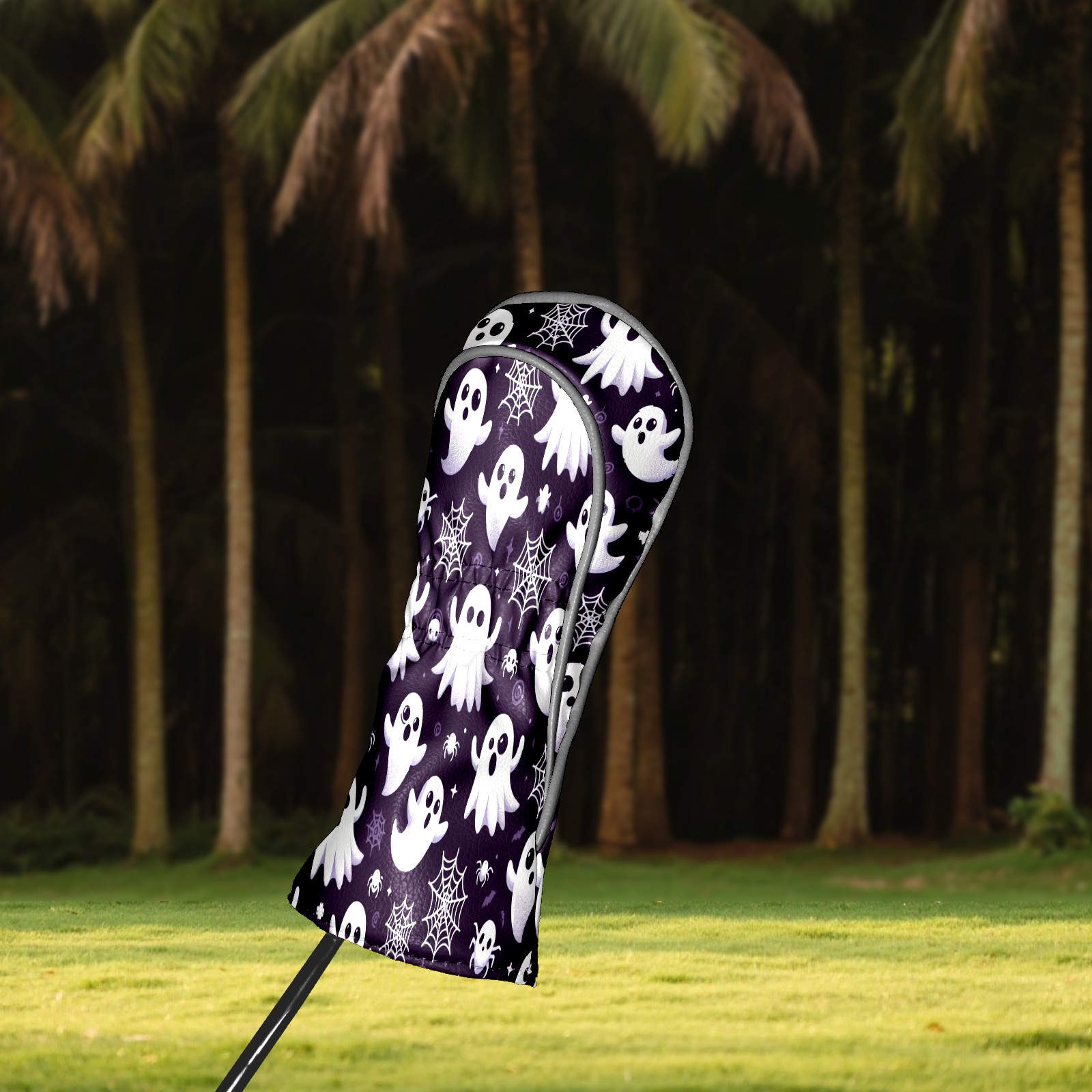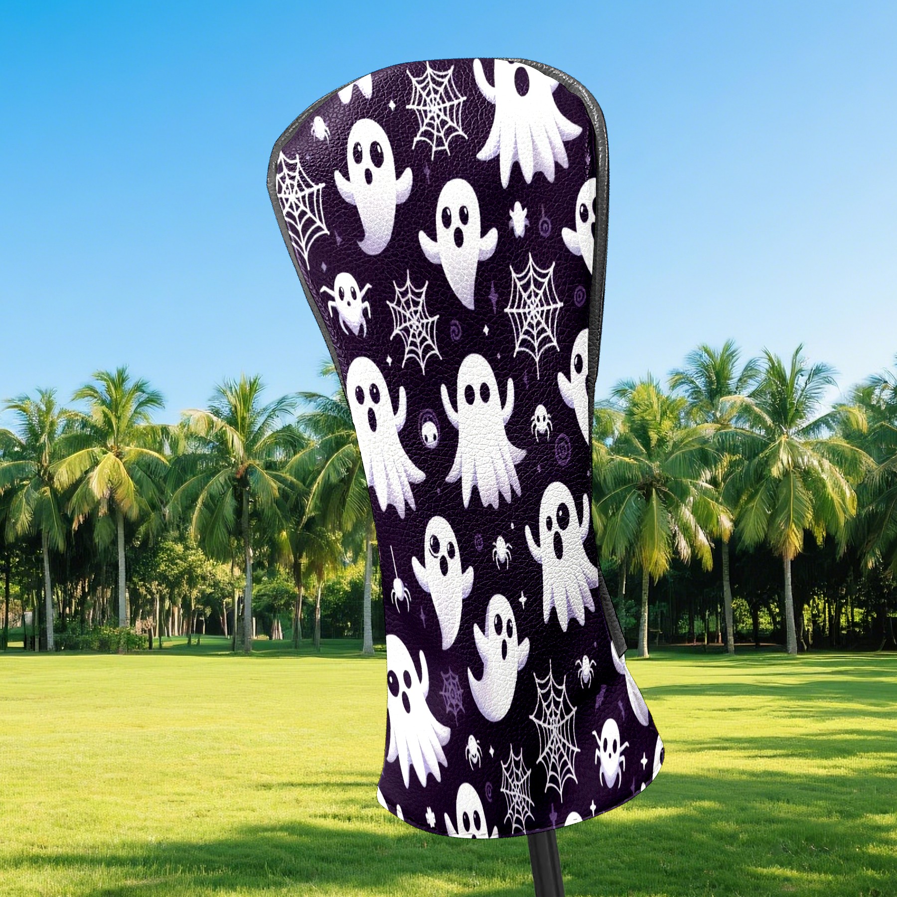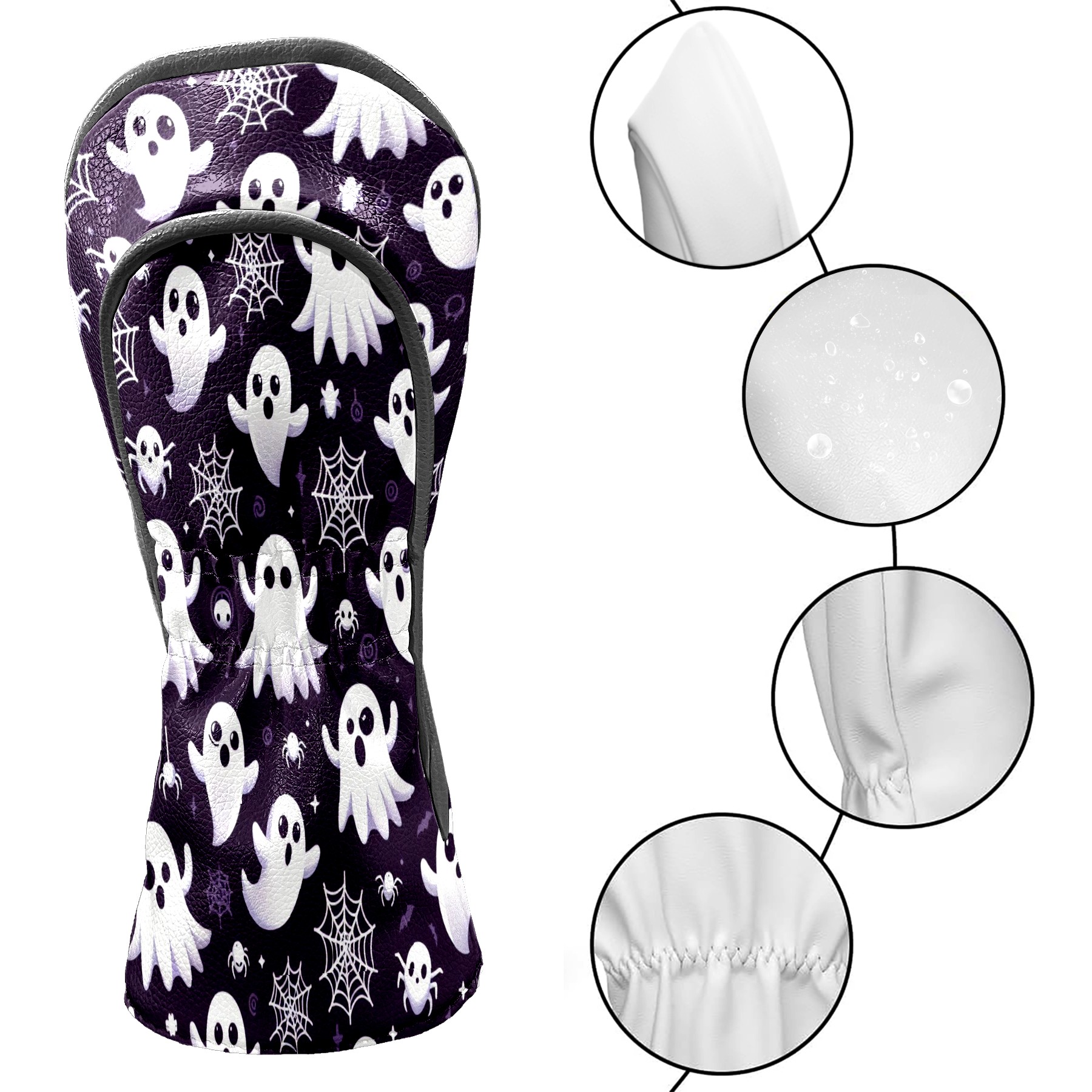 Golf Club Covers, DarkPurple Ghost Snowflake Premium PU Leather Driver Hybrid Putter Head Covers with Velvet Lining, Waterproof Golf Gifts for Men Women