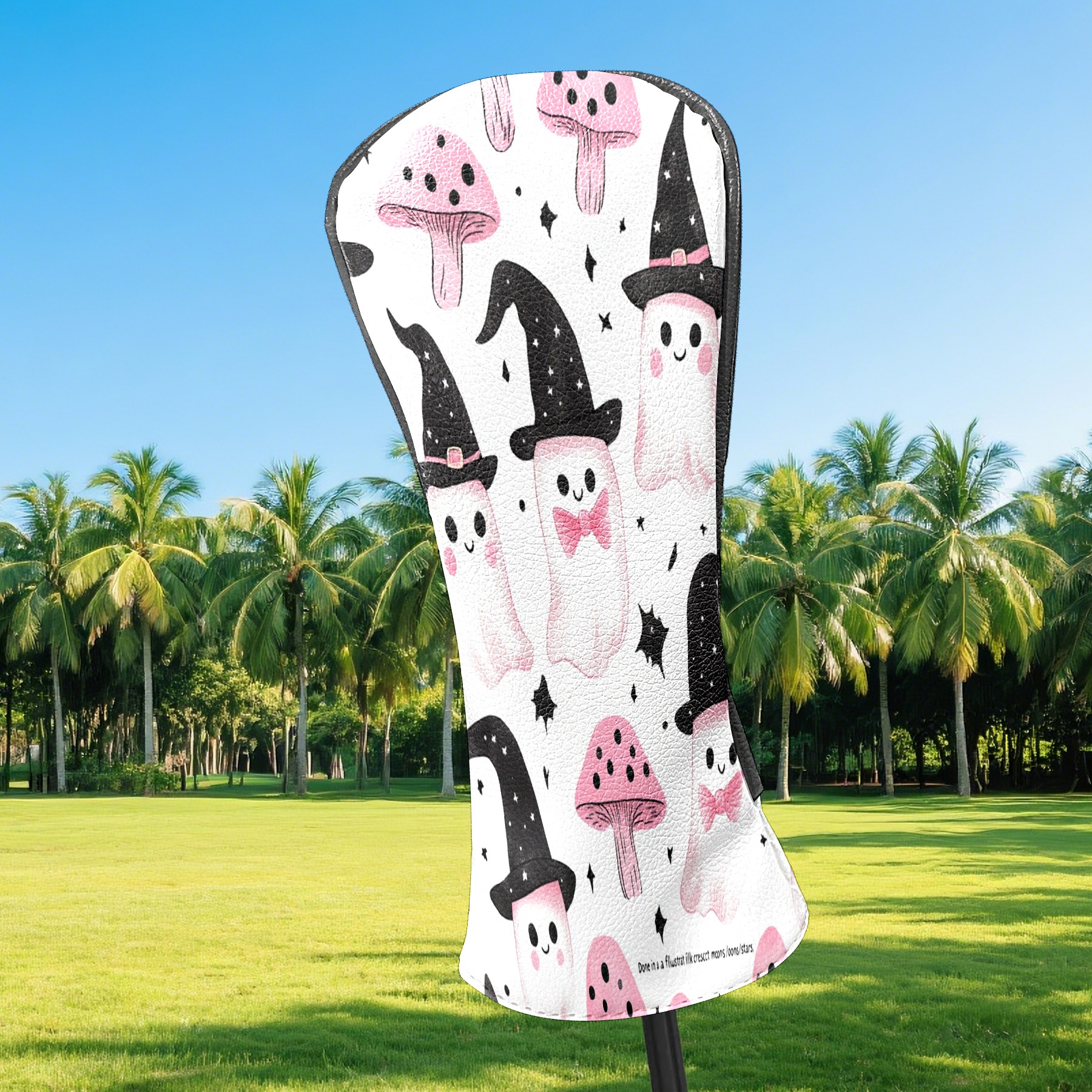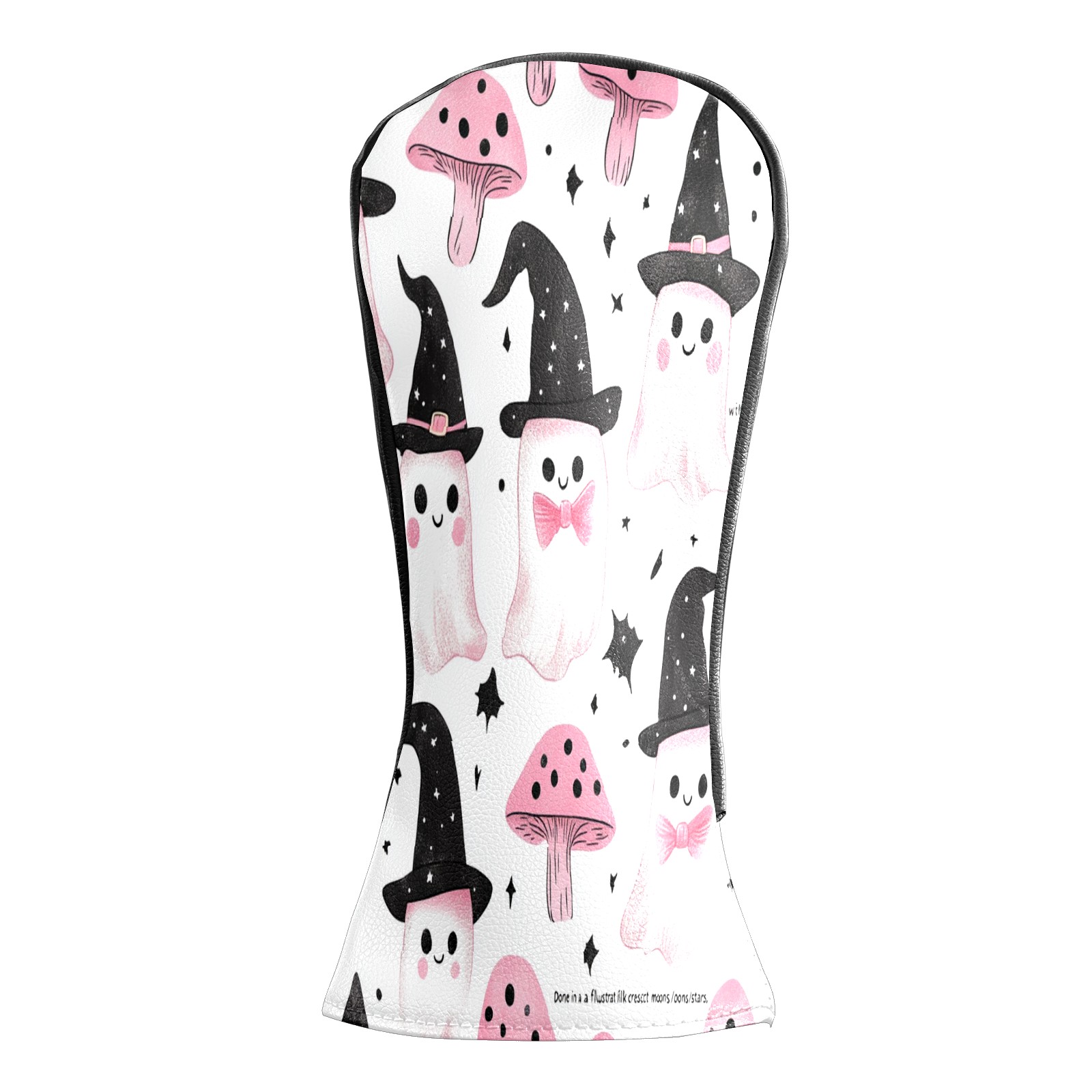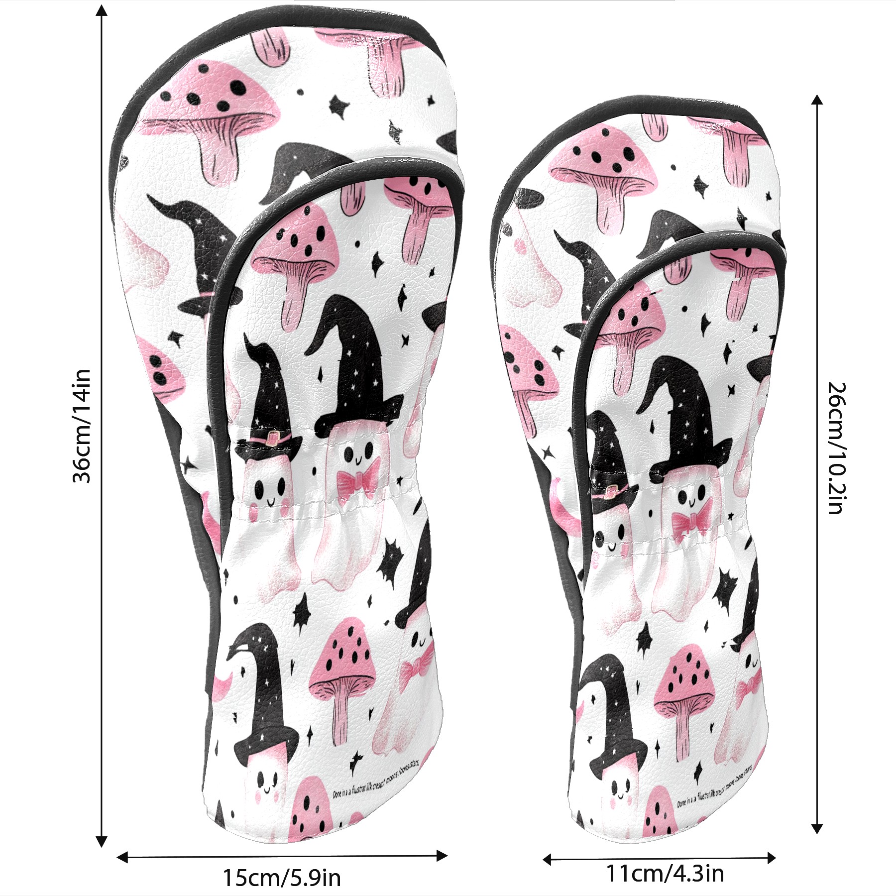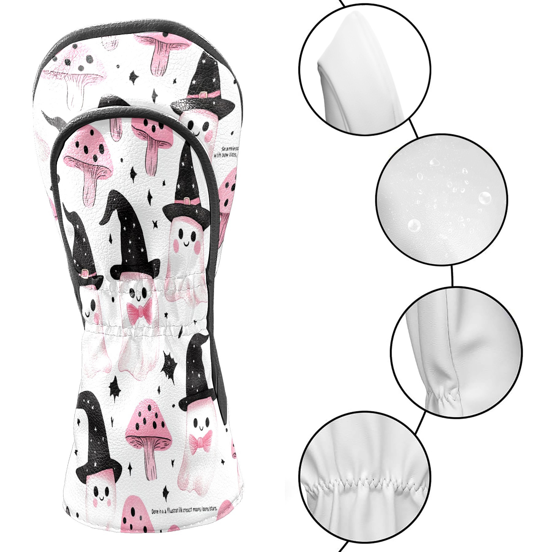 Golf Club Covers, LightPink MushroomGhost Premium PU Leather Driver Hybrid Putter Head Covers with Velvet Lining, Waterproof Golf Gifts for Men Women