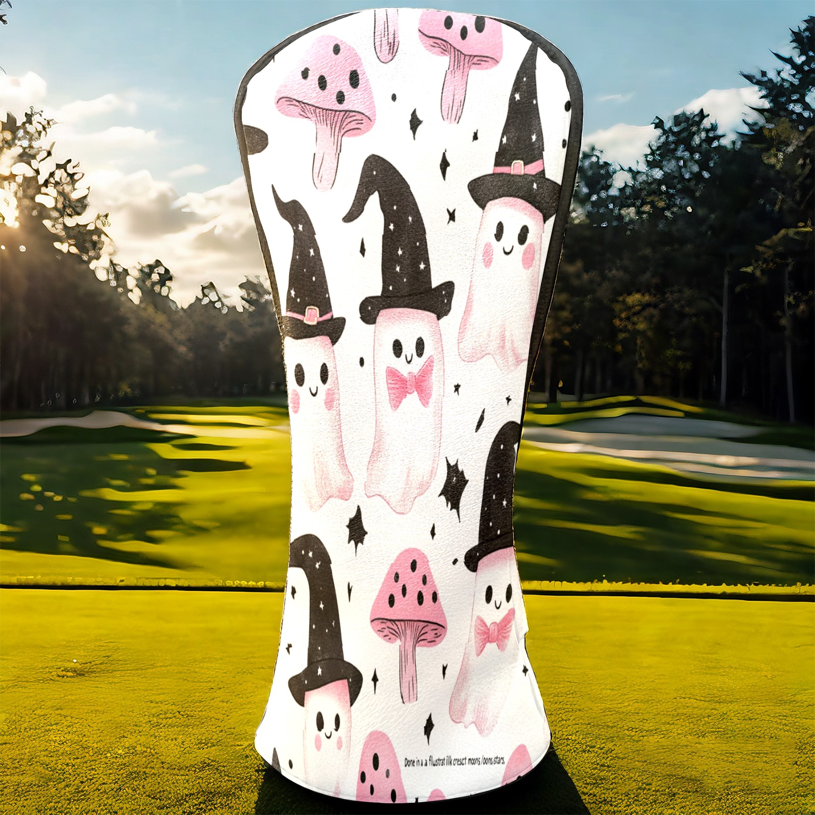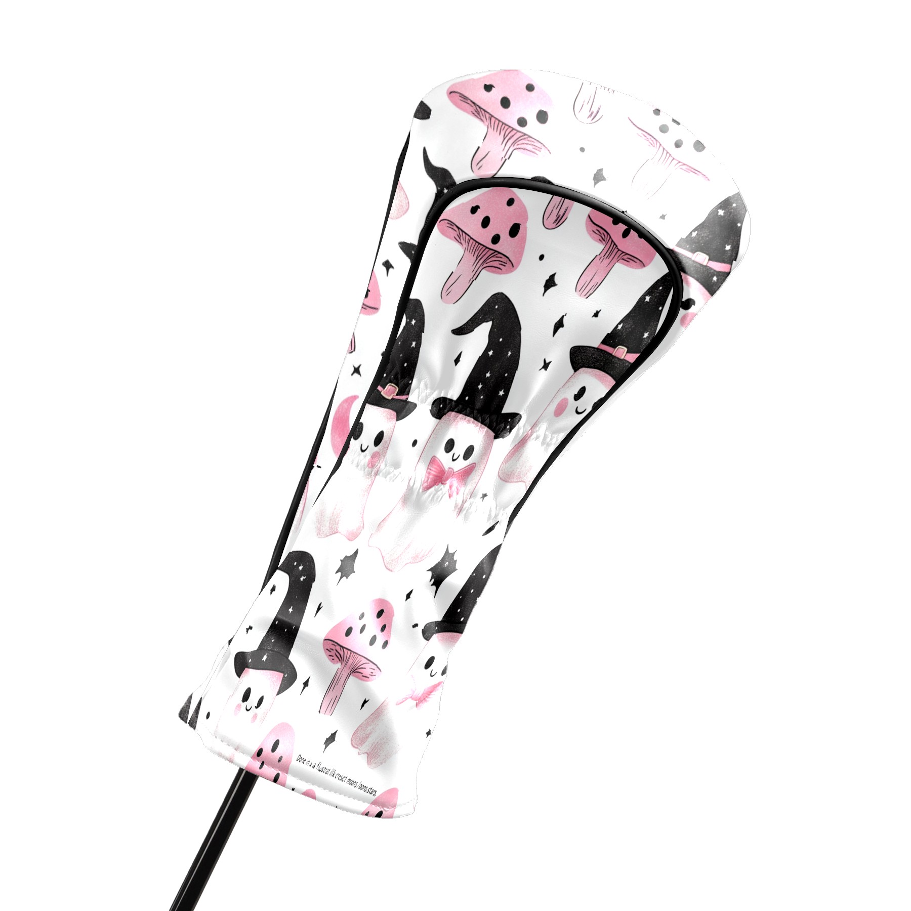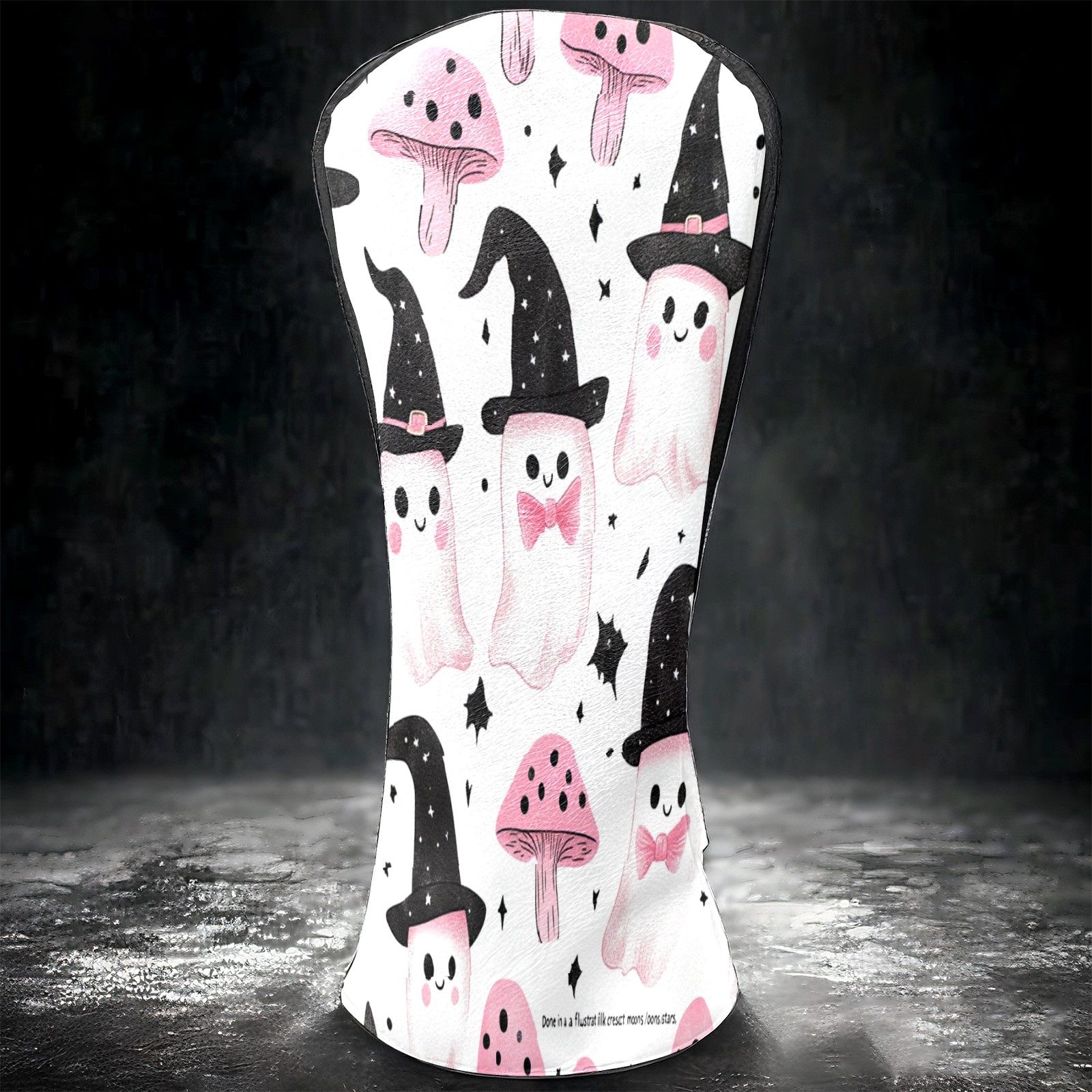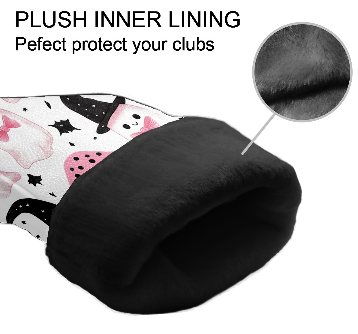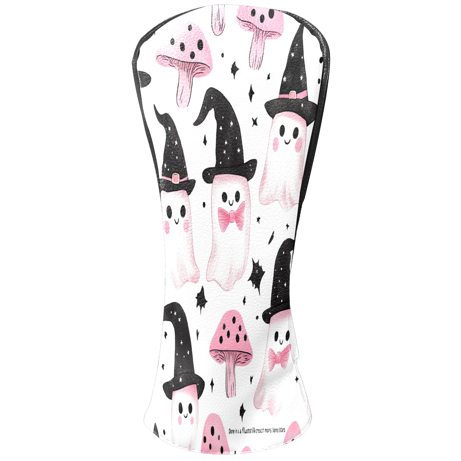 Golf Club Covers, LightPink MushroomGhost Premium PU Leather Driver Hybrid Putter Head Covers with Velvet Lining, Waterproof Golf Gifts for Men Women