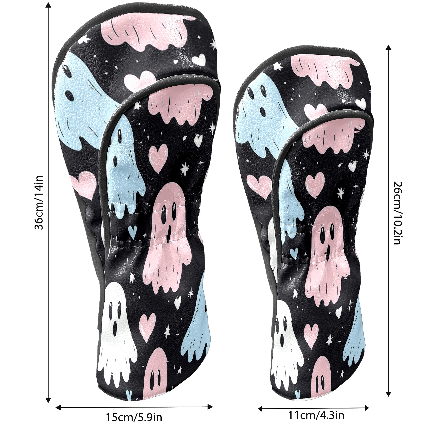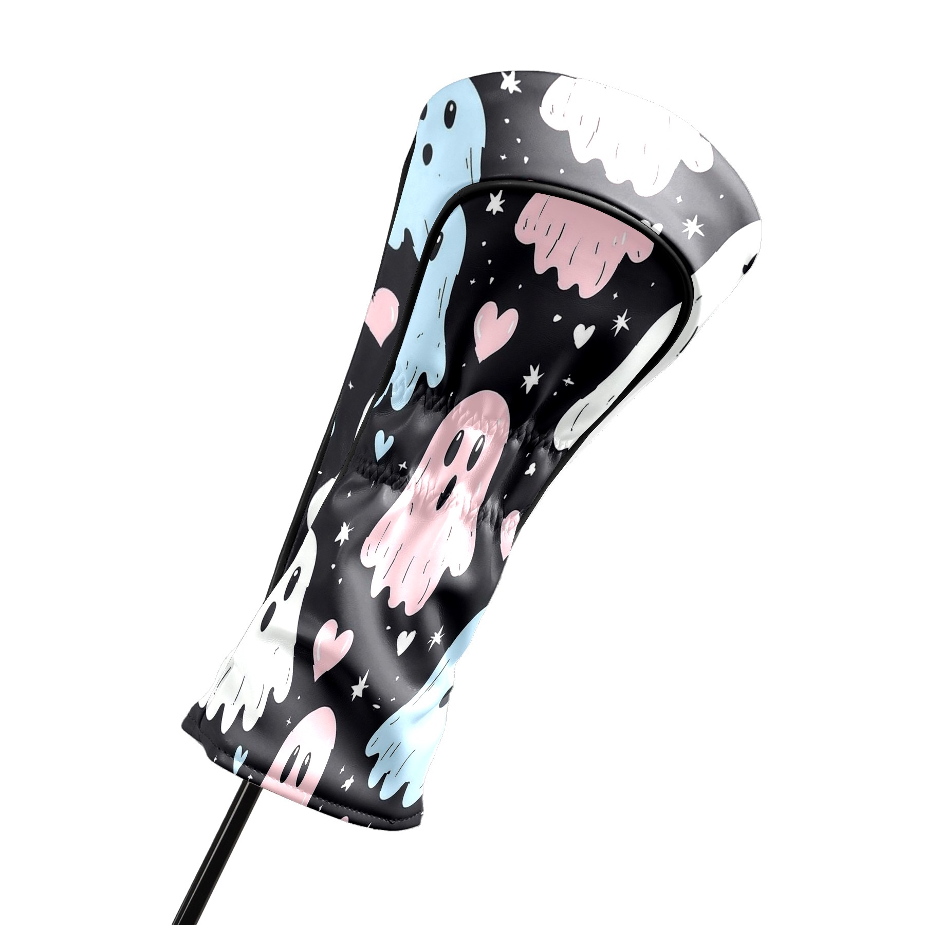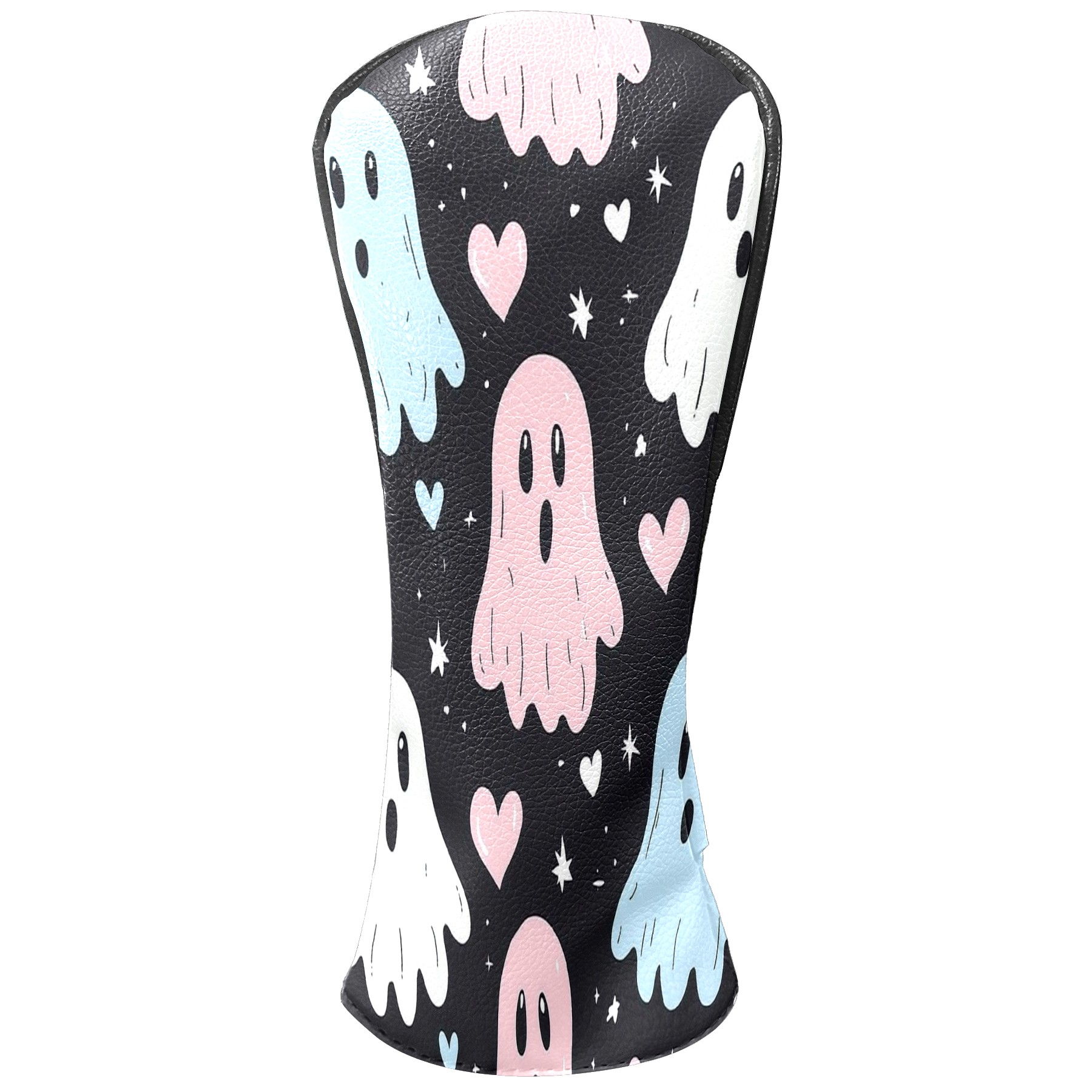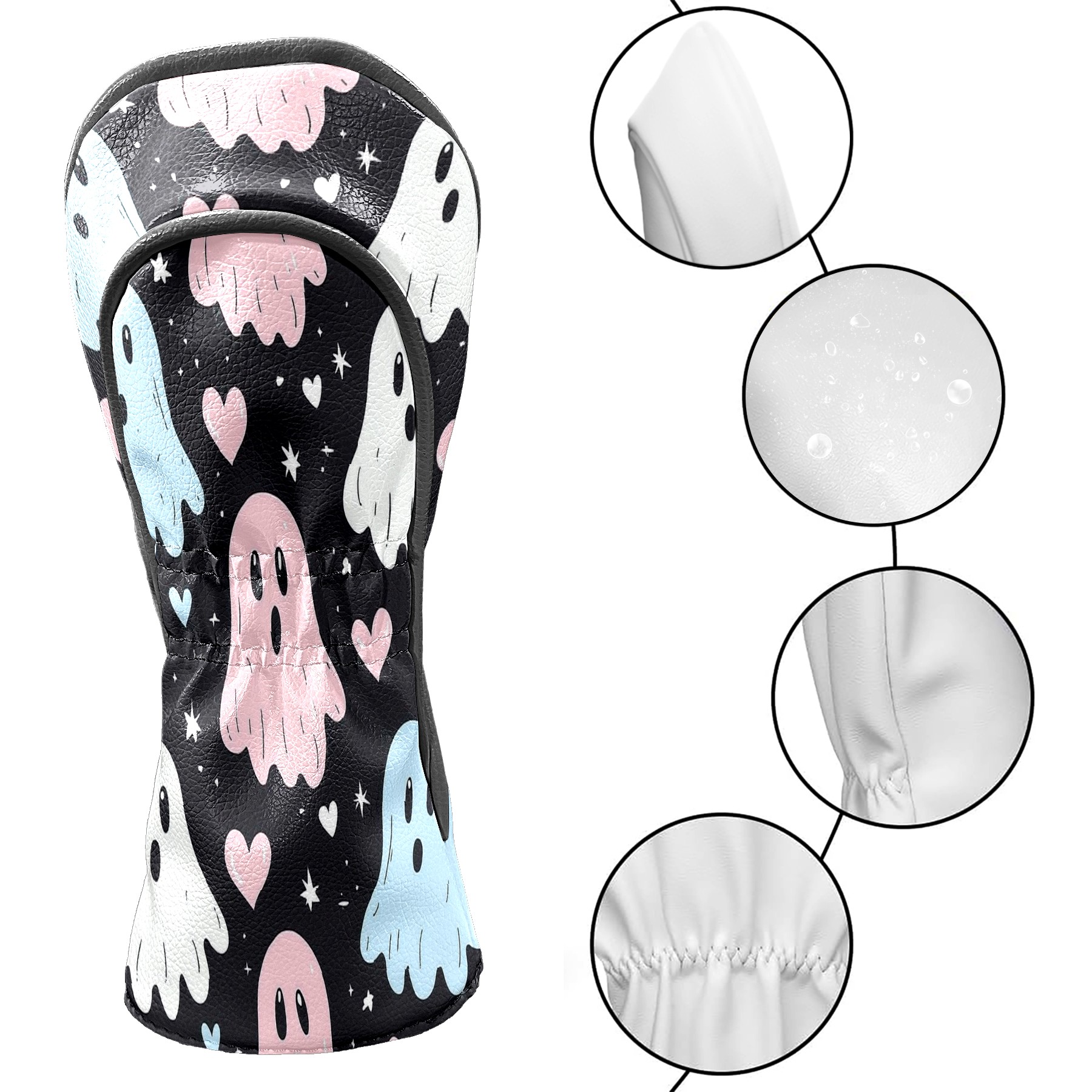 Golf Club Covers, Black GhostHeart Premium PU Leather Driver Hybrid Putter Head Covers with Velvet Lining, Waterproof Golf Gifts for Men Women
