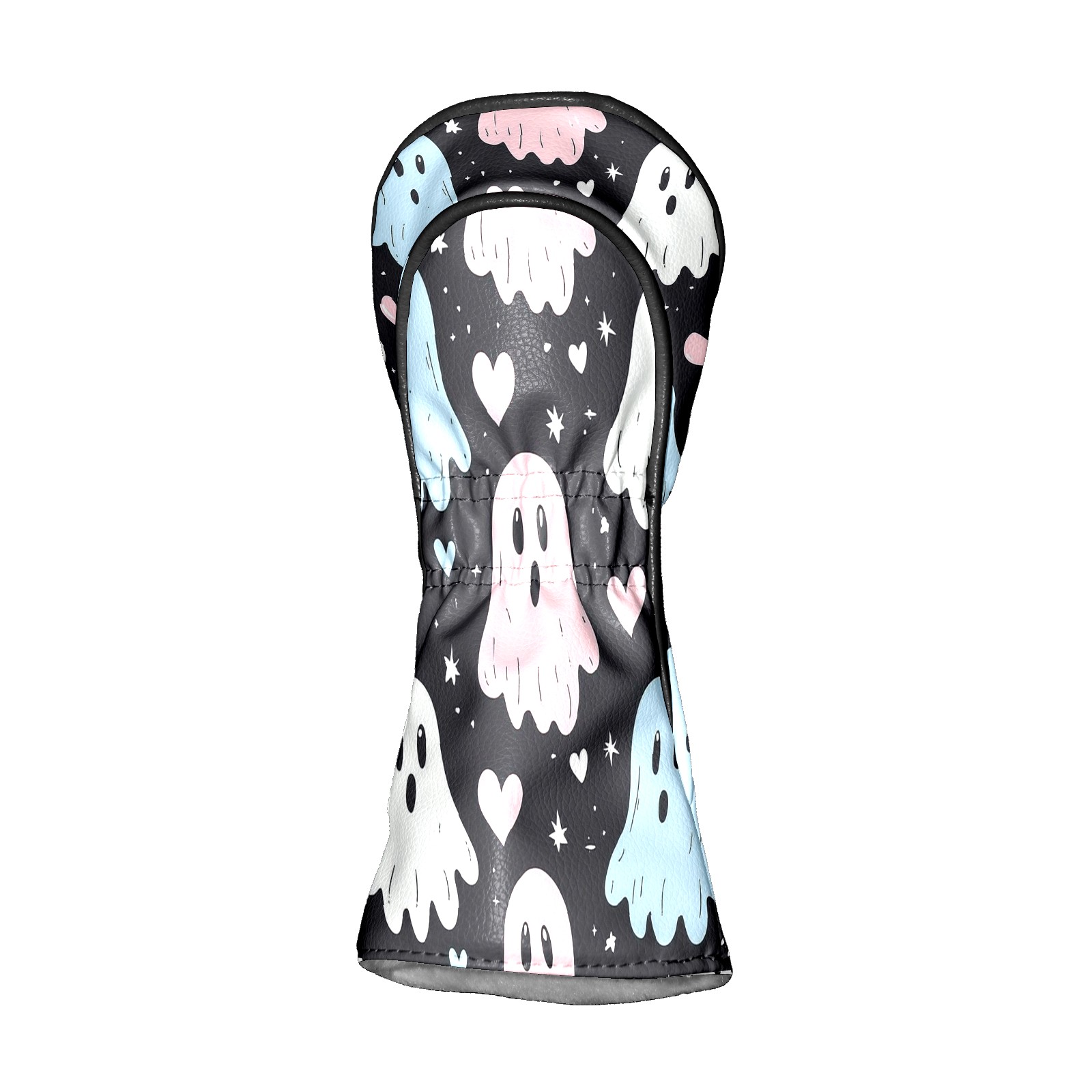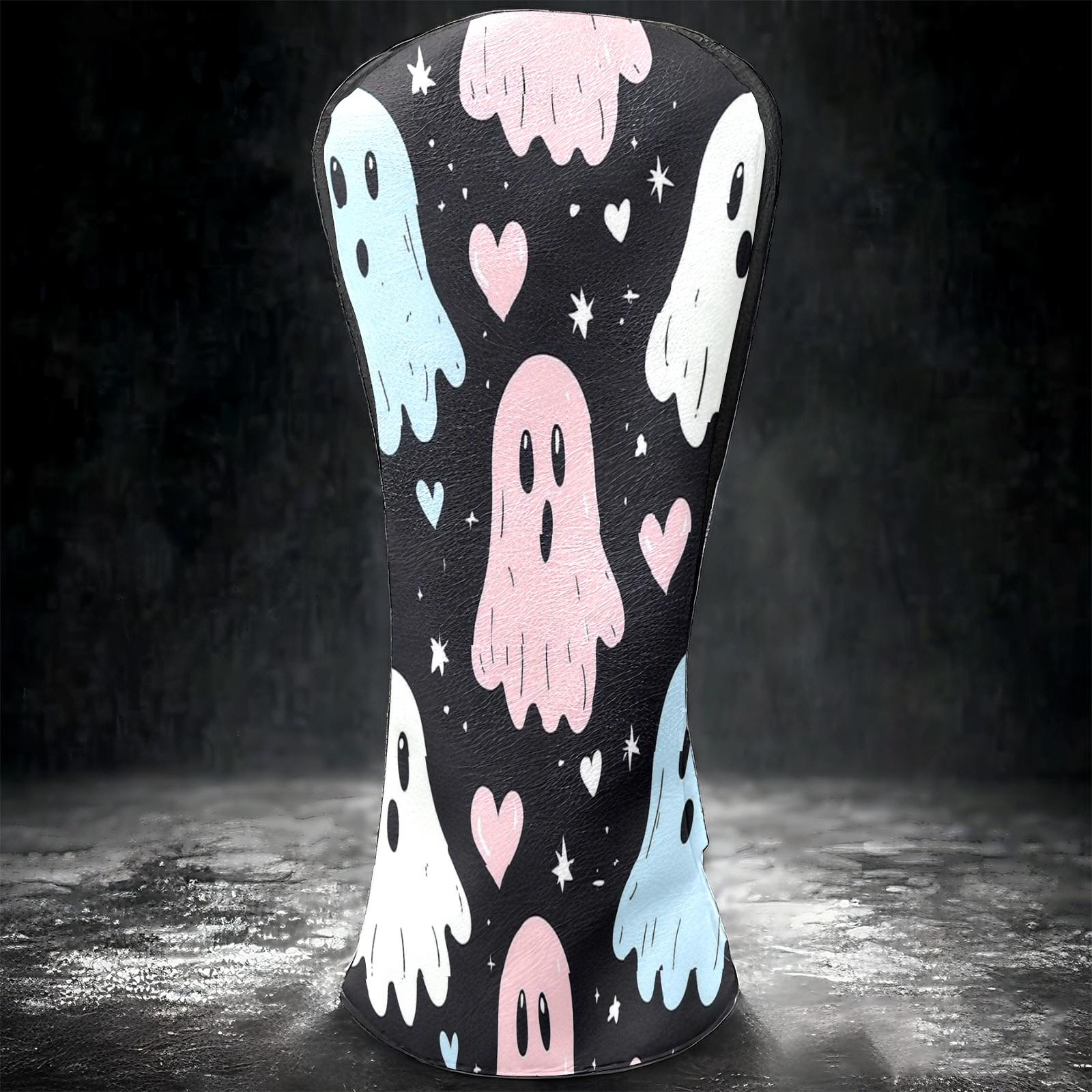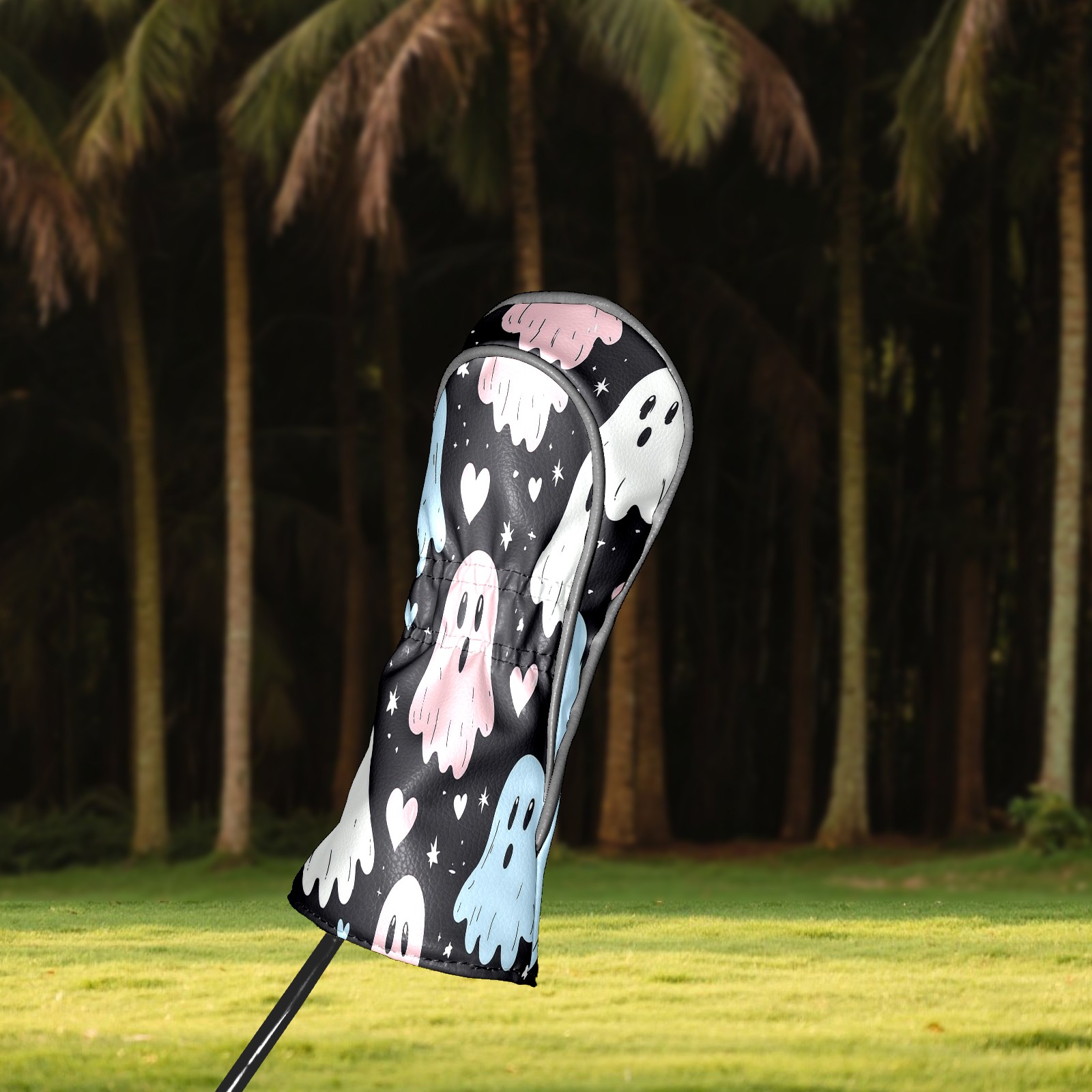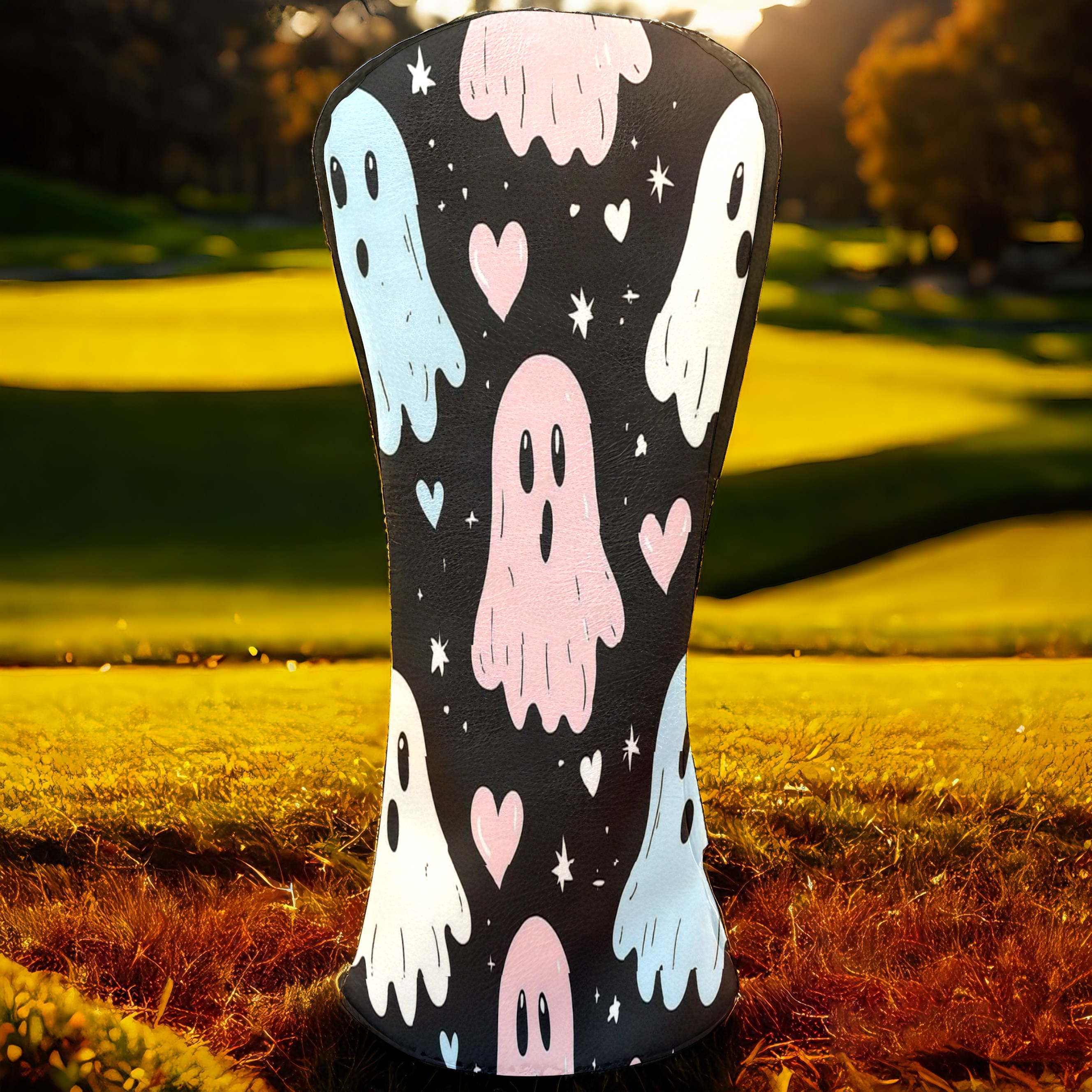 Golf Club Covers, Black GhostHeart Premium PU Leather Driver Hybrid Putter Head Covers with Velvet Lining, Waterproof Golf Gifts for Men Women