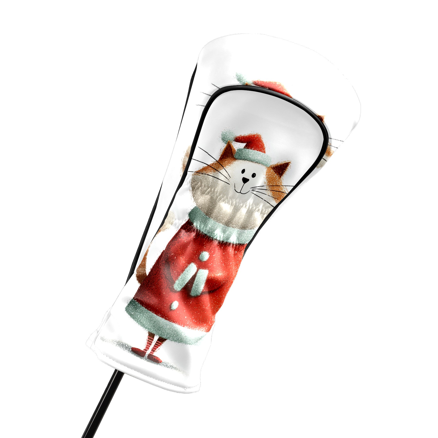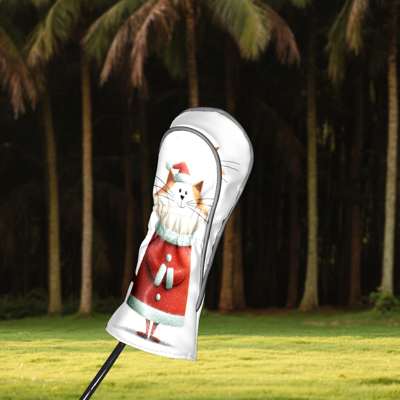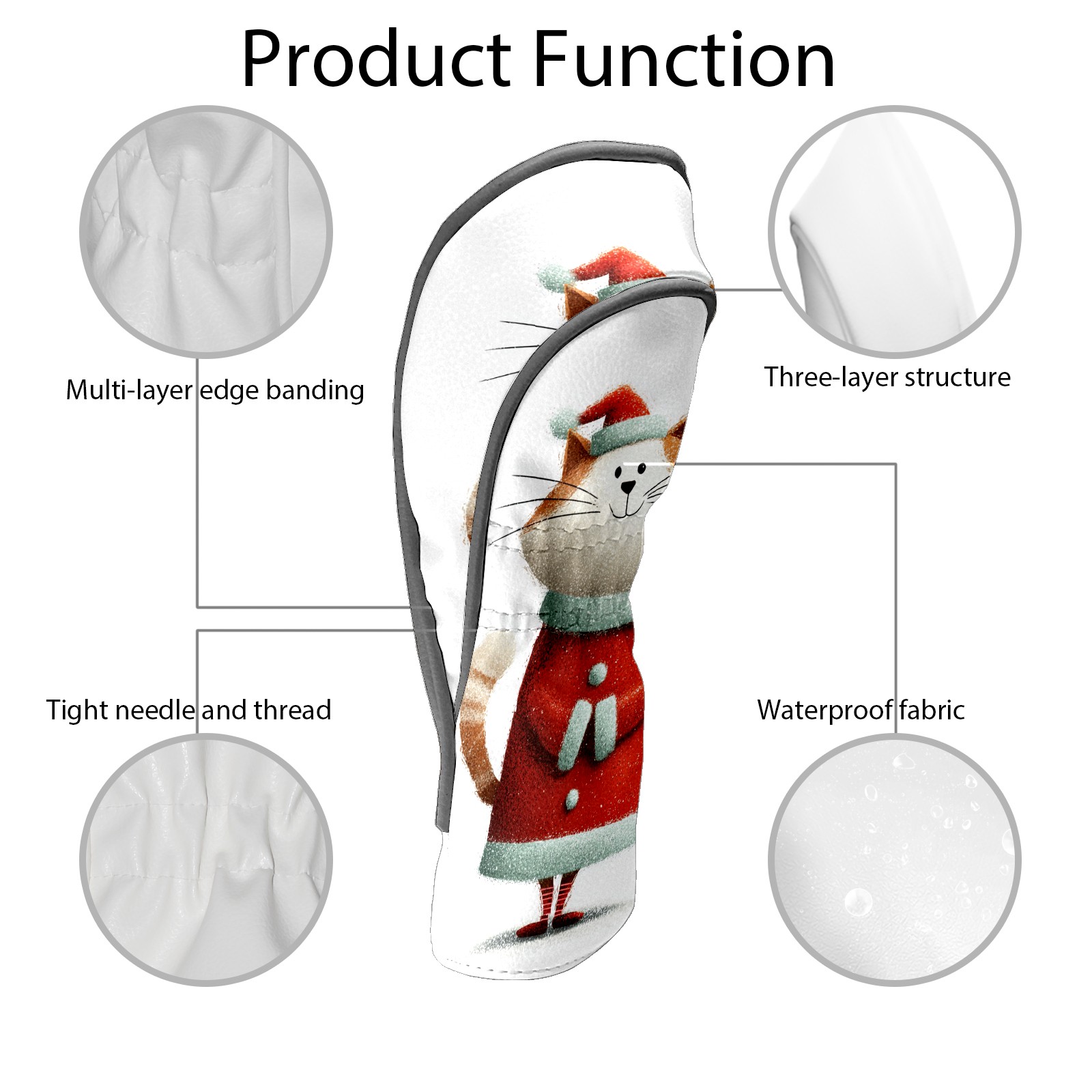 Golf Club Covers, Red XmasCatStand Premium PU Leather Driver Hybrid Putter Head Covers with Velvet Lining, Waterproof Golf Gifts for Men Women