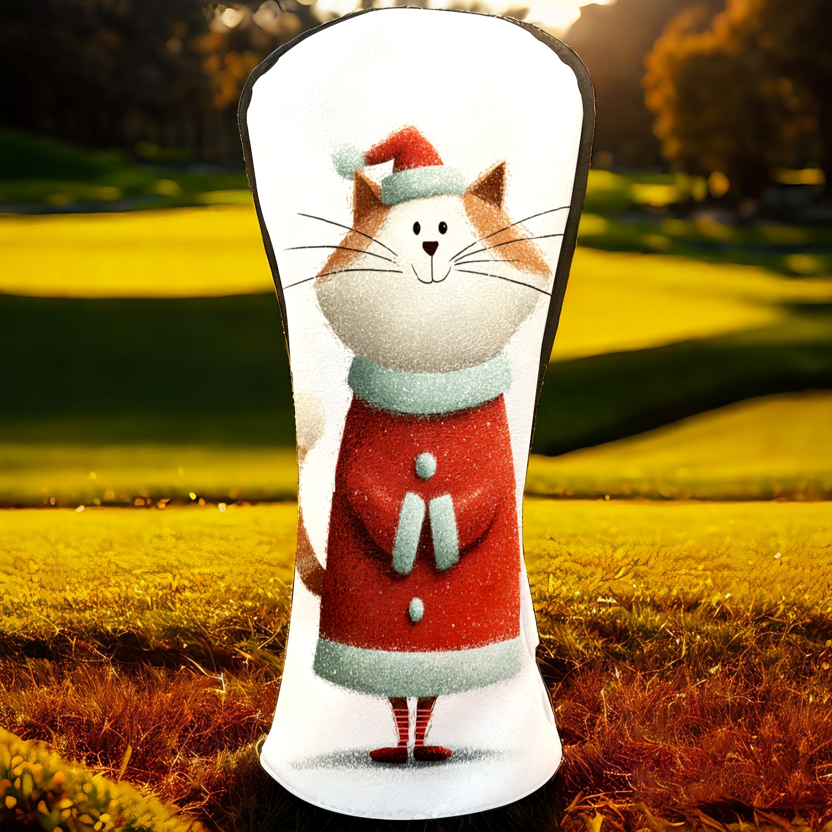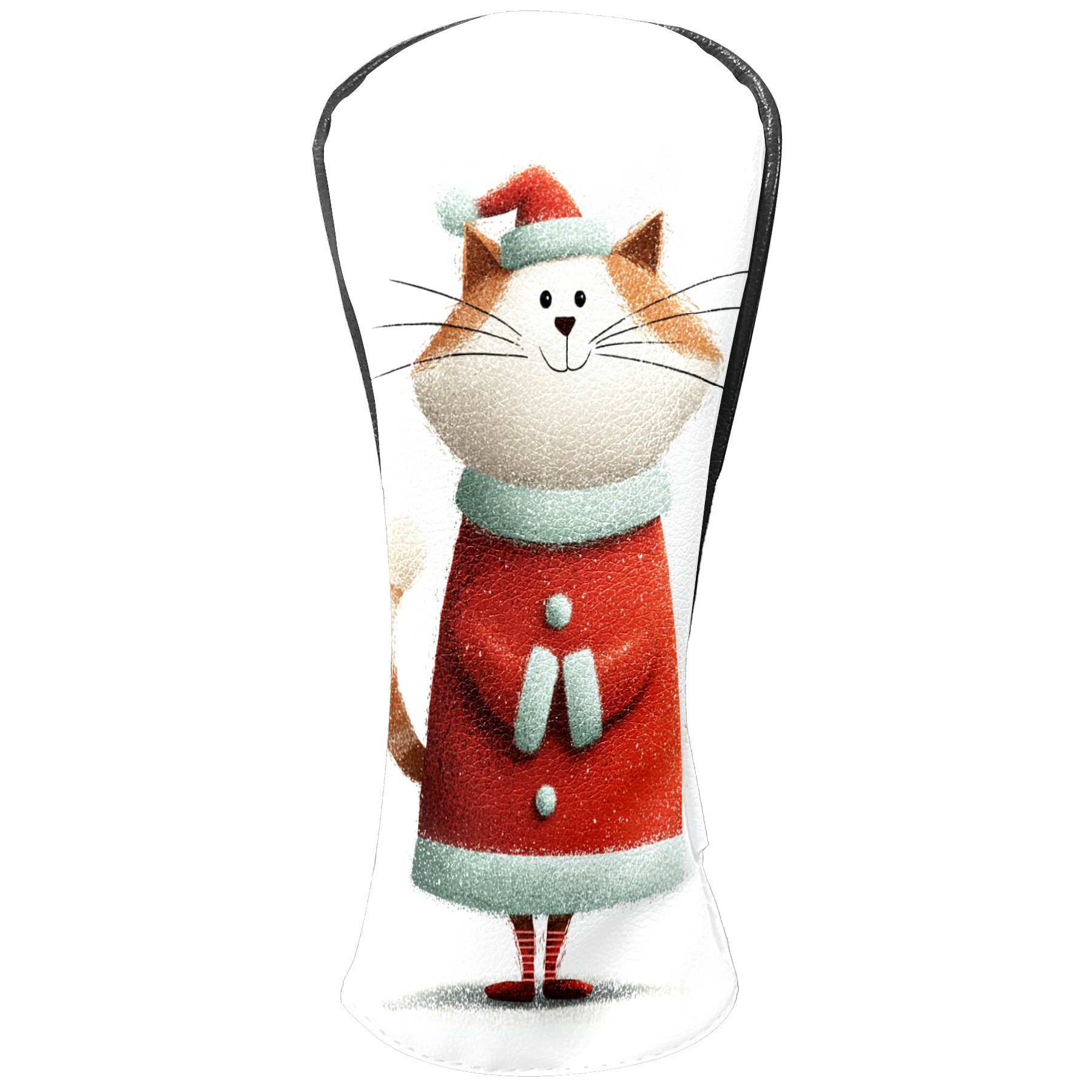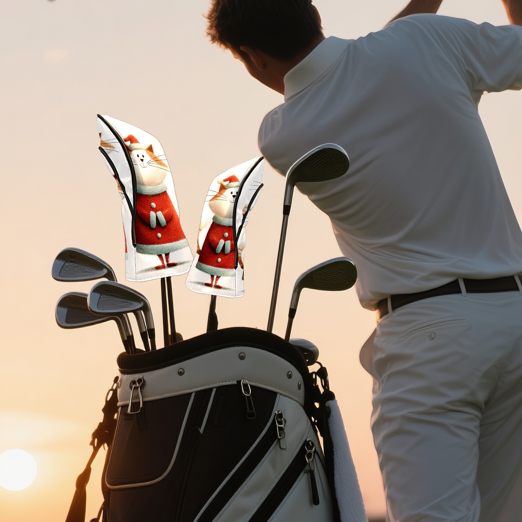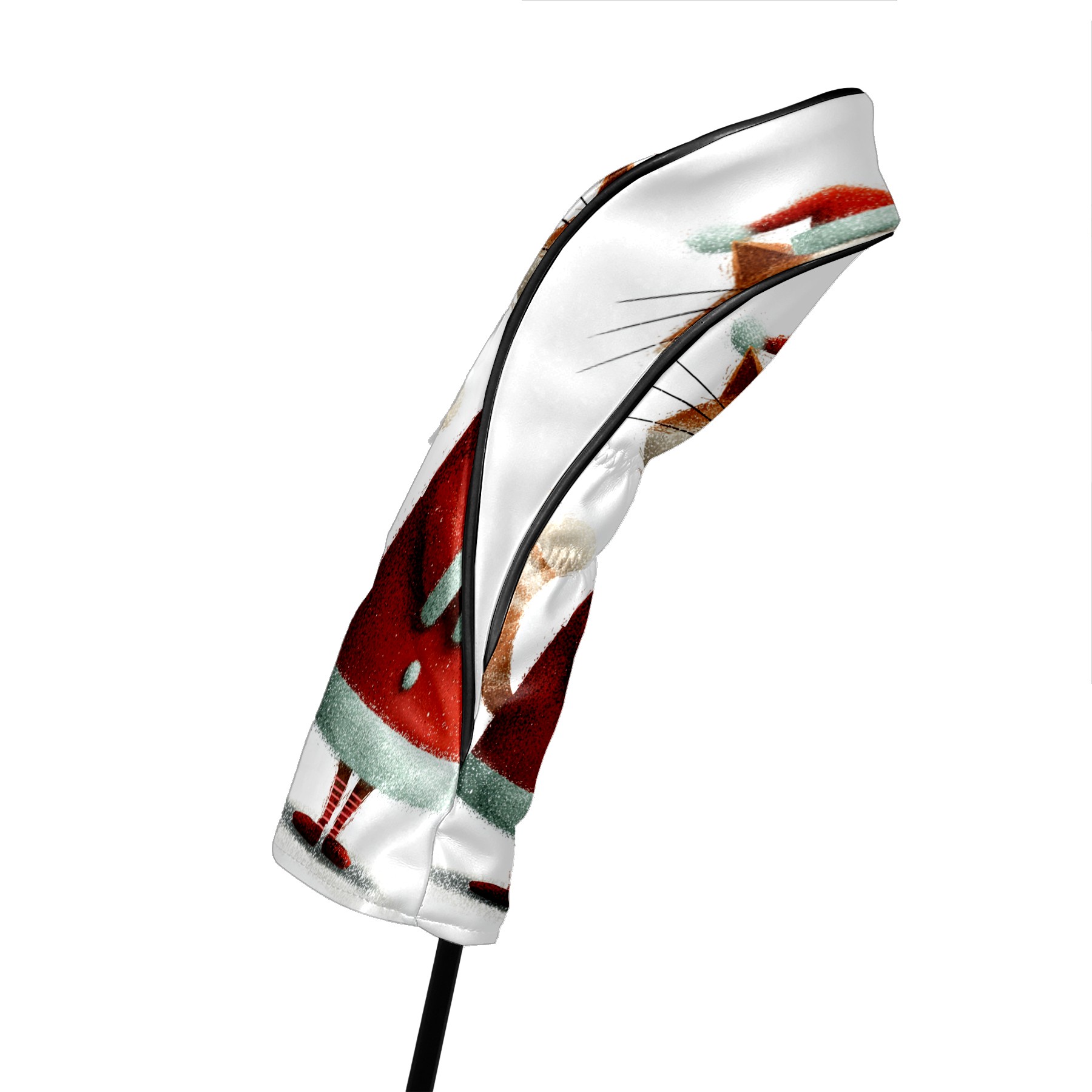 Golf Club Covers, Red XmasCatStand Premium PU Leather Driver Hybrid Putter Head Covers with Velvet Lining, Waterproof Golf Gifts for Men Women