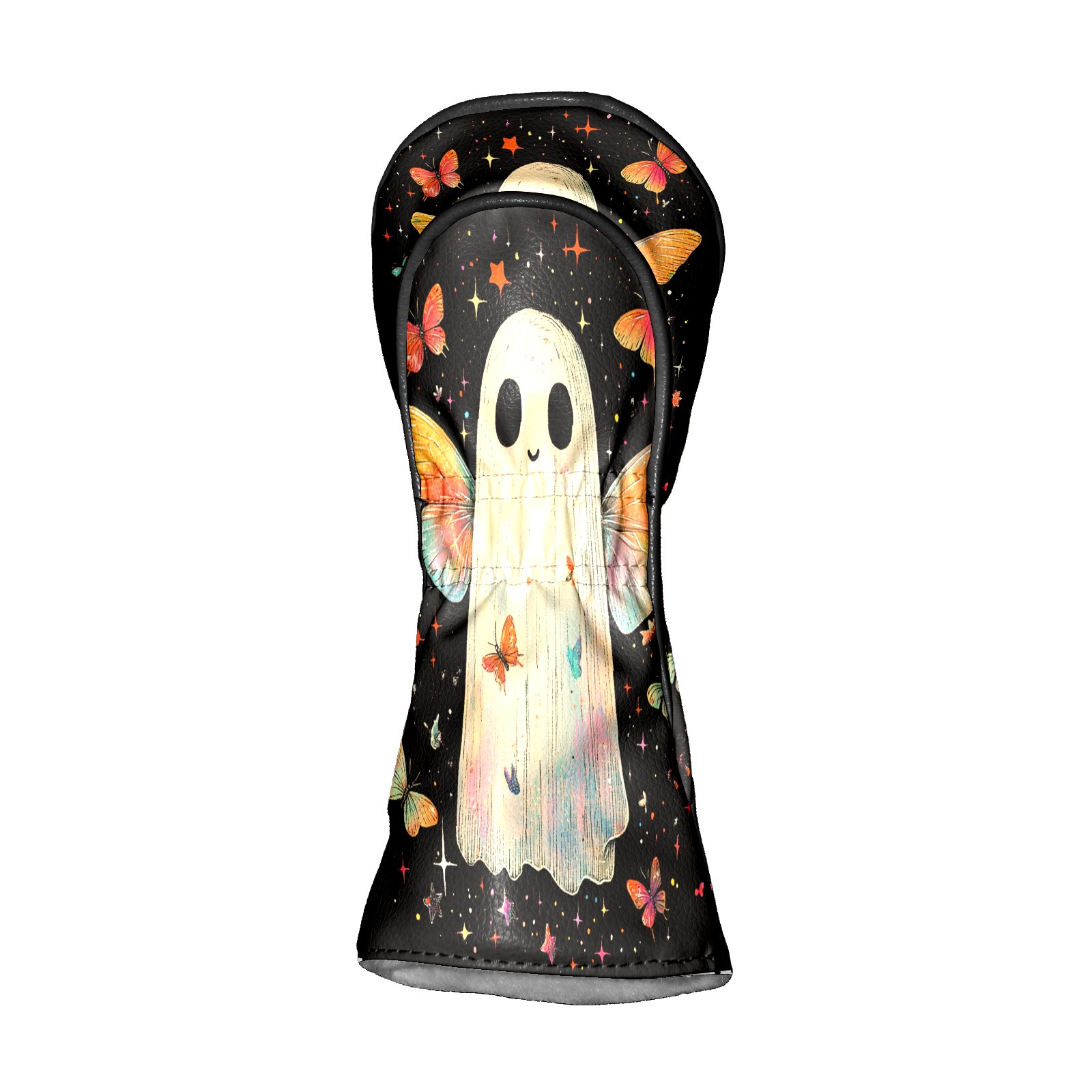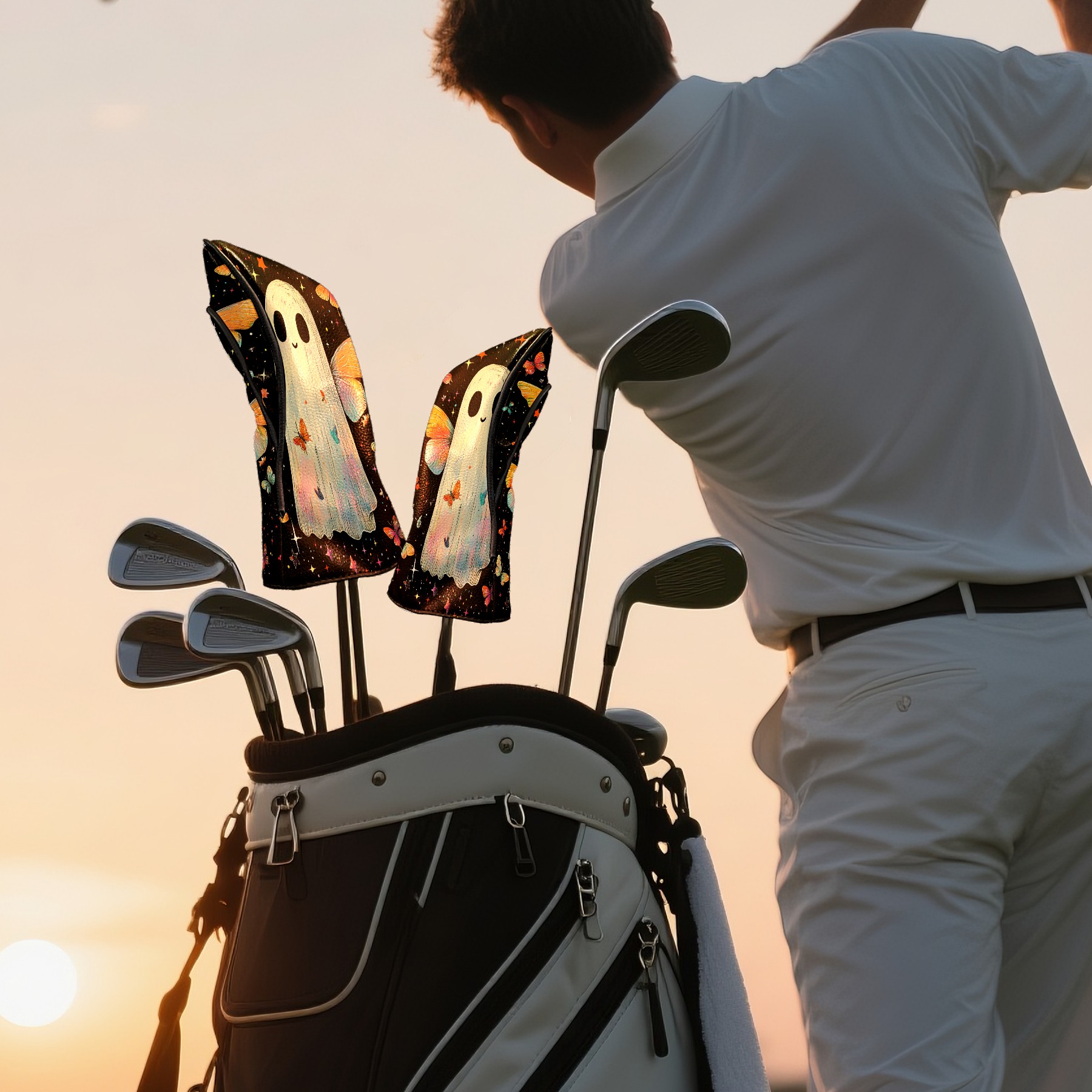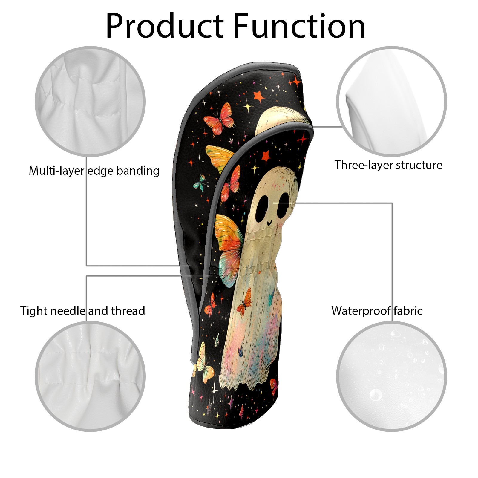 Golf Club Covers, Colorful Ghost Butterfly Premium PU Leather Driver Hybrid Putter Head Covers with Velvet Lining, Waterproof Golf Gifts for Men Women