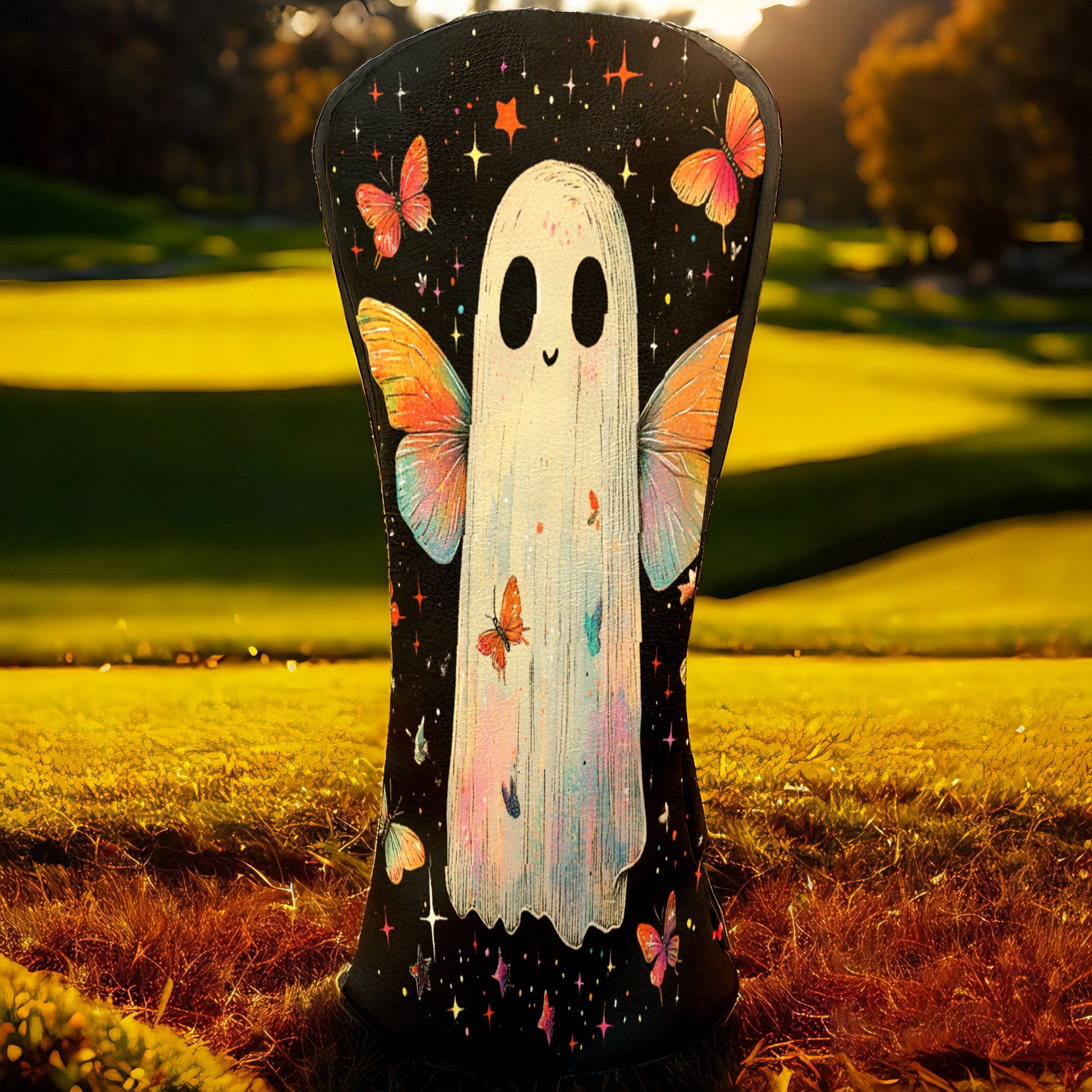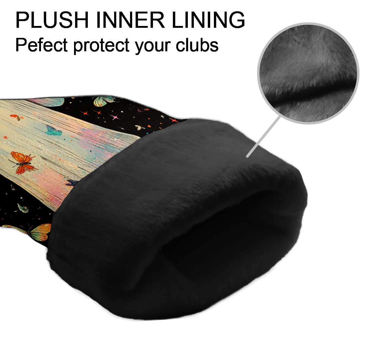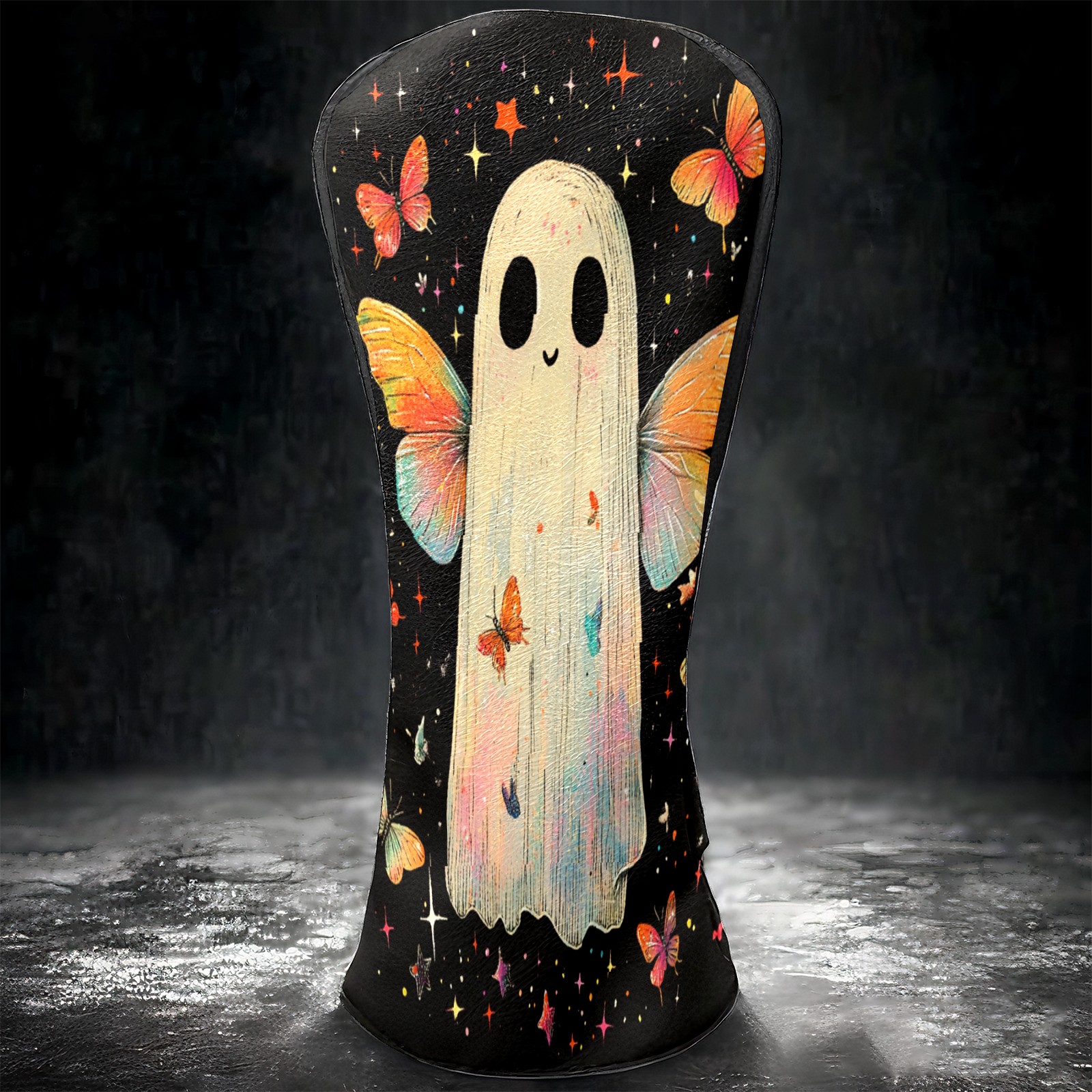 Golf Club Covers, Colorful Ghost Butterfly Premium PU Leather Driver Hybrid Putter Head Covers with Velvet Lining, Waterproof Golf Gifts for Men Women
