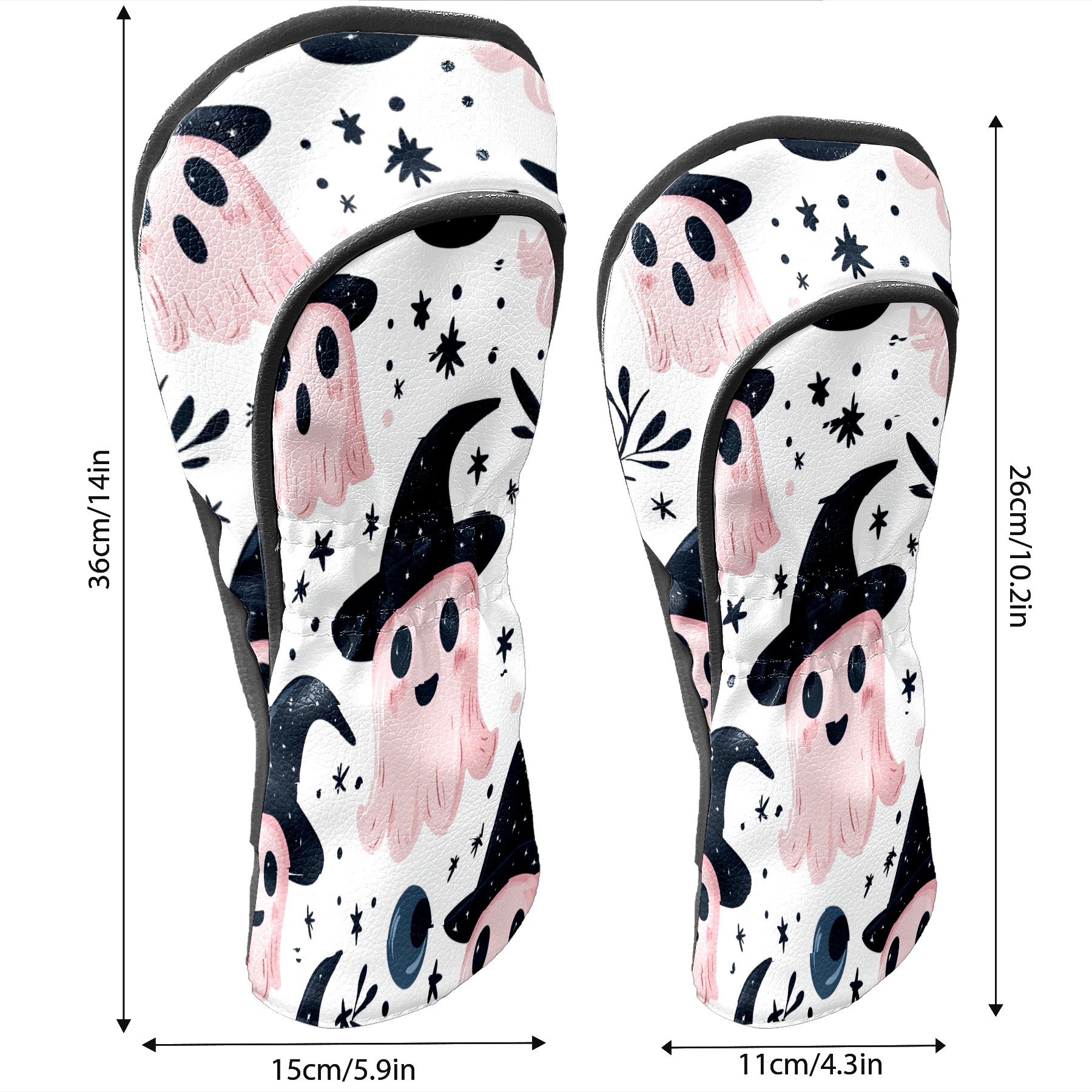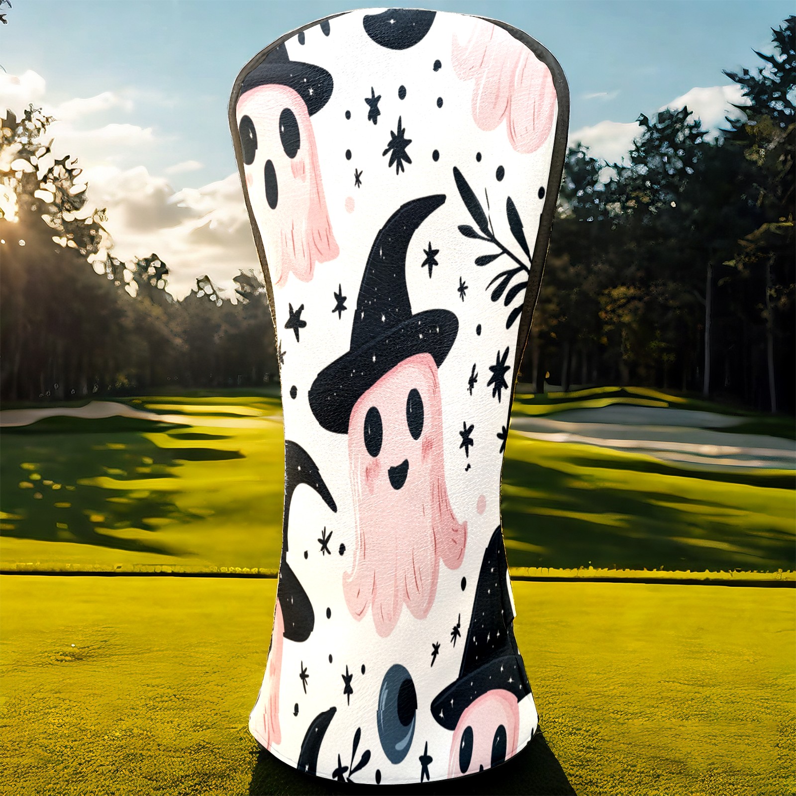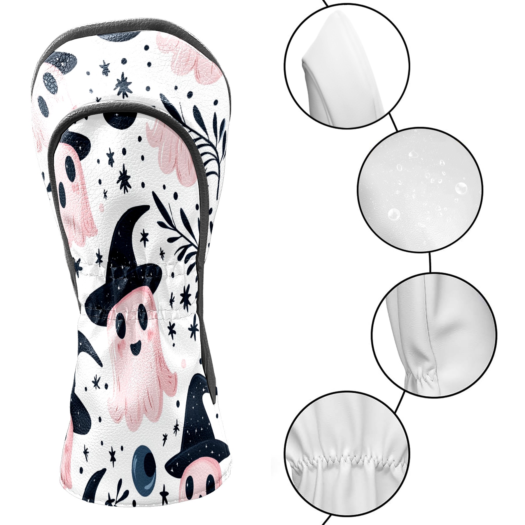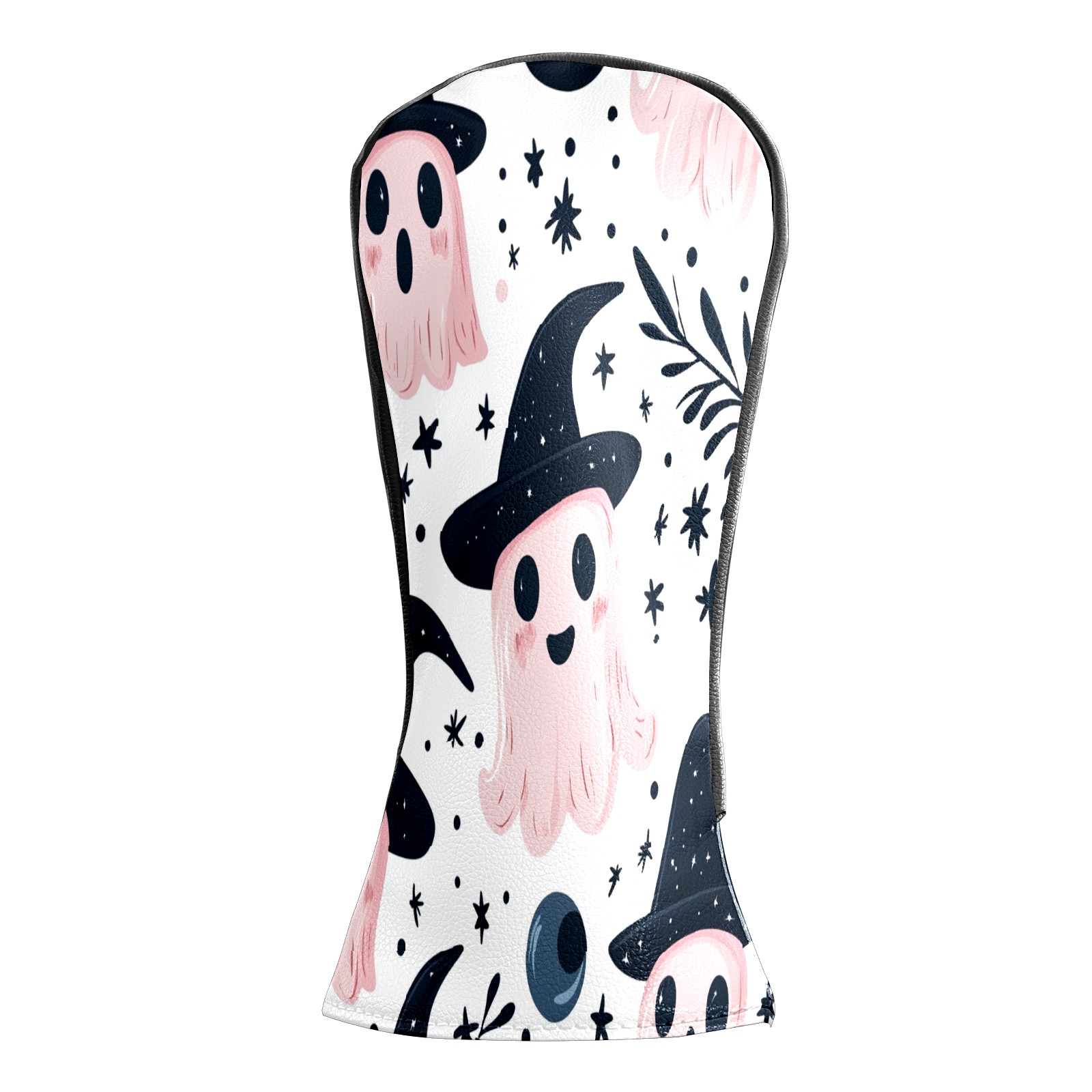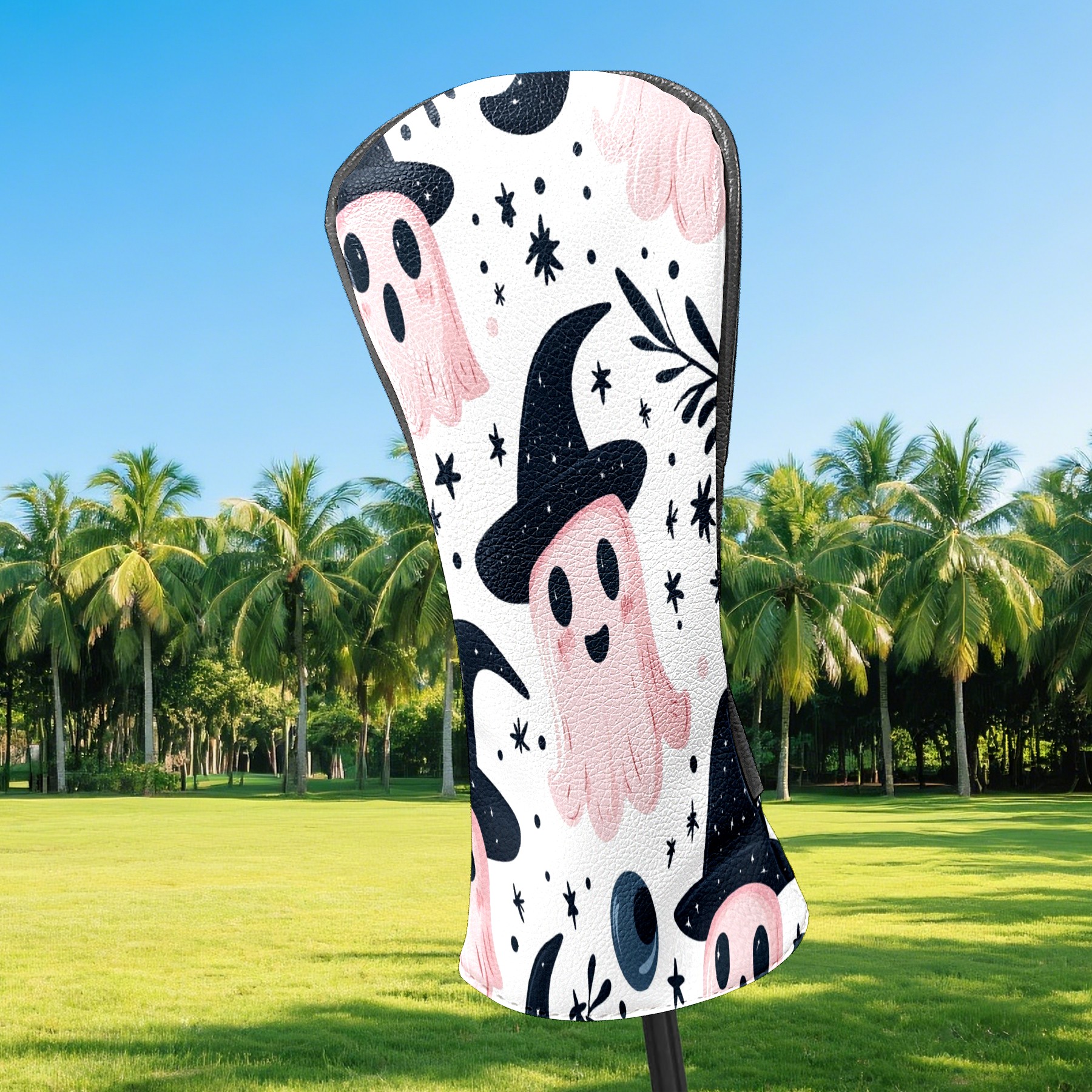 Golf Club Covers, Pink Ghost Witch Hat Premium PU Leather Driver Hybrid Putter Head Covers with Velvet Lining, Waterproof Golf Gifts for Men Women