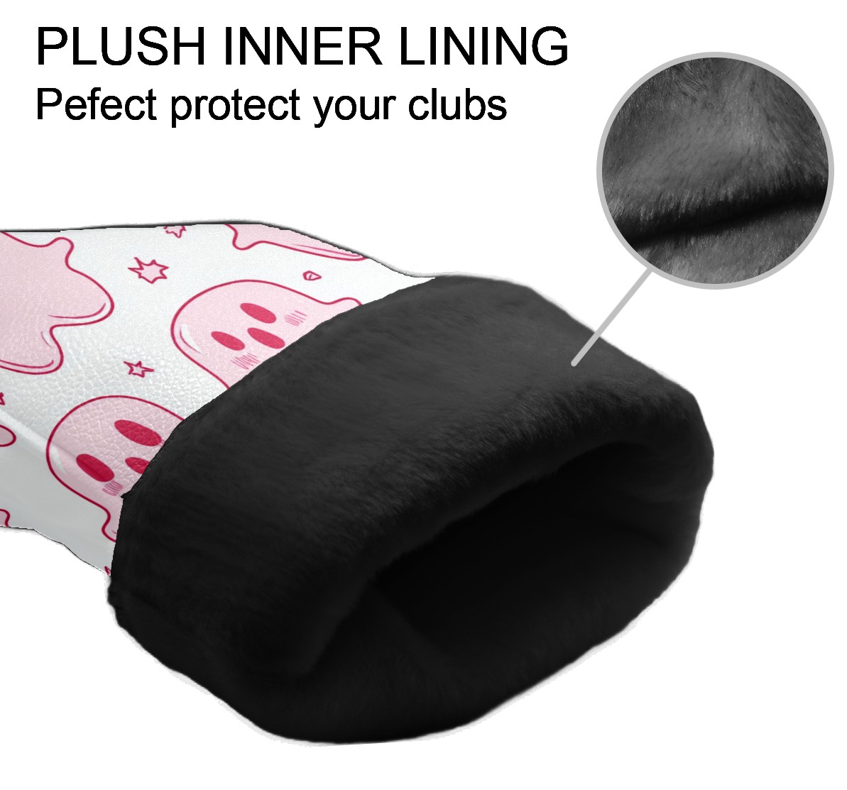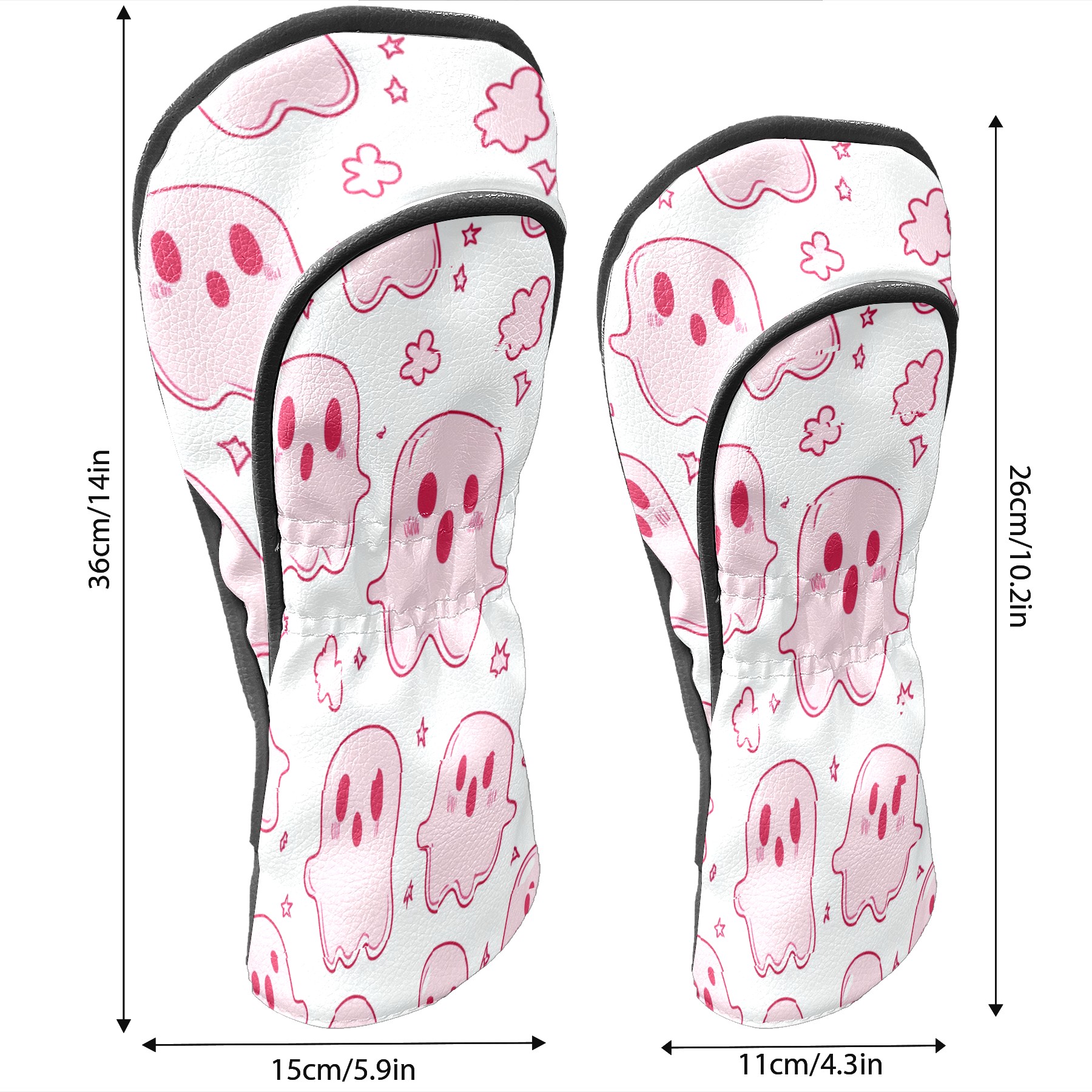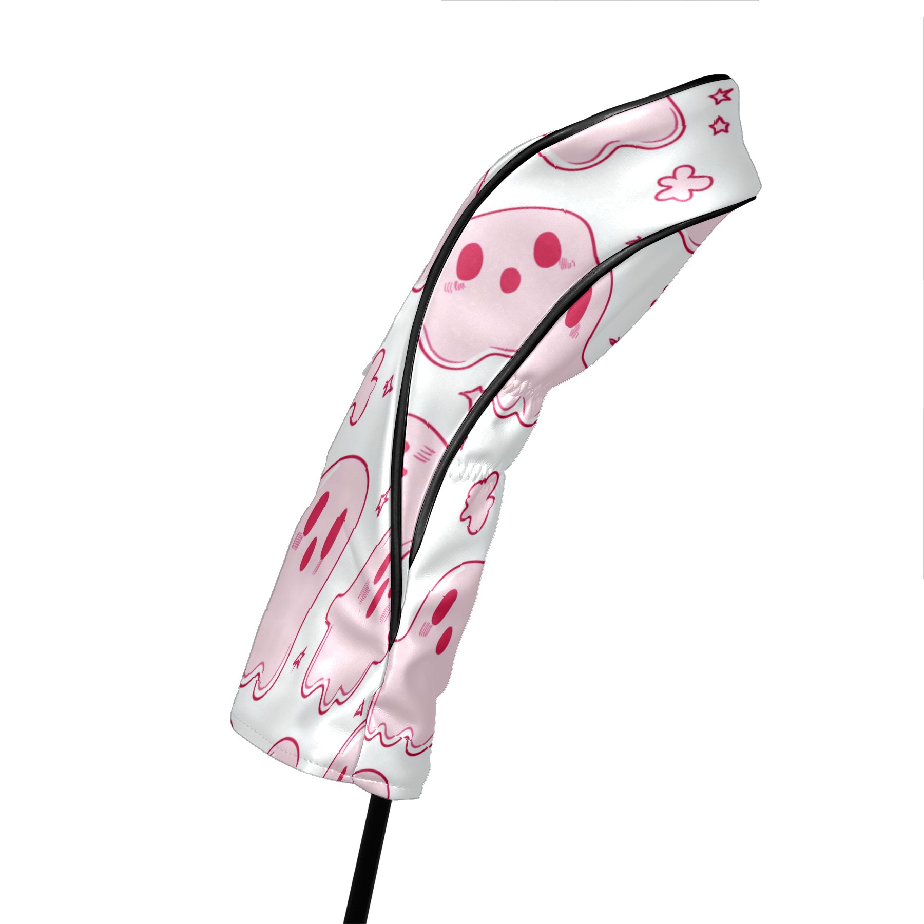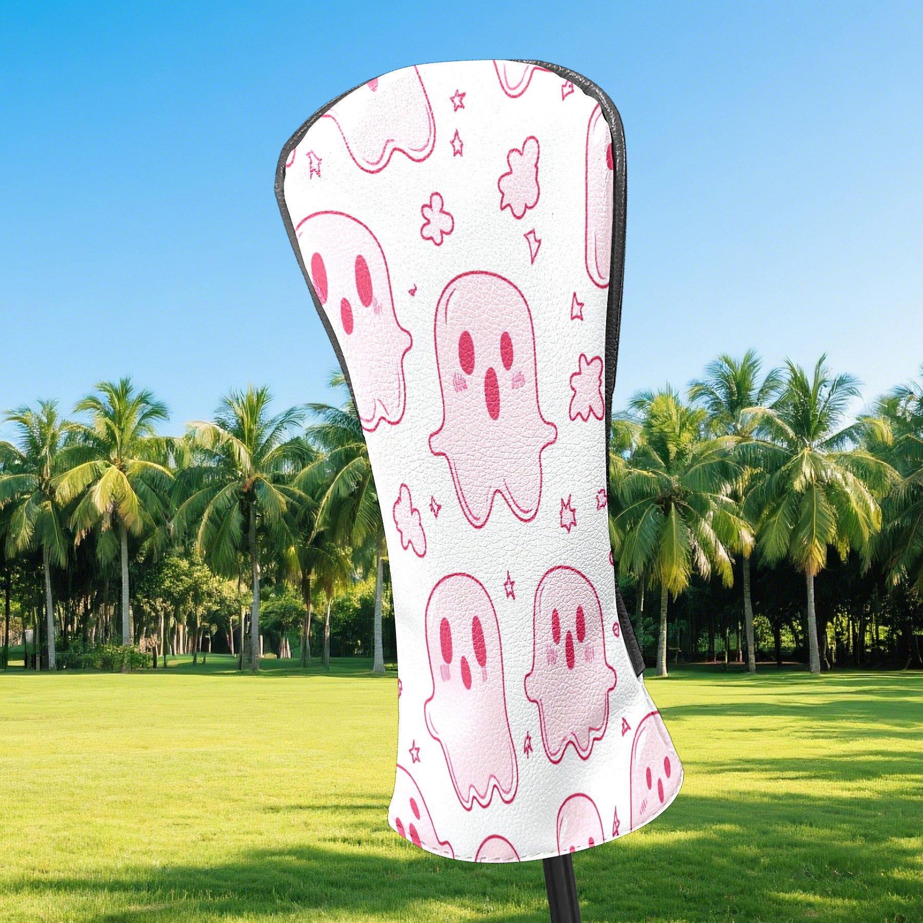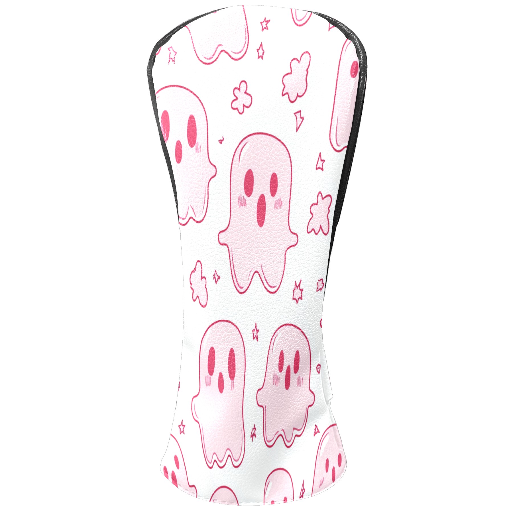 Golf Club Covers, LightPink Cartoon Ghosts Premium PU Leather Driver Hybrid Putter Head Covers with Velvet Lining, Waterproof Golf Gifts for Men Women