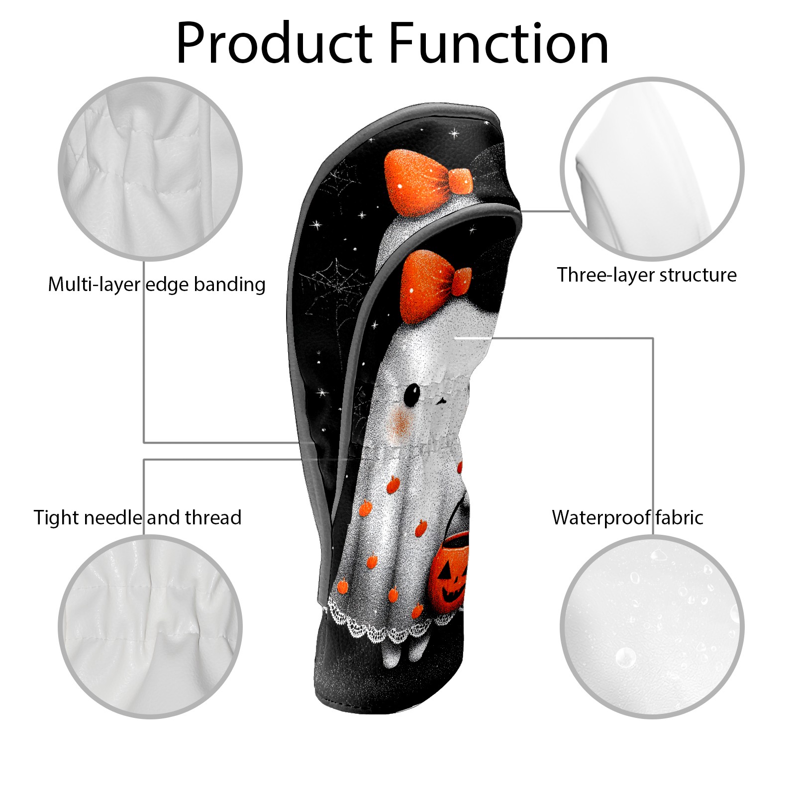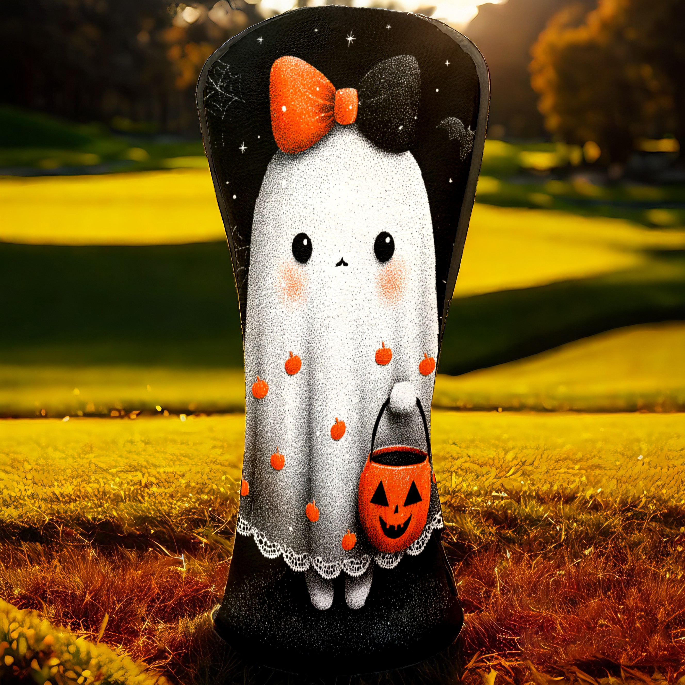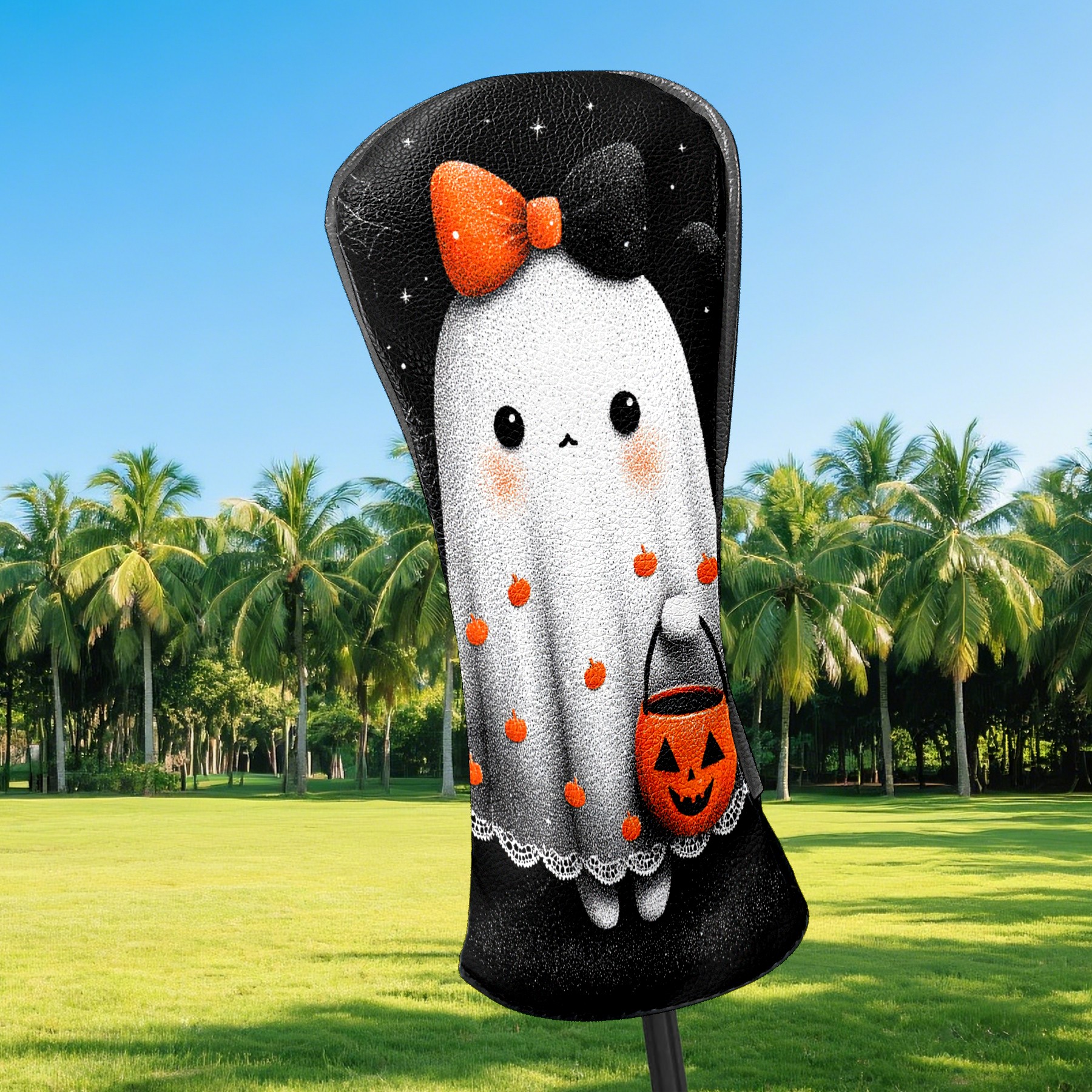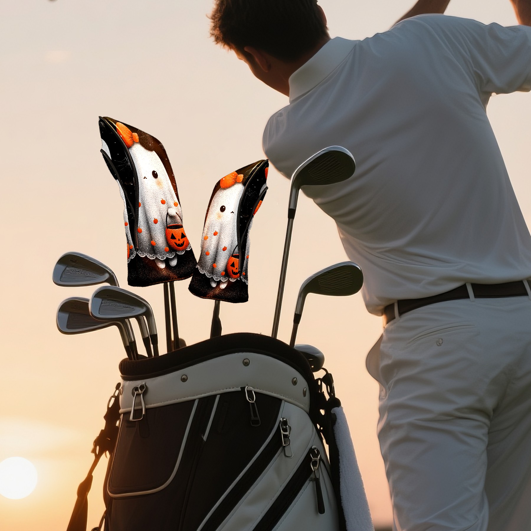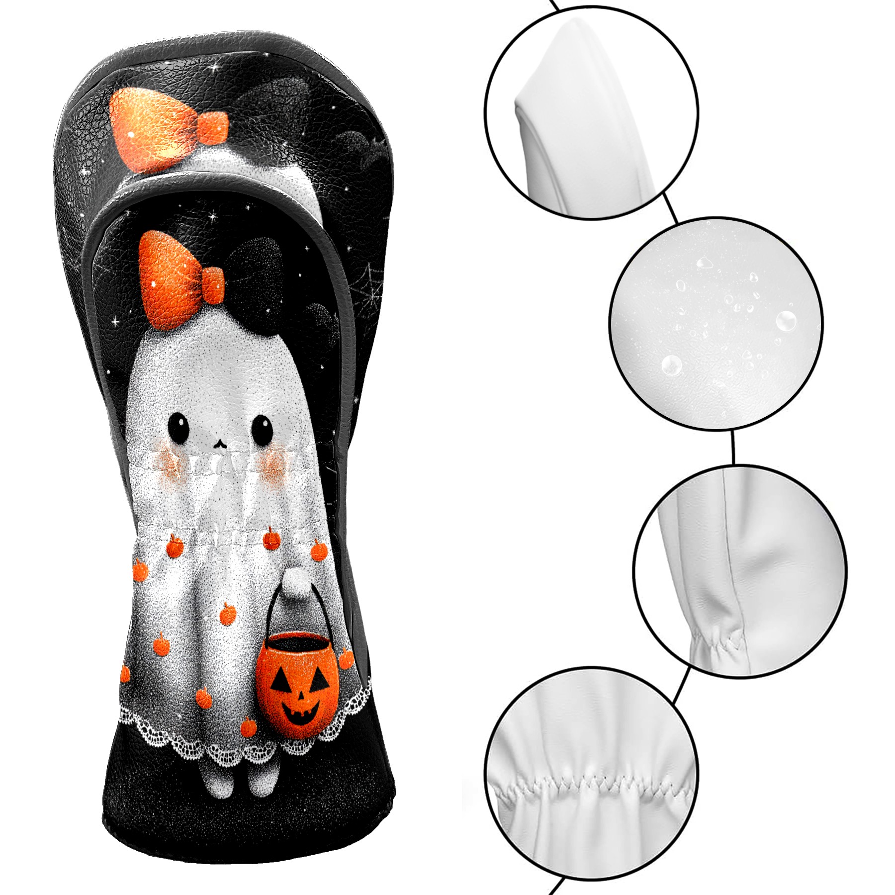 Golf Club Covers, Black Ghost2 Premium PU Leather Driver Hybrid Putter Head Covers with Velvet Lining, Waterproof Golf Gifts for Men Women