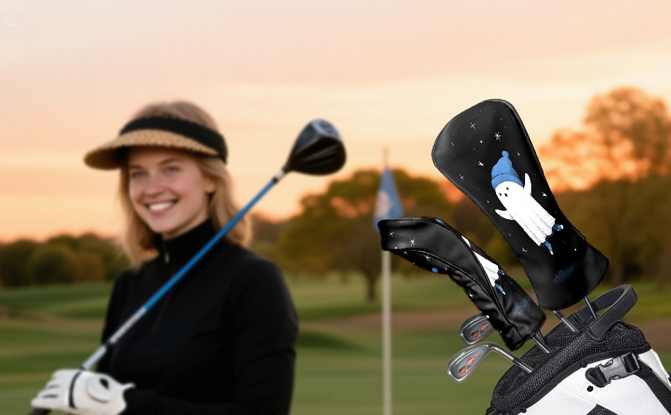 Golf Club Covers, Blue Hat Ghost Premium PU Leather Driver Hybrid Putter Head Covers with Velvet Lining, Waterproof Golf Gifts for Men Women