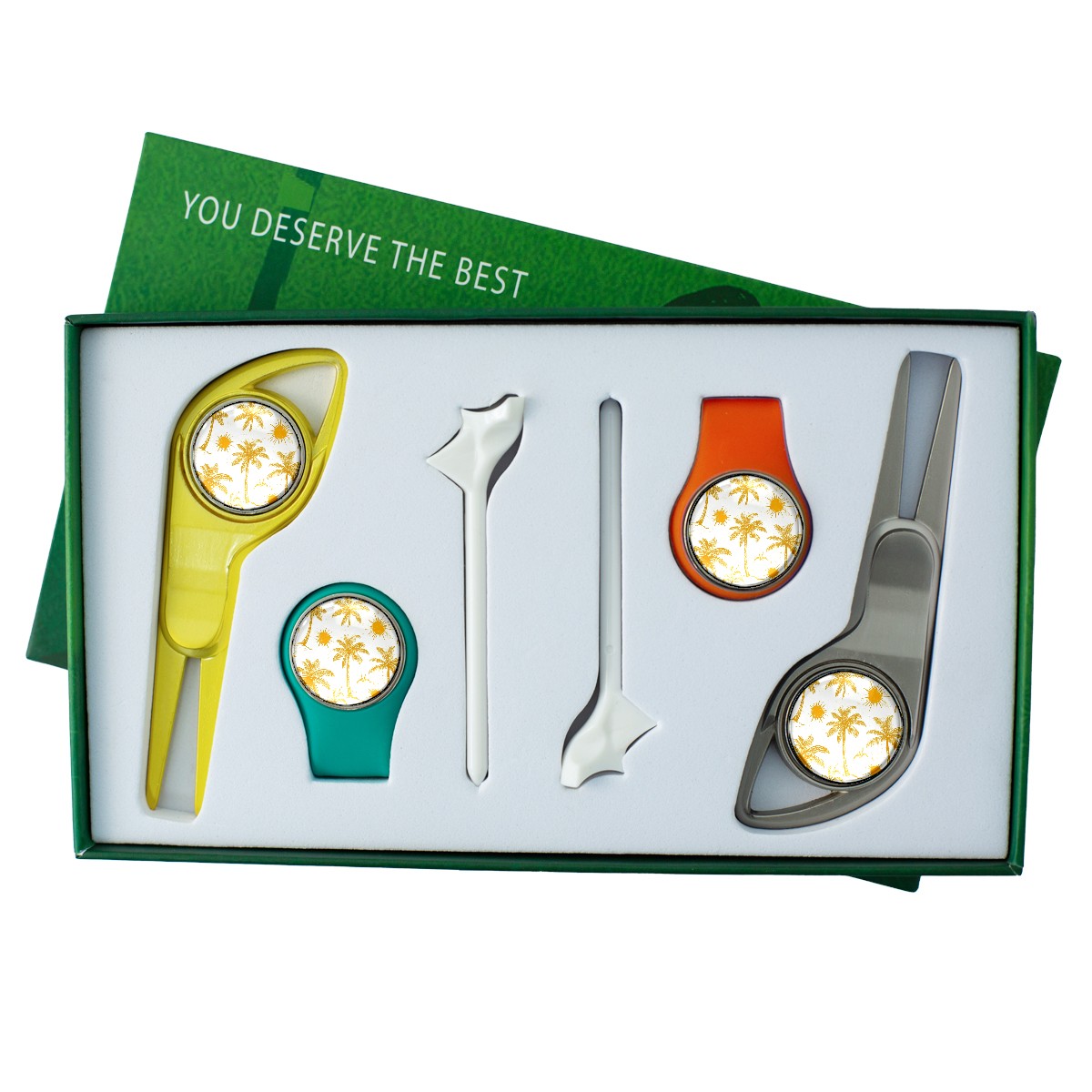 <p>Elevate your golf gifting game with this premium 6 - piece Golf Gift Set for Men! Designed for true golf enthusiasts, it’s the ultimate present for birthdays, anniversaries, retirements, Christmas, or Father’s Day.Inside the sturdy, deformation - resistant gift box (20.5x12.5x2.8cm), you’ll find 2 green forks, 2 hat clips, 2 golf tees, and 4 customizable magnetic ball markers—perfect for adding a personal touch. Every accessory is crafted to enhance the golfing experience, combining practicality and thoughtfulness.Whether surprising a seasoned pro or a weekend warrior, this set delivers joy on and off the course. Gift it with confidence—your golf - loving recipient will appreciate the quality and custom flair!</p>