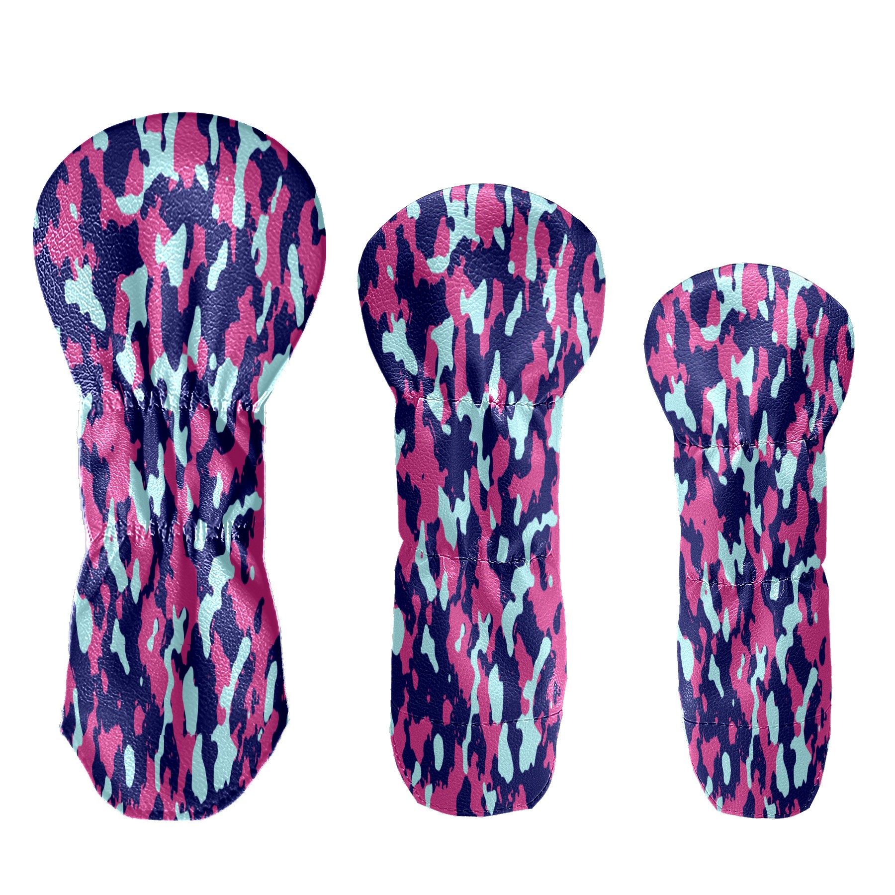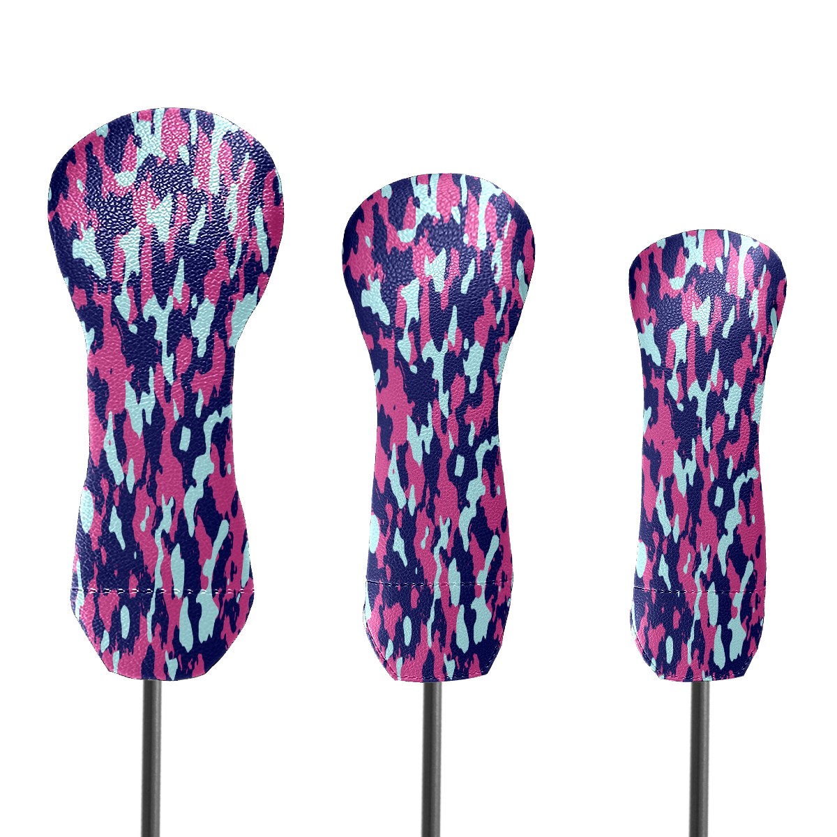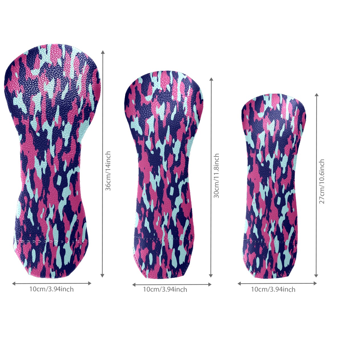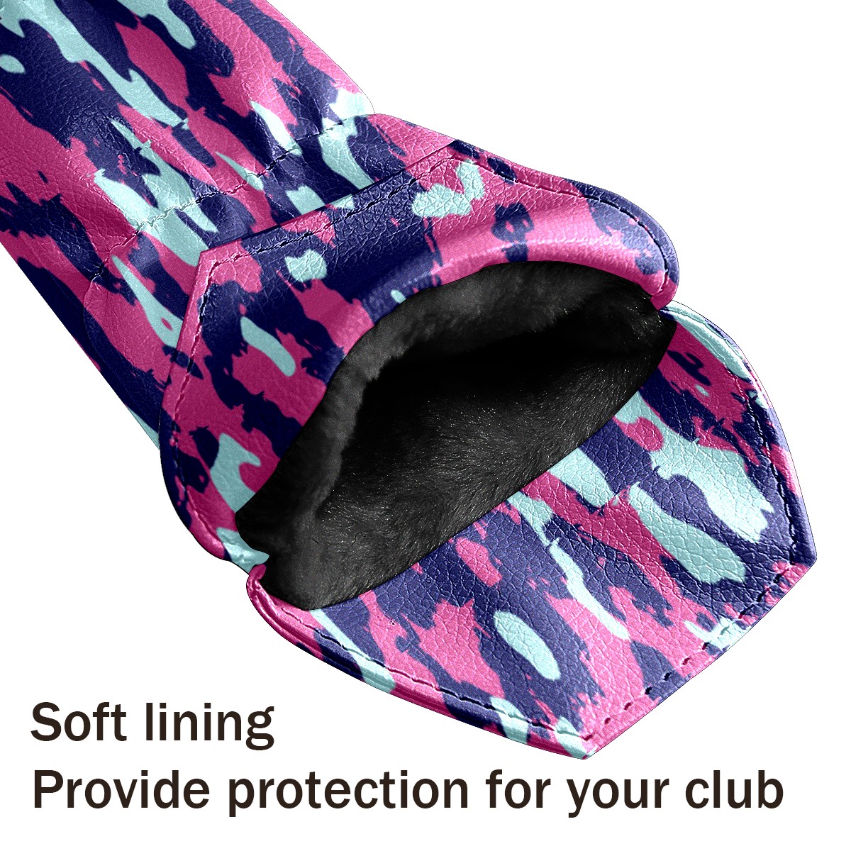 PU Leather Golf Putter Head Covers for Driver, Fairway Wood & Hybrid Clubs, Unisex, Fits All Brands Pink&Blue Camouflage