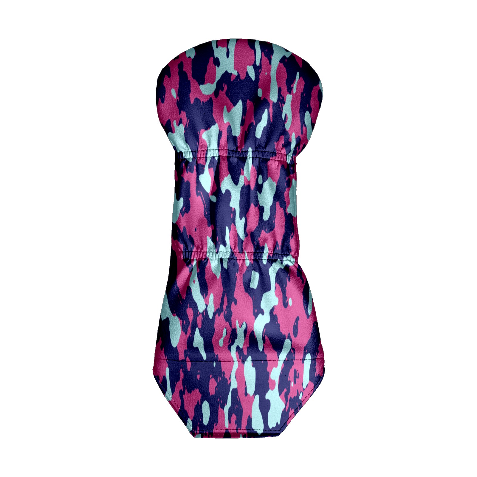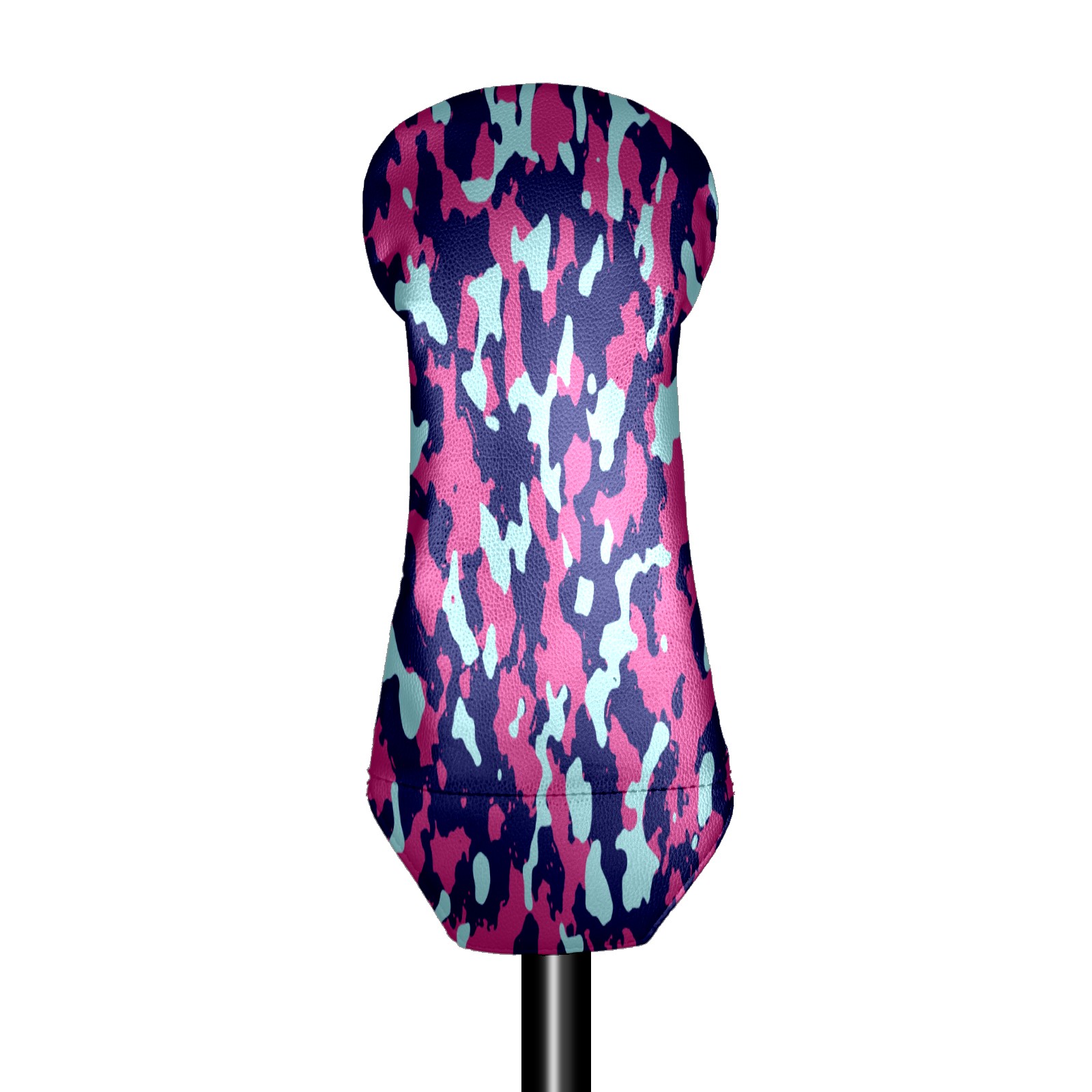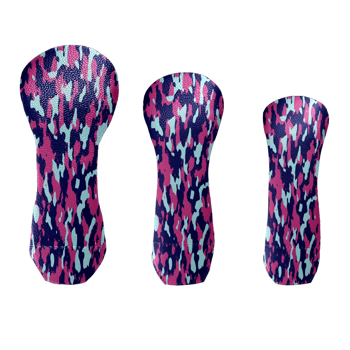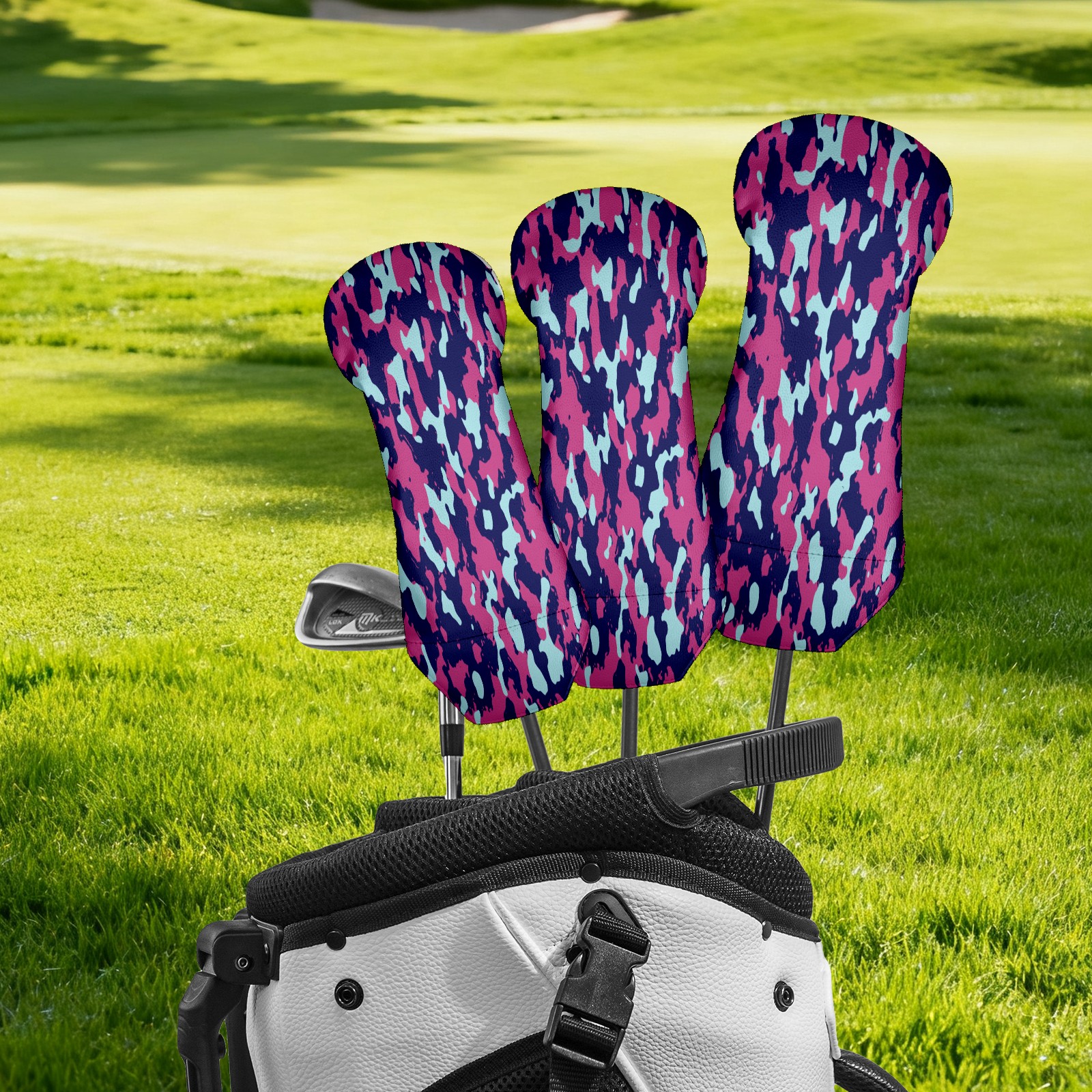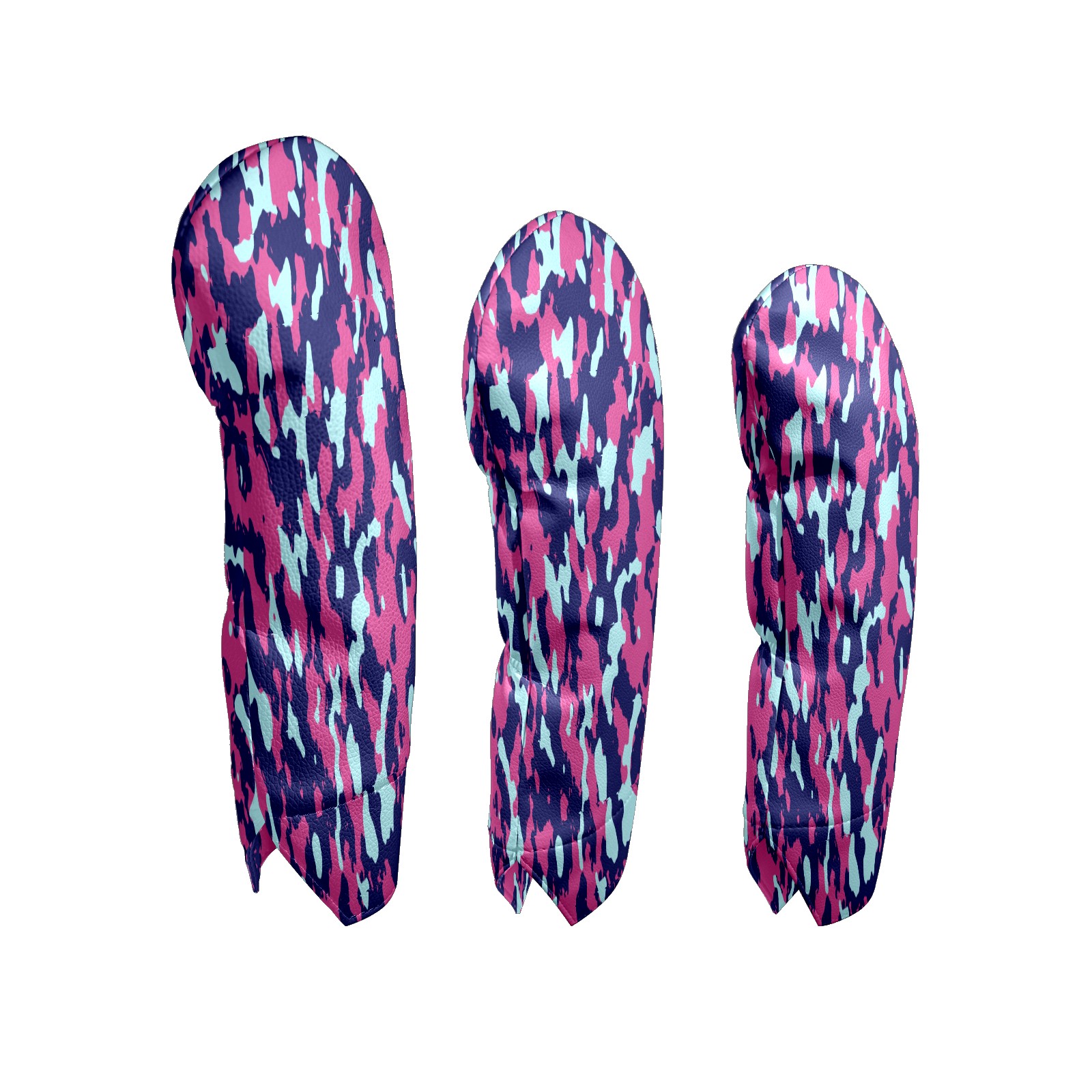 PU Leather Golf Putter Head Covers for Driver, Fairway Wood & Hybrid Clubs, Unisex, Fits All Brands Pink&Blue Camouflage