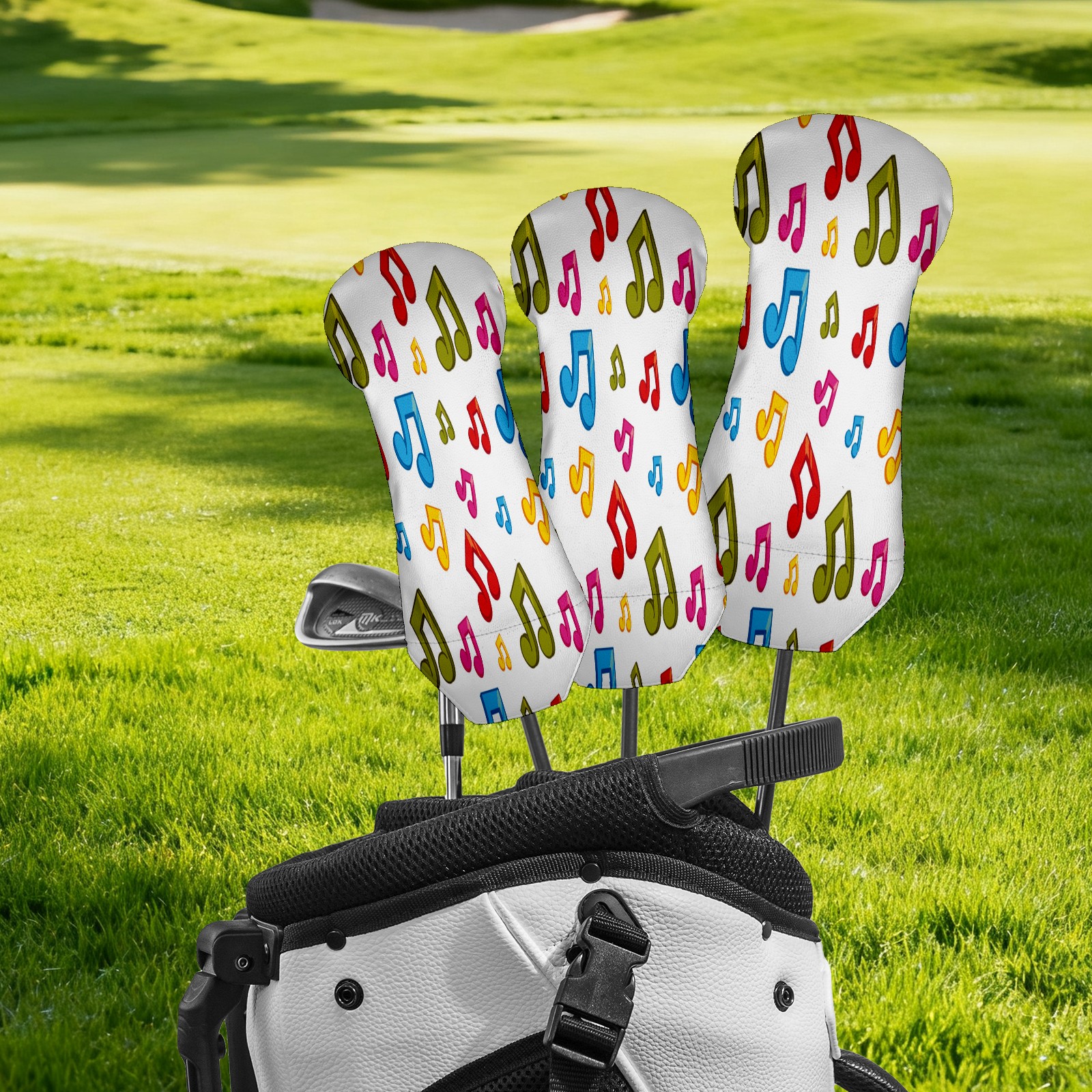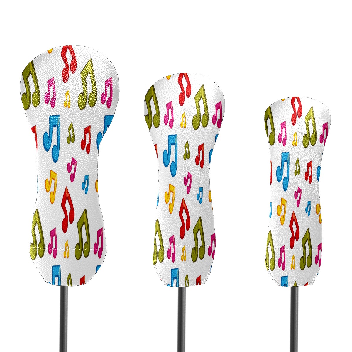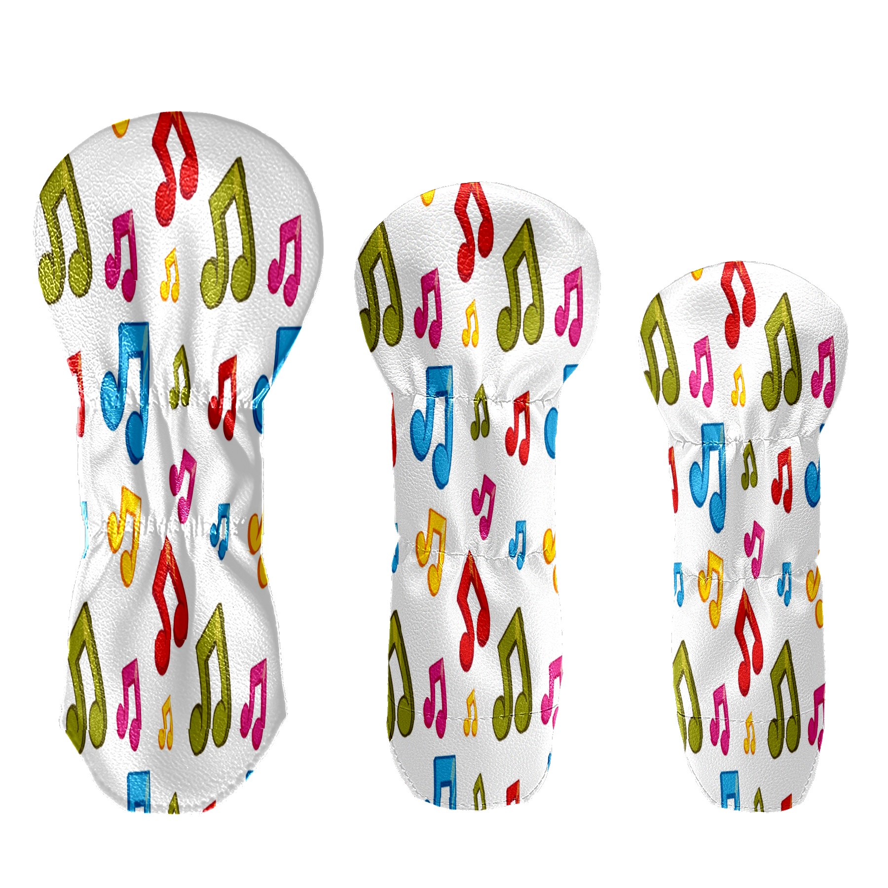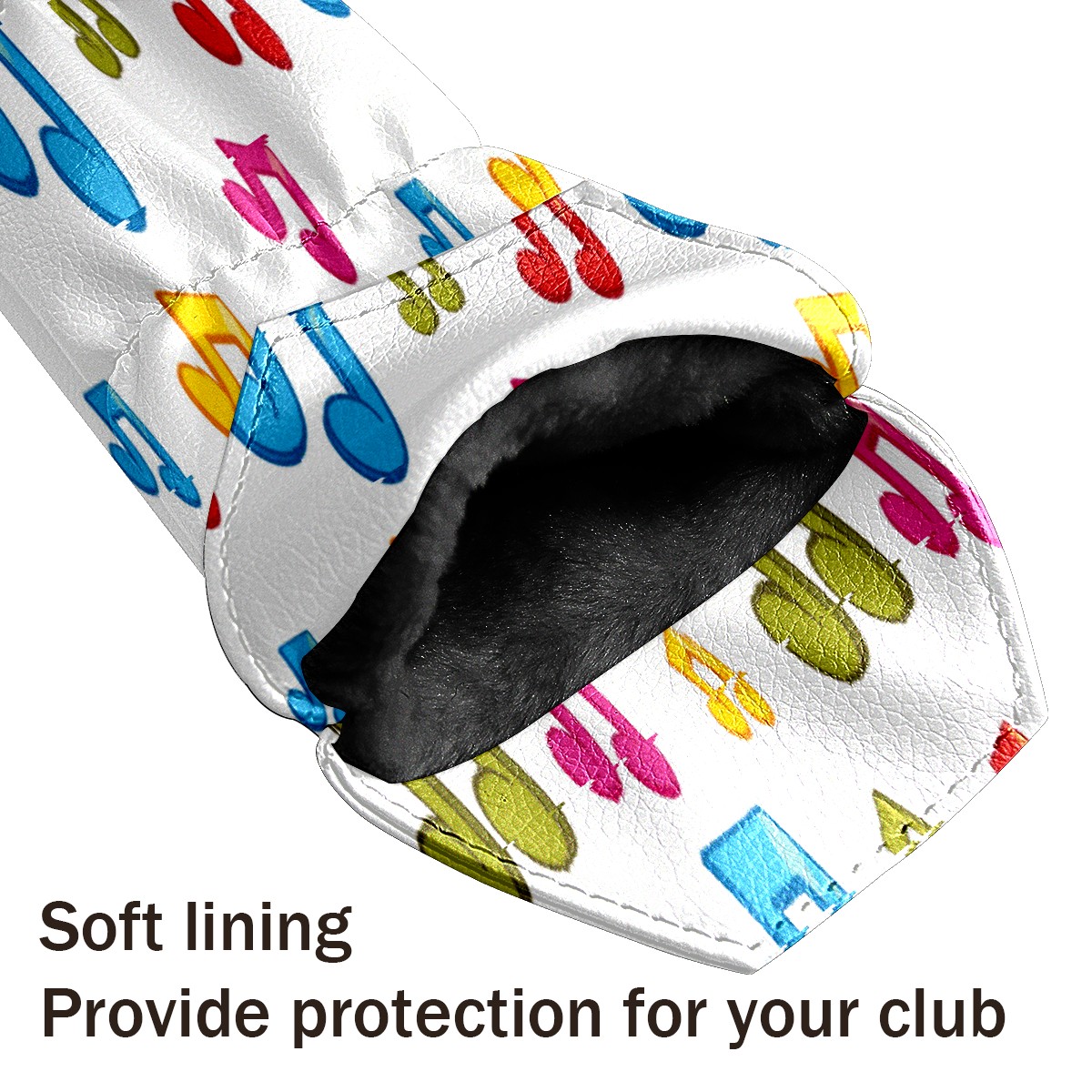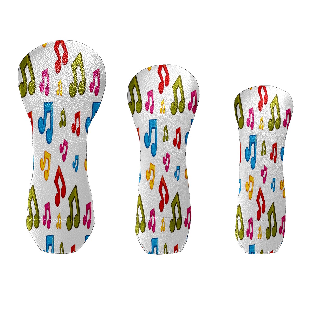 PU Leather Golf Putter Head Covers for Driver, Fairway Wood & Hybrid Clubs, Unisex, Fits All Brands Cute Music Notes Theme Colorful