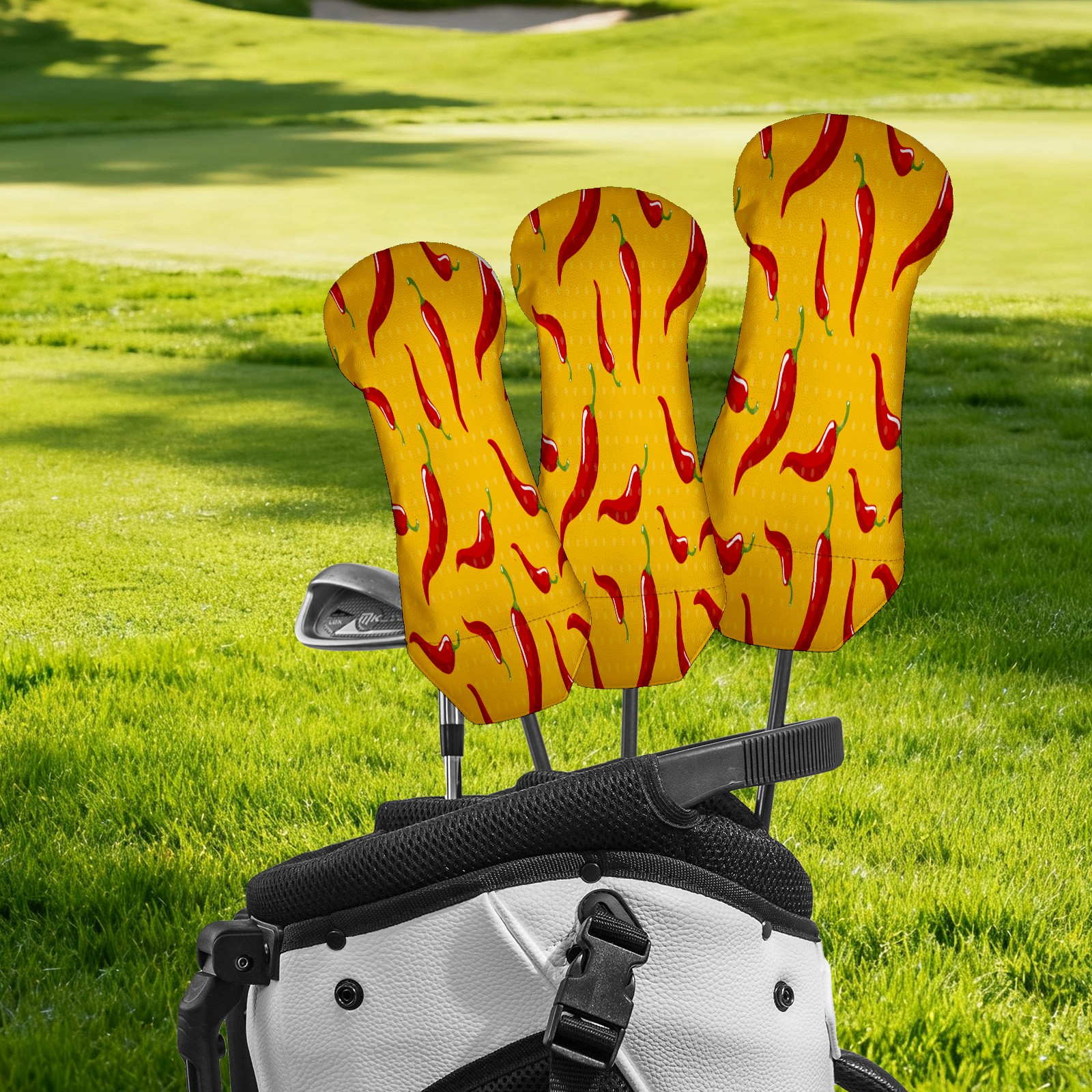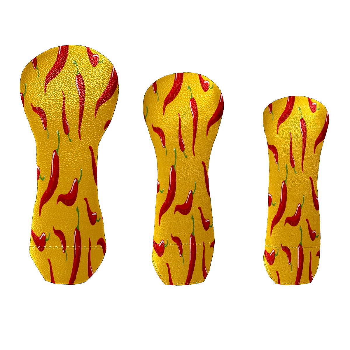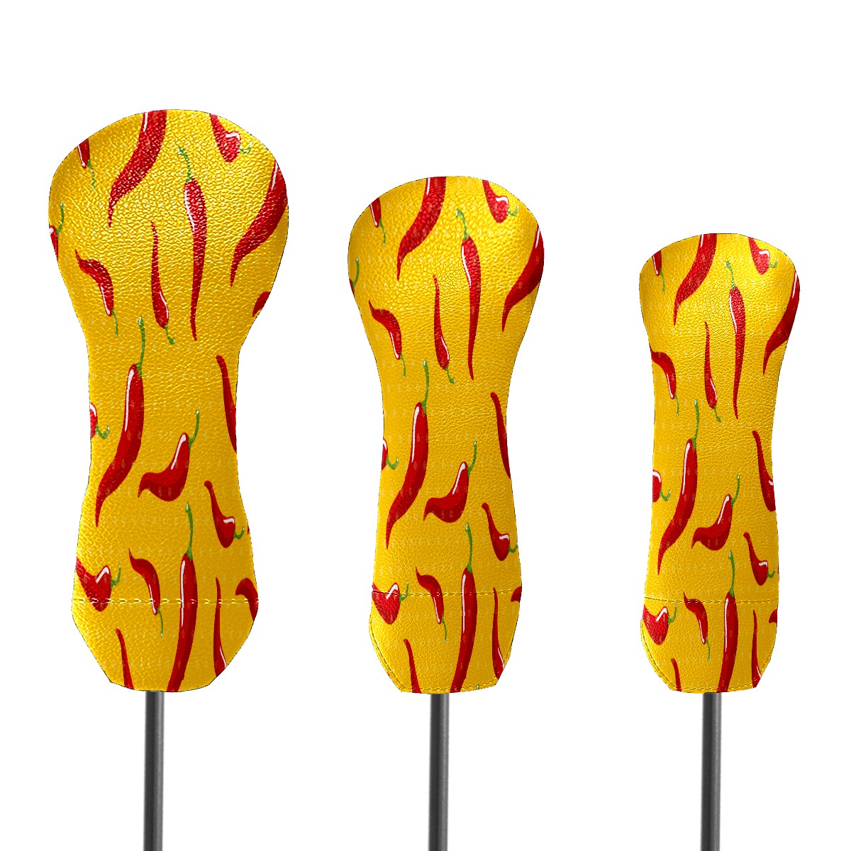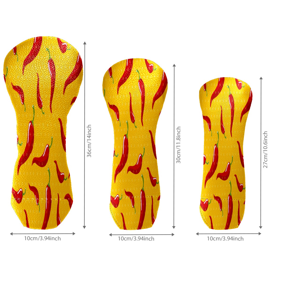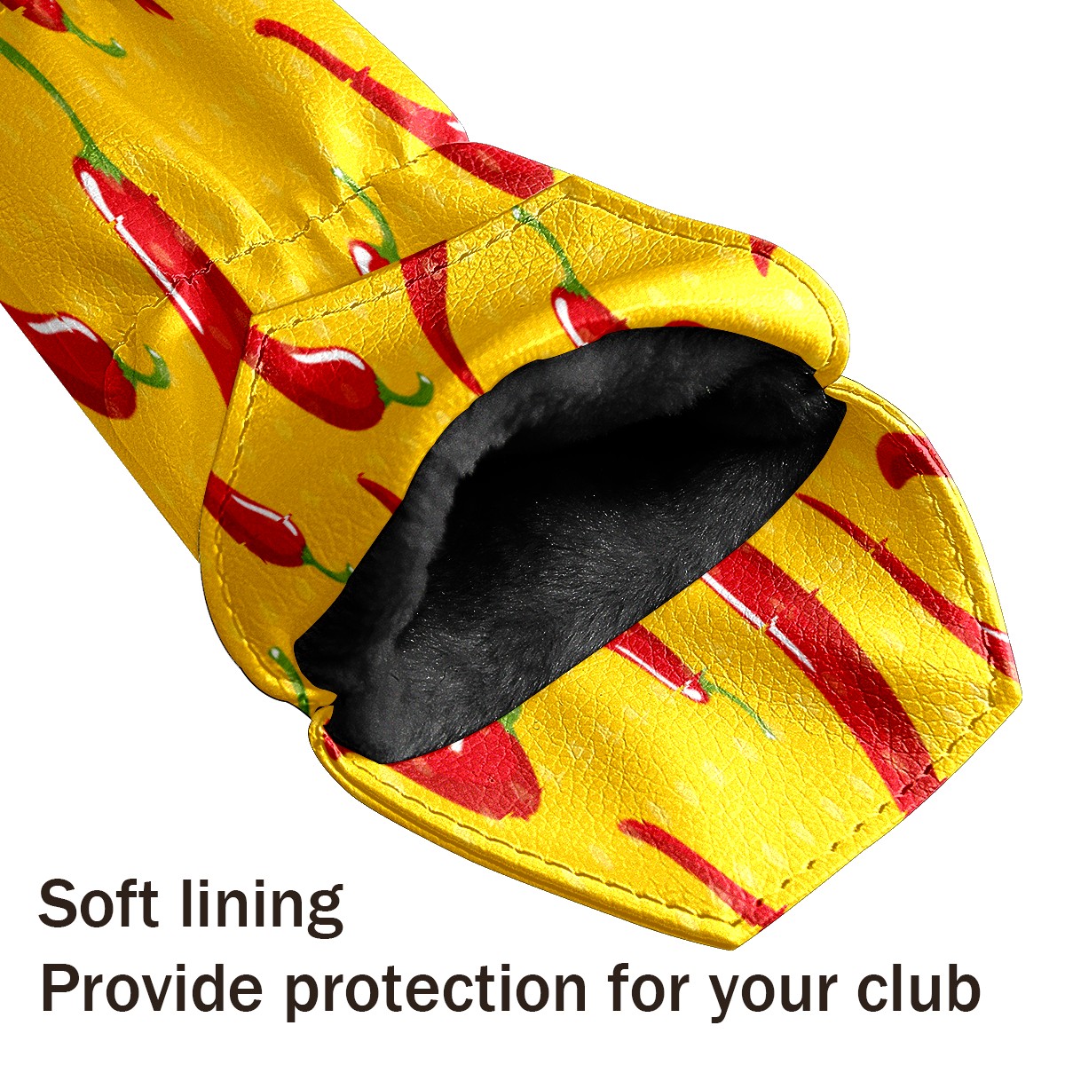 PU Leather Golf Putter Head Covers for Driver, Fairway Wood & Hybrid Clubs, Unisex, Fits All Brands Chili Pepper Mustard Yellow Polka Dot